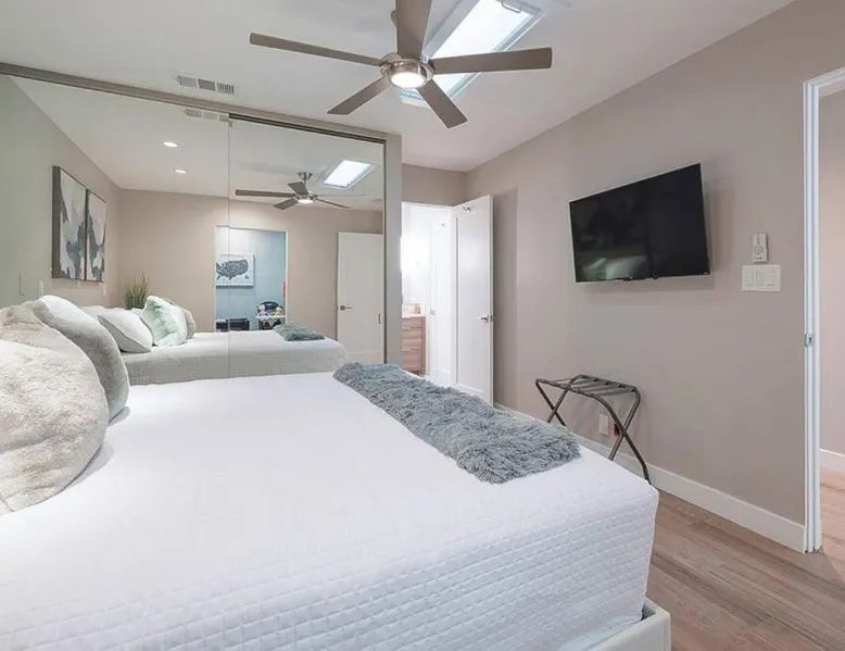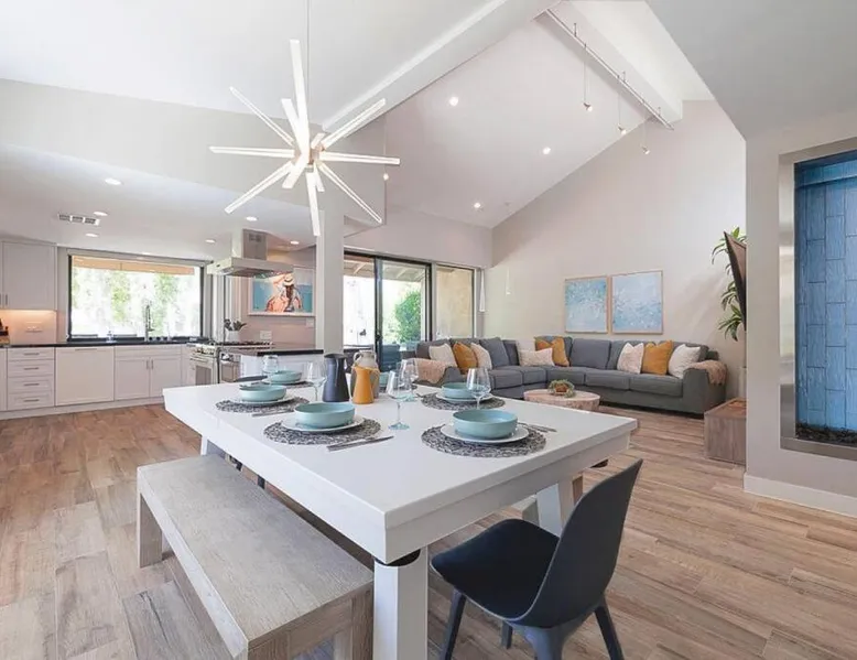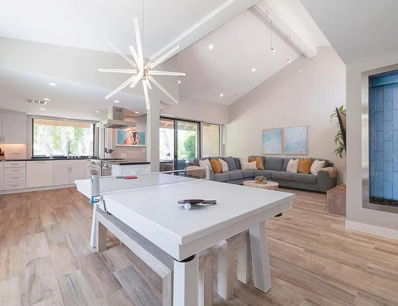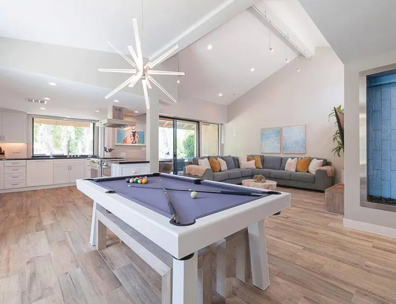 Spacious Holiday Home in Palm Desert: Blu Monterey offers a spacious holiday home in Palm Desert. The property features two bedrooms, two bathrooms, and a comfortable living room. Guests enjoy free WiFi, air-conditioning, and a balcony with stunning views. Modern Amenities: The holiday home includes a fully equipped kitchen with a refrigerator, oven, stovetop, microwave, dishwasher, and kitchenware. Additional amenities include a hot tub, laundry service, luggage storage, and a work desk. Outdoor Activities: Guests can enjoy a private pool, barbecue, and bicycles. The property is 12 mi from Palm Springs International Airport and close to attractions such as Saks Fifth Avenue Palm Desert (3.1 mi) and Palm Springs Aerial Tramway (17 mi). Guests will have a special experience as the holiday home offers a private pool. This spacious holiday home includes 1 living room, 2 separate bedrooms and 2 bathrooms with a hairdryer and free toiletries. Guests will find a stovetop, a refrigerator, a dishwasher and kitchenware in the well-equipped kitchen. The holiday home also features a barbecue. This holiday home has air conditioning, a washing machine, a TV and a balcony. The unit has 2 beds.