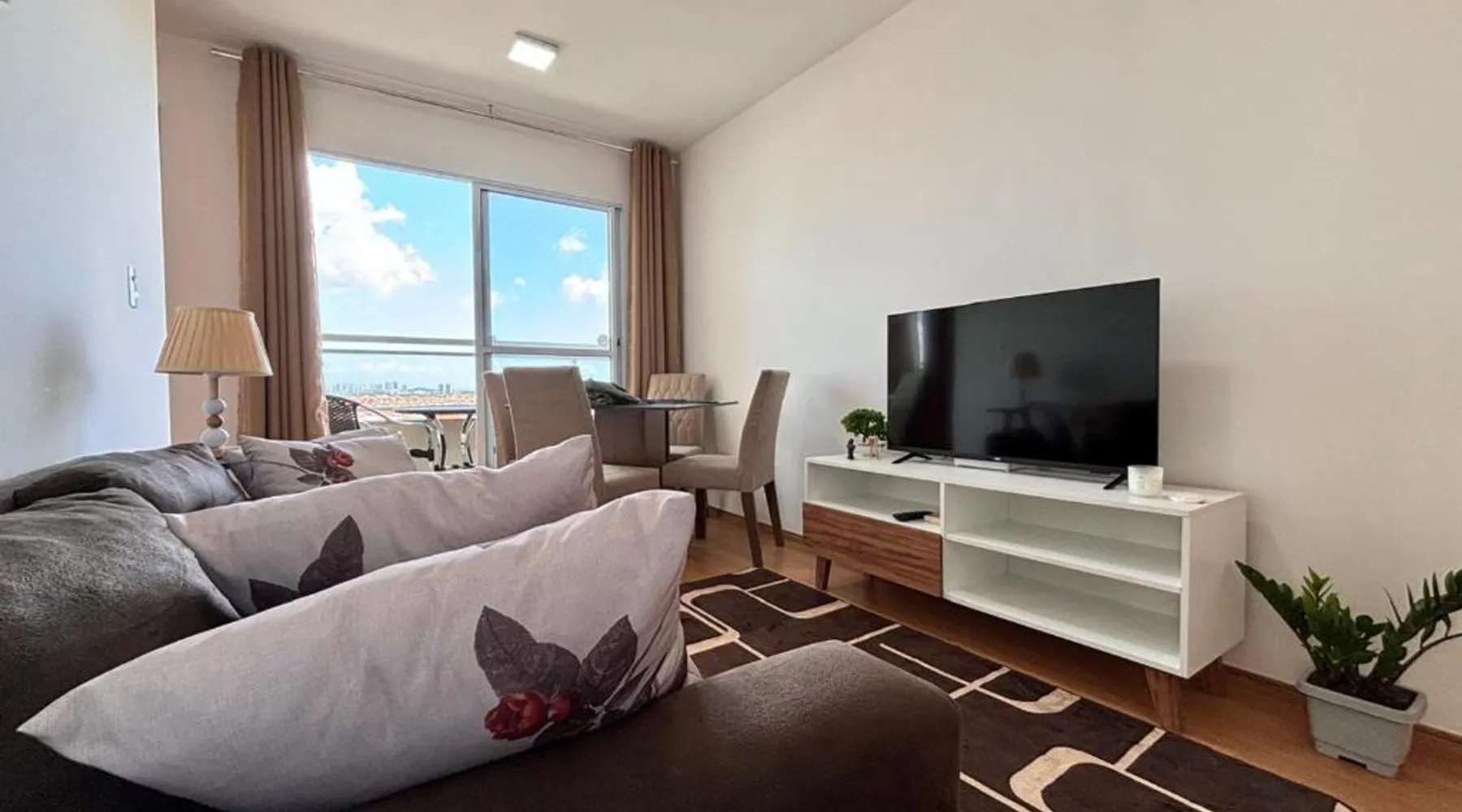 Comfortable Accommodations: Apartamento com varanda 9 min da praia na Cohama in São Luís offers a two-bedroom apartment with a balcony and city views. The living room includes a sofa and TV, while the kitchenette is equipped with a refrigerator, microwave, and stovetop. Leisure Facilities: Guests can enjoy a tennis court, year-round outdoor swimming pool, and free WiFi. Additional amenities include air-conditioning, washing machine, and free toiletries. Convenient Location: Located 7.5 mi from Marechal Cunha Machado International Airport, the apartment is near Saint Pantaleon Church and Art and History Museum of Maranhao, both 5.6 mi away. Other attractions include Jansen Lagoon and Arthur Azevedo Theater, each 6.2 mi distant. Highly Rated by Guests: The property is highly rated by guests for its excellent facilities and comfortable accommodations. This apartment features 1 living room, 2 separate bedrooms and 1 bathroom with a shower and free toiletries. The well-equipped kitchenette has a stovetop, a refrigerator, kitchenware and a microwave. The air-conditioned apartment features a flat-screen TV, a washing machine, a wardrobe, tumble dryer as well as city views. The unit has 3 beds.