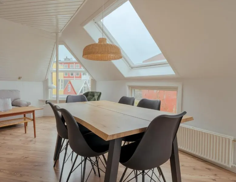 Spacious Accommodations: Harbor View / 2BR / City Center in Tórshavn offers a spacious apartment with two bedrooms and a living room. Guests enjoy free WiFi and complimentary parking. Modern Amenities: The apartment features a fully equipped kitchen with a refrigerator, oven, stovetop, dishwasher, and coffee machine. Additional amenities include a washing machine, balcony with sea and mountain views, and a walk-in shower. Convenient Location: Located 30 mi from Vágar Airport, the property is a 15-minute walk from Sandagerð Beach. Reception staff speak Danish and English. Highly rated for its convenient location. Featuring a private entrance, this spacious apartment also consists of 1 living room, 2 separate bedrooms and 1 bathroom with a walk-in shower. In the well-equipped kitchen, guests will find a stovetop, a refrigerator, a dishwasher and kitchenware. Boasting a balcony with sea views, this apartment also provides a washing machine and a flat-screen TV. The unit offers 3 beds.