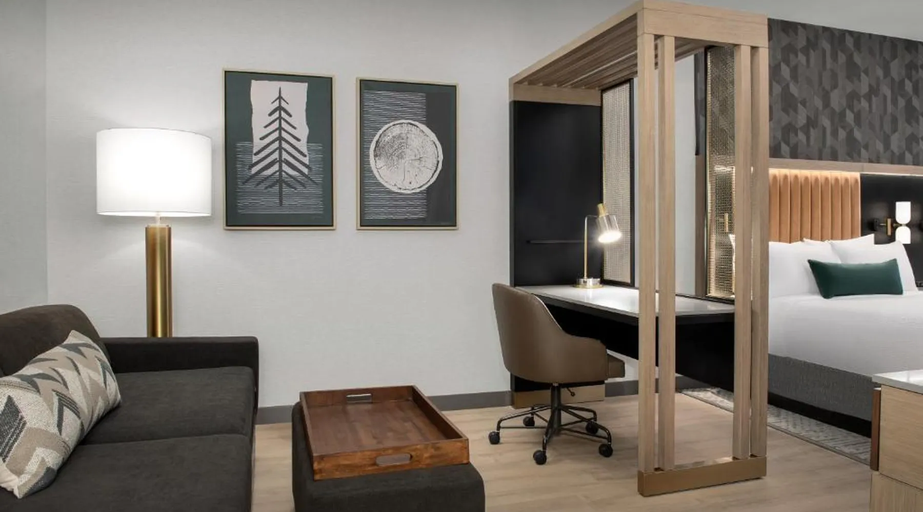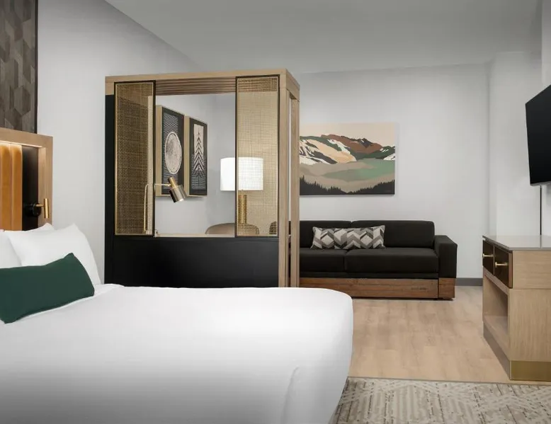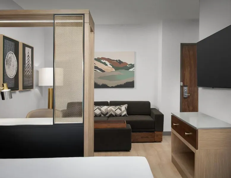 Comfortable Accommodations: SpringHill Suites by Marriott Sandpoint in Ponderay offers air-conditioned rooms with private bathrooms, sofa beds, and free WiFi. Each room includes a work desk, TV, and complimentary toiletries. Exceptional Facilities: Guests can enjoy a fitness center, indoor swimming pool, and hot tub. The property features a restaurant, bar, and outdoor fireplace. Additional amenities include a lounge, minimarket, and business area. Delicious Dining: The modern, family-friendly restaurant serves American cuisine for dinner and cocktails. Breakfast is provided daily with American options. Convenient Location: Located 80 mi from Spokane International Airport, the hotel offers skiing, hiking, and cycling activities. Paid on-site private parking is available. Highly rated for breakfast, staff, and room cleanliness. The air-conditioned suite features 1 bedroom and 1 bathroom with a bath and a shower. The suite has carpeted floors, a seating area with a flat-screen TV, a wardrobe, a sofa, as well as heating. The unit offers 2 beds.