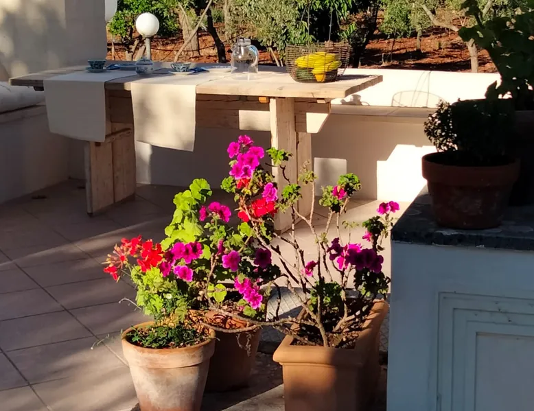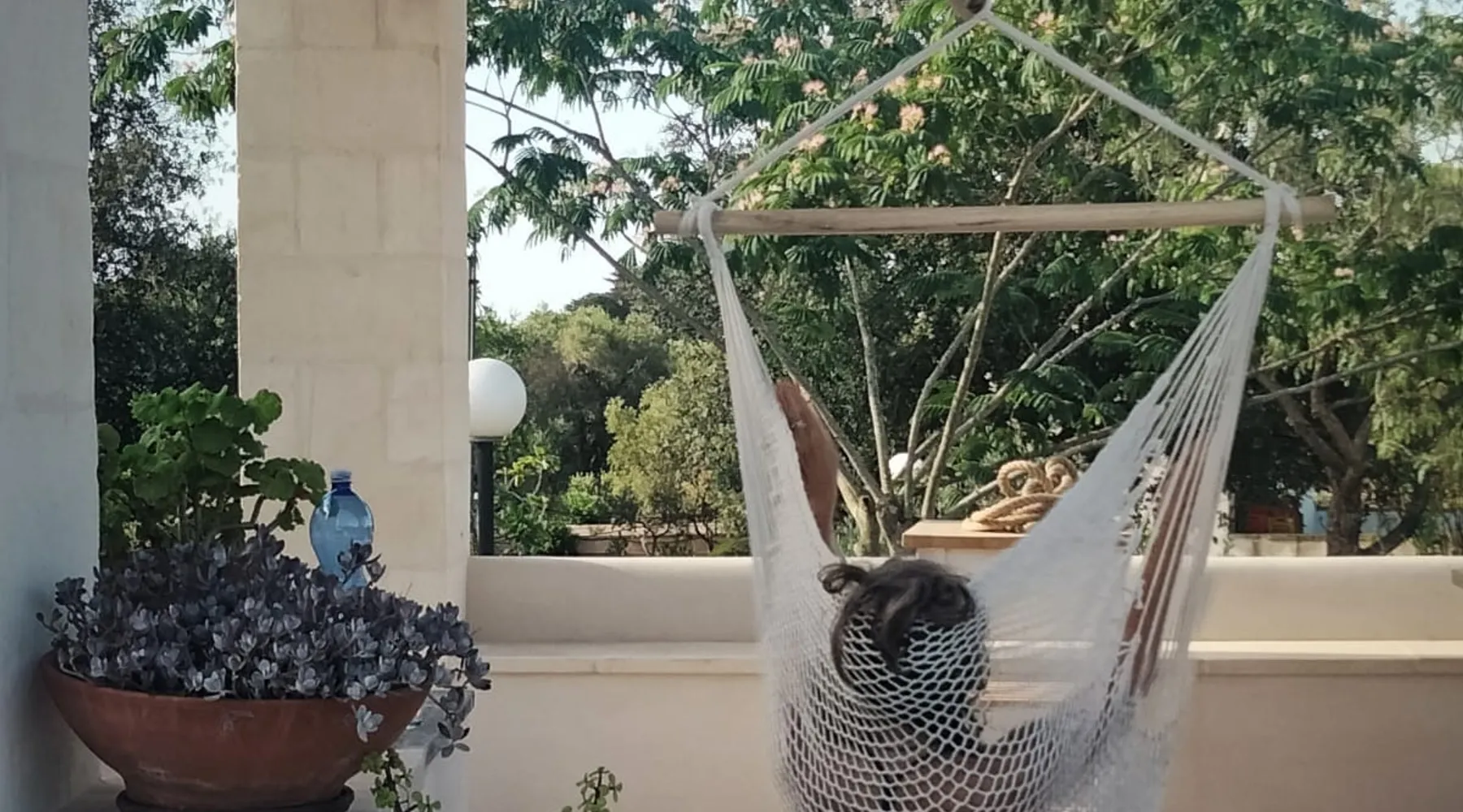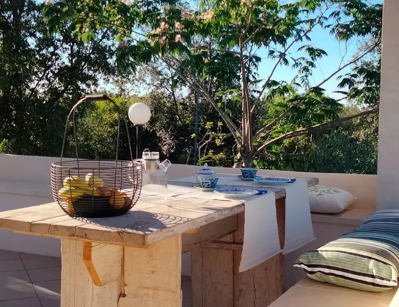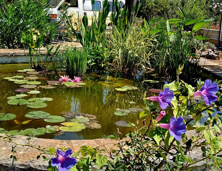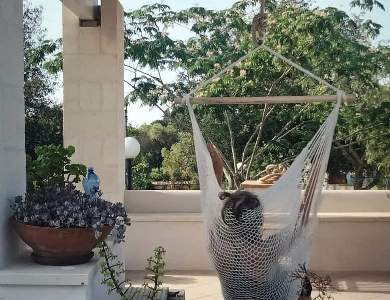 The name Villa Serena is reminiscent of a retirement home but... no nothing but, it's really a nursing home, there is a nice shady park, there are benches, crickets and cicadas as nurses. There is no shortage of entertainers, dragonflies and fish give daily performances at the water lily pond. The house is a little retro, comfortable and immersed in a sea of olive trees. Ostuni and the coast are just minutes away. The space Between Ostuni and the sea, in the middle of the olive countryside, is Villa Serena. Villa Serena is inside an olive grove grown in an organic way: one of the first organic farms to be born in Puglia. A comfortable fully furnished and equipped apartment accommodates 3 people. It consists of a kitchen, a living/dining room, a bedroom, and a bathroom. Panoramic terrace sea view. It lends itself to stays in all seasons: - hot/cold air conditioning and possible addition of convection heating natural - wood stove (jotul). Wood available - mosquito nets on all windows and front door - WiFi For the exclusive use of guests, an outdoor shower with hot water, and a gazebo where you can eat. A shady parking lot with benches and a bathtub with aquatic plants (and showcasing dragonflies) contributes to the back atmosphere of this small world. Guest access Guests have access to the entire property; in addition to the exclusive use of the outdoor shower, the gazebo and the panoramic terrace, they can enjoy the shade of the parquet and the water lily pool, stopping on the stone benches, or on deckchairs or on the hammock; they can walk in the olive grove with greedy stops among figs, cherries, perini, jujubes, pomegranates, red and white mulberries, plums, plums. Registration Details IT074012C200097158