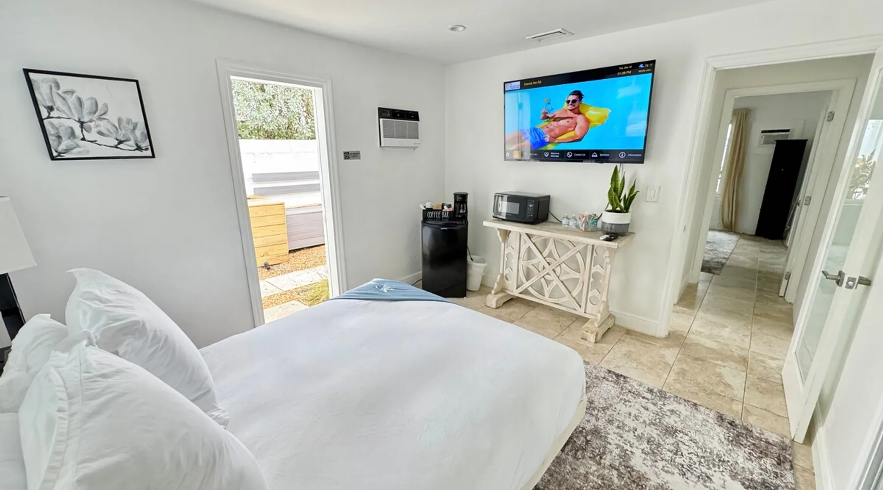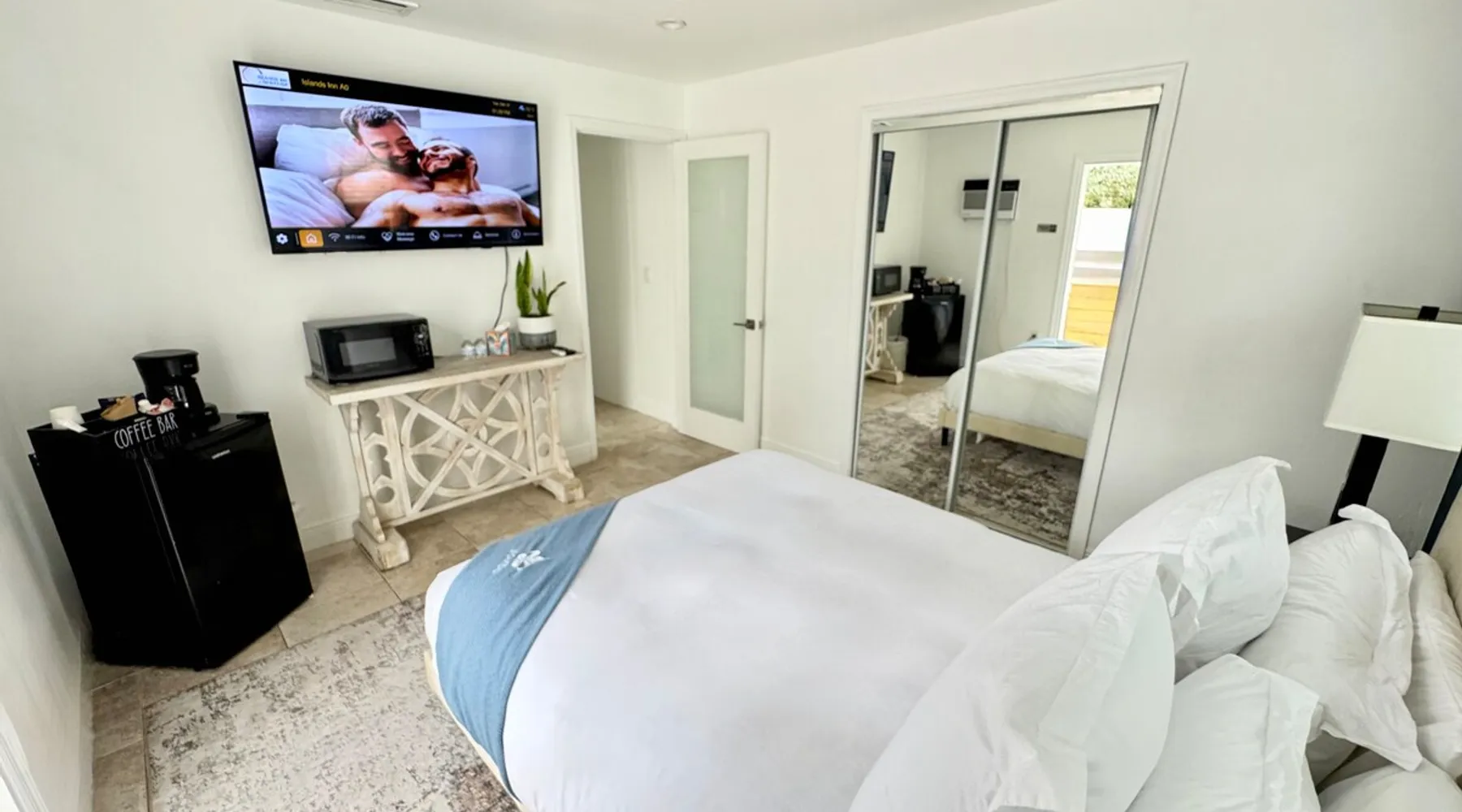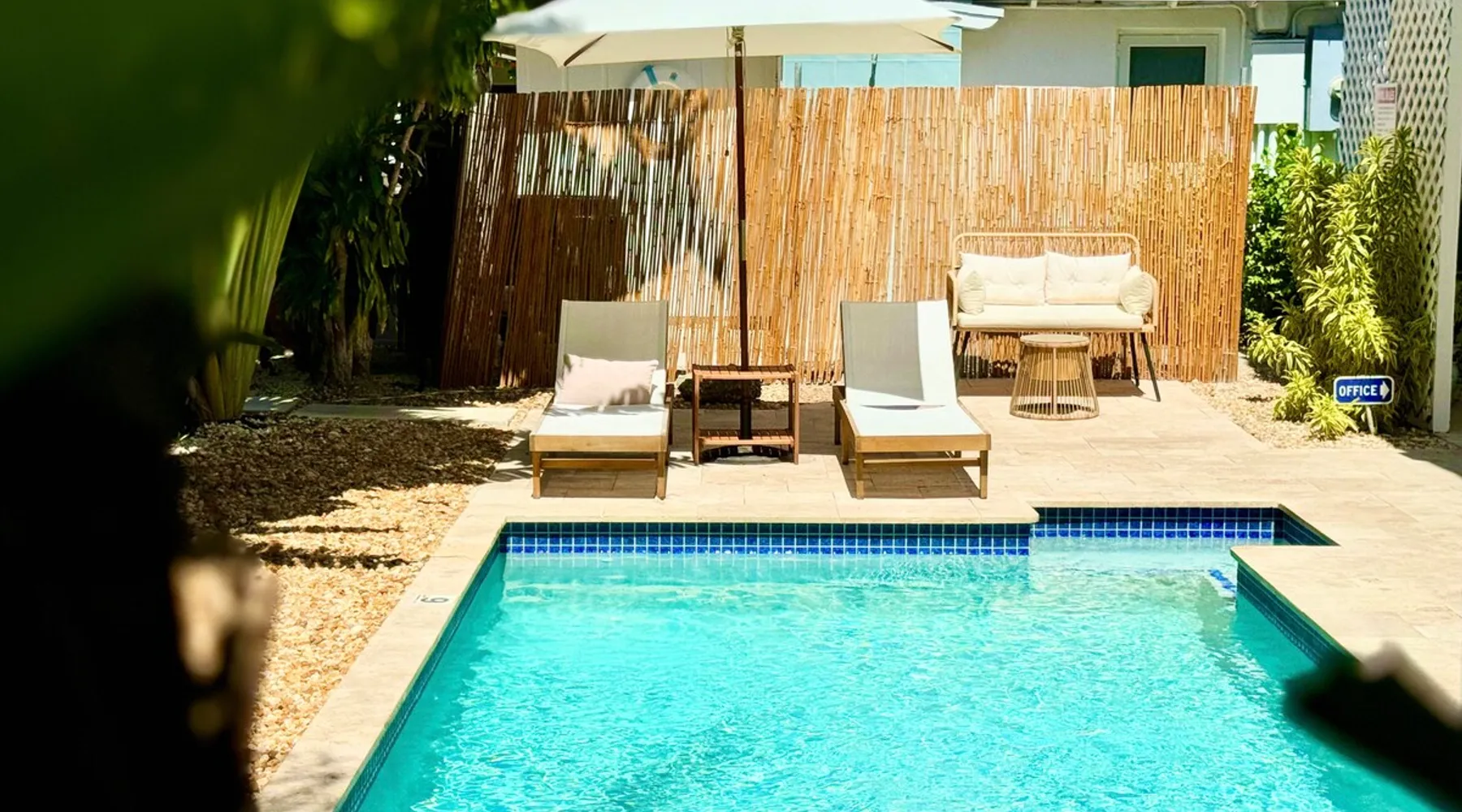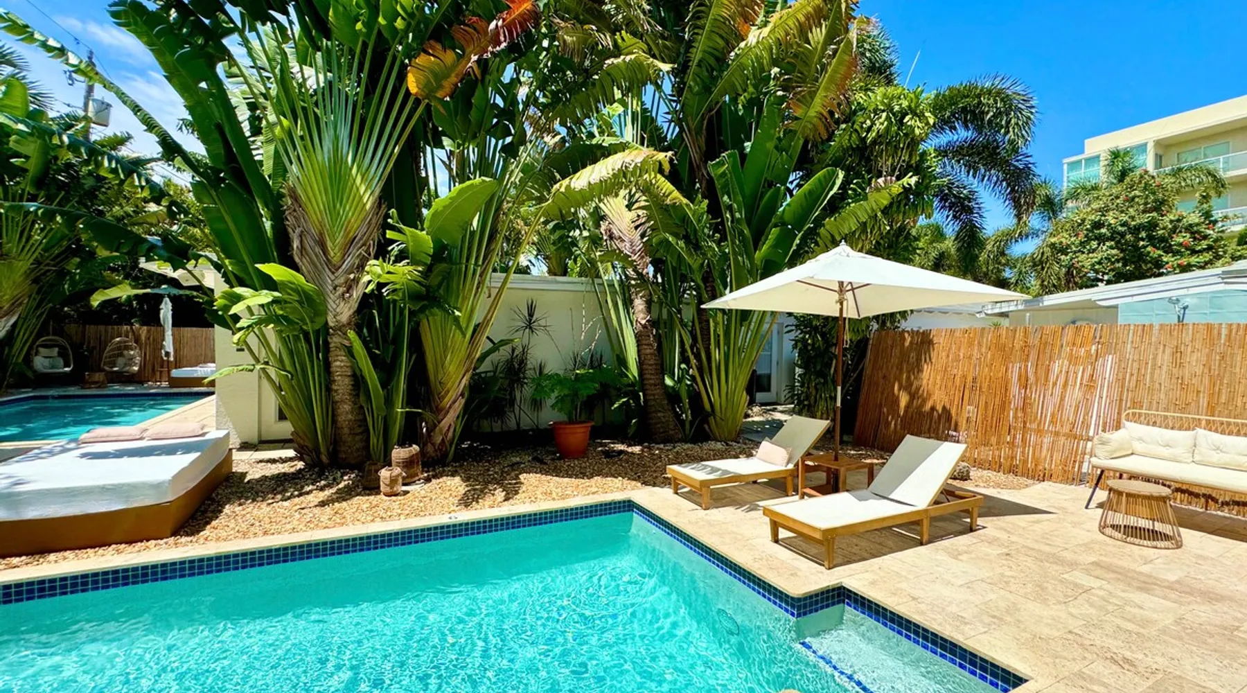 Welcome to our new 2 bedroom suite at Islands Inn on the Drive by Le Chateau! Imagine a charming guesthouse nestled in the vibrant heart of Wilton Manors, where the pulse of Fort Lauderdale's finest bars, restaurants, and shopping is just steps away. This delightful retreat offers the best of both worlds: the excitement of the city's nightlife and the tranquility of a lush, tropical paradise. The space Welcome to our new 2 bedroom suite at Islands Inn on the Drive by Le Chateau! This is the only two bedroom suite in the hotel. Islands Inn on the Drive is a clothing optional, adults-only, LGBTQ focused guesthouse catering to men located in the center of Wilton Manors. Managed by Le Chateau Properties. Welcome to Islands Inn on the Drive by Le Chateau! Imagine a charming guesthouse nestled in the vibrant heart of Wilton Manors, where the pulse of Fort Lauderdale's finest bars, restaurants, and shopping is just steps away. This delightful retreat offers the best of both worlds: the excitement of the city's nightlife and the tranquility of a lush, tropical paradise. As you step onto the property, you're greeted by two inviting warm pools, perfect for a refreshing dip any time of the day. The grounds are a verdant oasis, teeming with lush foliage and vibrant flowers, creating a serene backdrop for relaxation. Inside, each room is a sanctuary of comfort, adorned with Le Chateau Soft Cloud Percale luxury linens that promise restorative sleep after a day of adventure. The décor captures the essence of South Florida living, blending coastal charm with modern elegance. Picture yourself lounging by the pool with a refreshing drink in hand, the sun casting a warm glow as you unwind in this idyllic setting. As the day turns to night, venture out to explore the bustling streets of Wilton Manors. Savor delicious cuisine at nearby restaurants, sip on craft cocktails at lively bars, and discover unique treasures at local shops. Every moment at this guesthouse is an opportunity to create unforgettable memories. From lazy afternoons by the pool to nights filled with laughter and exploration, your time here will be filled with joy and discovery. By choosing this lovely guesthouse, you're not just booking a place to stay; you're immersing yourself in an experience that epitomizes the charm and vibrancy of South Florida living. A typical day here may look like this: Wake up, brew a delicious cup of coffee and take in the lovely view of the lush grounds. You can also visit one of the most quaint little breakfast spots in Fort Lauderdale called Egg & U Diner. It's owned by a British woman who welcomes all Fort Lauderdale locals every morning with a warm smile, and where the servers are as lovely as they are irreverent. They've been there for 60+ years, and it's a “must-visit” destination. Right in the same small shopping center, there's a consignment store called Decades. Here you can find your next treasured home decor item. They have anything from Restoration Hardware furniture all the way to a unique bauble discovered at a thrift store. All in great shape and ready to occupy that perfect spot in your home. If some beach time is in order, you're very close to Fort Lauderdale Beach, which is between Oakland Park Blvd (Northern point), and Las Olas Blvd (Southern point). The closer to Oakland Park you get the quieter and more peaceful it is. If you enjoy a little more activity, people and volleyball, head towards Las Olas! You're welcome to use the beach chairs and towels that are at the property. All along A1A, the road bordering the beach, there's plenty of parking and many bars and restaurants for you to visit. After you've relaxed, you may want to head over to Wilton Manors, the super fun LGBTQ district in Fort Lauderdale. You can grab a bite at Tulio's Tacos, (try the Smokey Pineapple Margarita, you'll thank me!), and any of their tacos are delicious. Here you'll see locals and tourists mingle as they walk from gastropub to gastropub all along the Wilton Drive strip. We suggest you also try another local hangout: Apt. 9F, which sits across the street from Tulio's Tacos, and serves great wines and tapas. Please tell Carol and Nancy (the owners) that Alex & Ray sent you, they'll treat you extra nice ;-). There's plenty of places to enjoy a great dinner such as Union Kitchen and Bar (also in Wilton Manors), try their Japanese Old Fashion, it'll change your life. Also, if you like pasta, mushrooms and you love truffle, try their Porcini Campanelle, heaven on a plate! If good Peruvian is your thing, Bravo is a great option. They began with gourmet sandwiches, which are a must, and then expanded their menu to full offering of delicious Peruvian dishes. Their Ceviche de Corvina is perhaps the best one, or the Lomo Saltado if you're in the mood for steak. Portions are good sized. When you're ready to turn in, enjoy the large rain shower head, and amazing water pressure of our showers. The beds are meant to provide restorative sleep. We can't wait to host you! Guest access Guests are welcome to use all areas of the grounds.