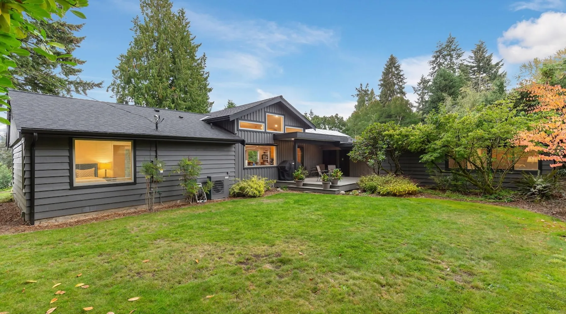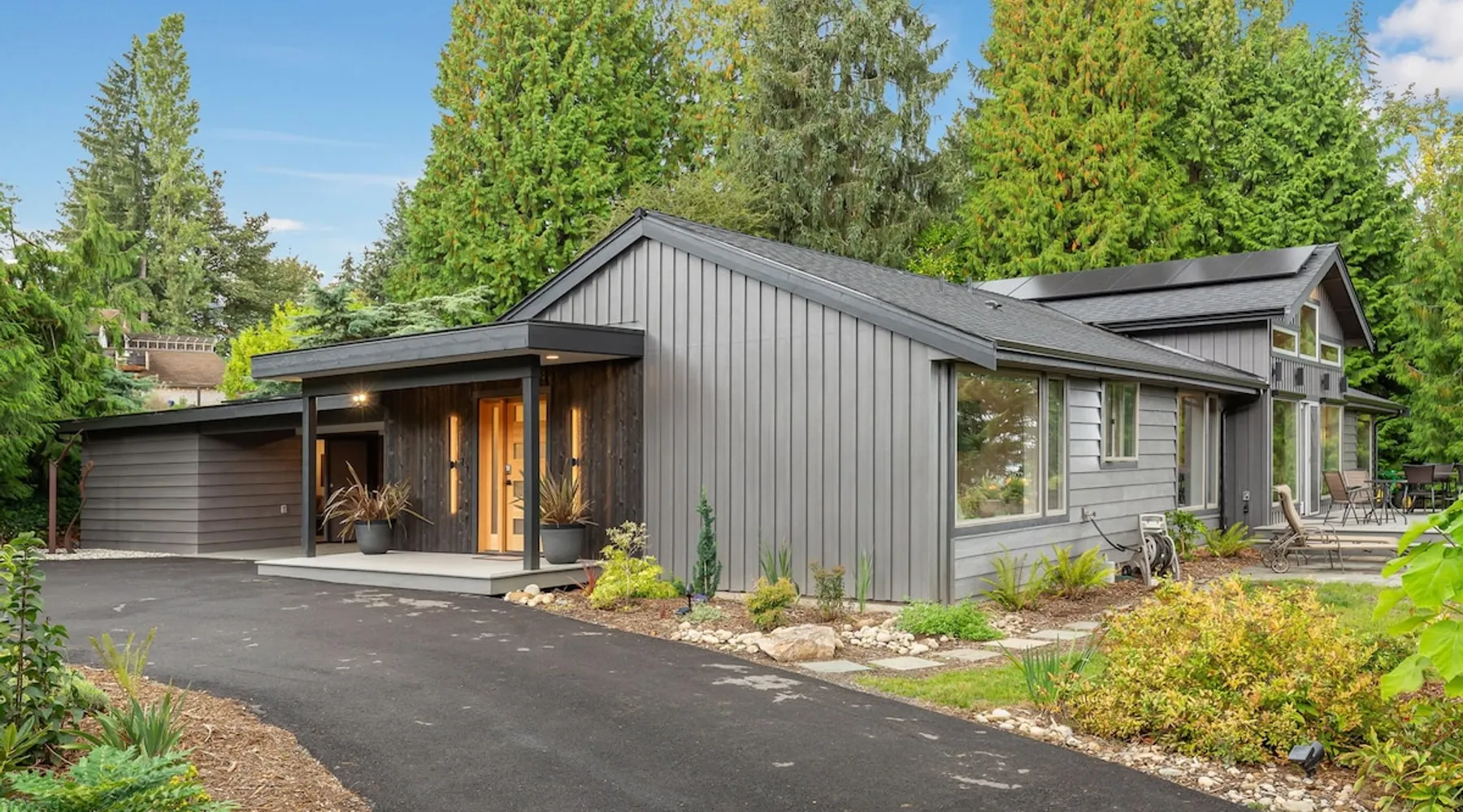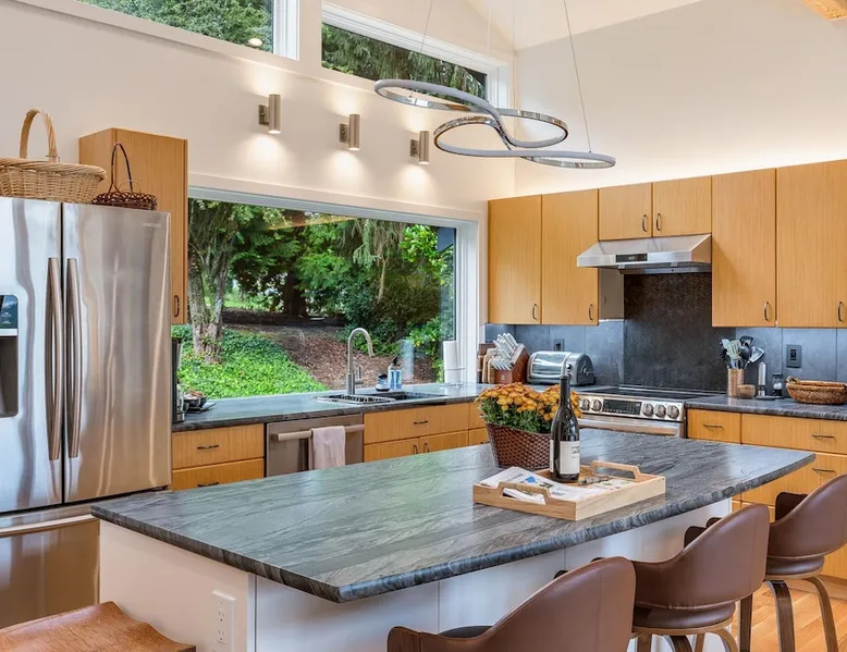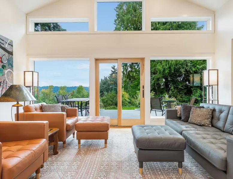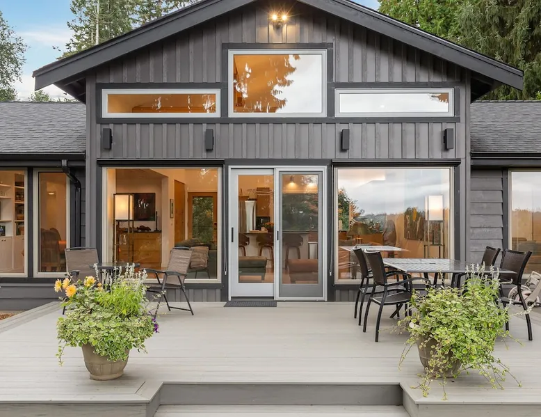 Remodeled Rambler in Woodinville Wine Country on private acre with Cascade views. Open living, island kitchen, garden. Near 100+ wineries—luxury meets nature. The space Experience the charm of Woodinville Wine Country in this beautifully remodeled Rambler, located just above the heart of the Woodinville Tourist District, on a private acre with stunning Cascade views. The home features an open living area and a spacious island kitchen, perfect for gatherings. A separate DADU offers flexibility for guests or multigenerational living. With over 100 wineries nearby, including the renowned Chateau Ste. Michelle Winery, and a backyard garden for fresh produce, this retreat offers the perfect blend of luxury, relaxation, and nature. The main house has 3 bedrooms, 2.5 bathrooms, and an DADU with 1 bed and a sofa bed (no bathroom). Both spaces together can sleep up to 8 guests and are about 2400 sqft. **Floor Plan** • Main House: One level, living room with smart TV, dining room, kitchen, master bedroom w/ queen bed & ensuite bathroom, 2 bedrooms (one with queen bed and another with full bed), family room w/ smart TV & L-shaped sofa, 1 full hallway bathroom and a half bath. Heating & cooling. • DADU: Spacious 1 single bed and a full-size sofa bed. Heat only. **Home Highlights** • Large backyard facing east with gorgeous views of nature and Cascade views. • Each room in the main house has air conditioning and heating. • Kitchen is fully stocked with high-quality appliances, a complete set of cookware, and abundant dinnerware perfect for entertaining. • Living room and family room with smart TVs, perfect for your relaxation. • Onsite washer and dryer for your laundry needs. • Plenty of parking in the carport, driveway & street. • The house provides an EV charger for your use (please bring your own plugs). • Eco-friendly home with solar energy—enjoy continuous power even during outages. • Handicap accessible with a 5' ramp. • Wheelchair roll-in shower in the primary bathroom. **Additional Info** We are excited to offer our guests a bottle of our exclusive private label wine, crafted by Northwest Cellars. This exceptional winery specializes in creating private label house wines for restaurants, hotels, and individuals, accounting for 70% of their business. Their clients often create custom labels for special occasions like weddings, anniversaries, and birthdays. We'd love to help you create a memorable experience, so please do reach out if this interests you. Custom wine labels can be designed at no additional charge if you provide the artwork or photo. Guest access The whole home is included in this rental. Guest access will be granted via a smart lock. Other things to note **About the Reservation** • We uphold our cancellation policy as we only have each night available to one group of guests. We highly recommend purchasing travel insurance to protect your booking. One date change if your check-in date is more than 2 weeks away. No date changes otherwise. • For stays longer than 29 days, we require a double cleaning fee, additional tenant screening, lease signing, and a security deposit to fully confirm your reservation. **About Fees & Pricing** • The regular nightly rate covers 6 guests. Additional guest fees are $25 per person per night, up to a maximum of 8 guests. Please indicate an accurate number of guests. • We utilize dynamic pricing. This means that booking rates may increase or decrease every day. We do not honor yesterday’s pricing. **House Rules** • This is not a pet friendly home. $500 fine for unauthorized pets. • Strictly NO parties and events, quiet hours between 10pm-8am, no smoking or vaping of any kind anywhere on the property including outdoor areas, no digital piracy, no shoes in the home. $500 fine per violation.
