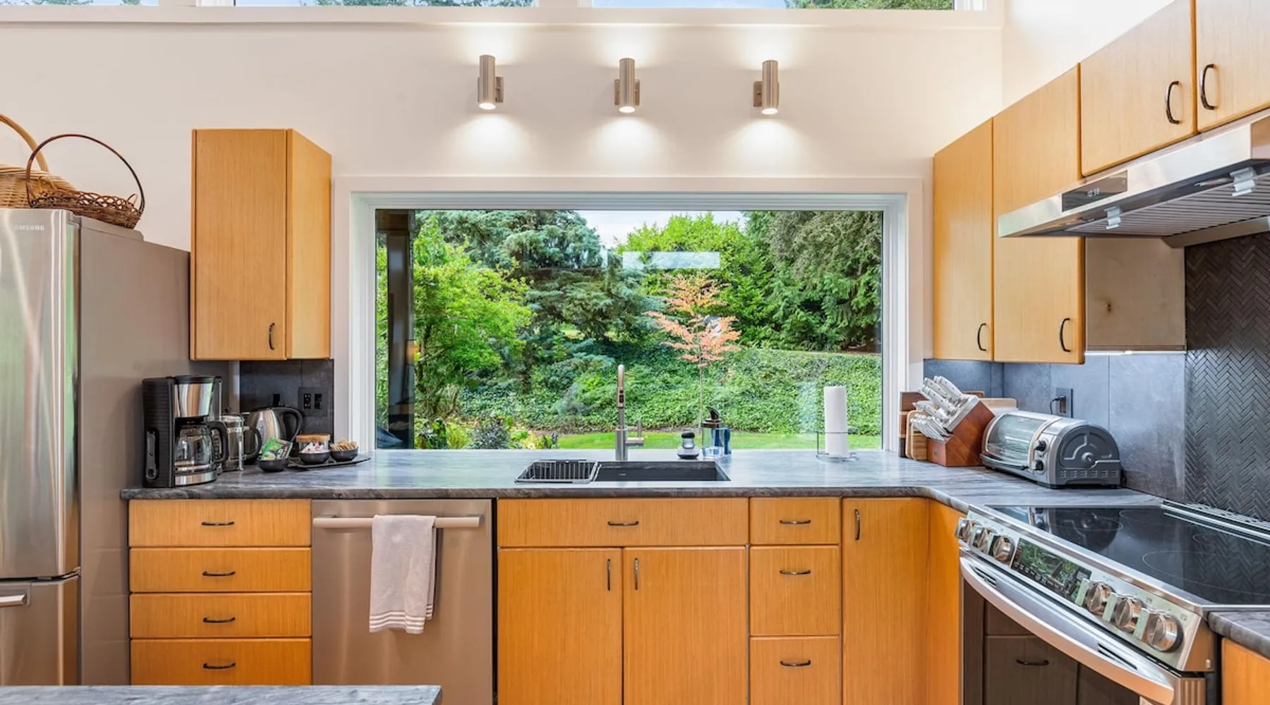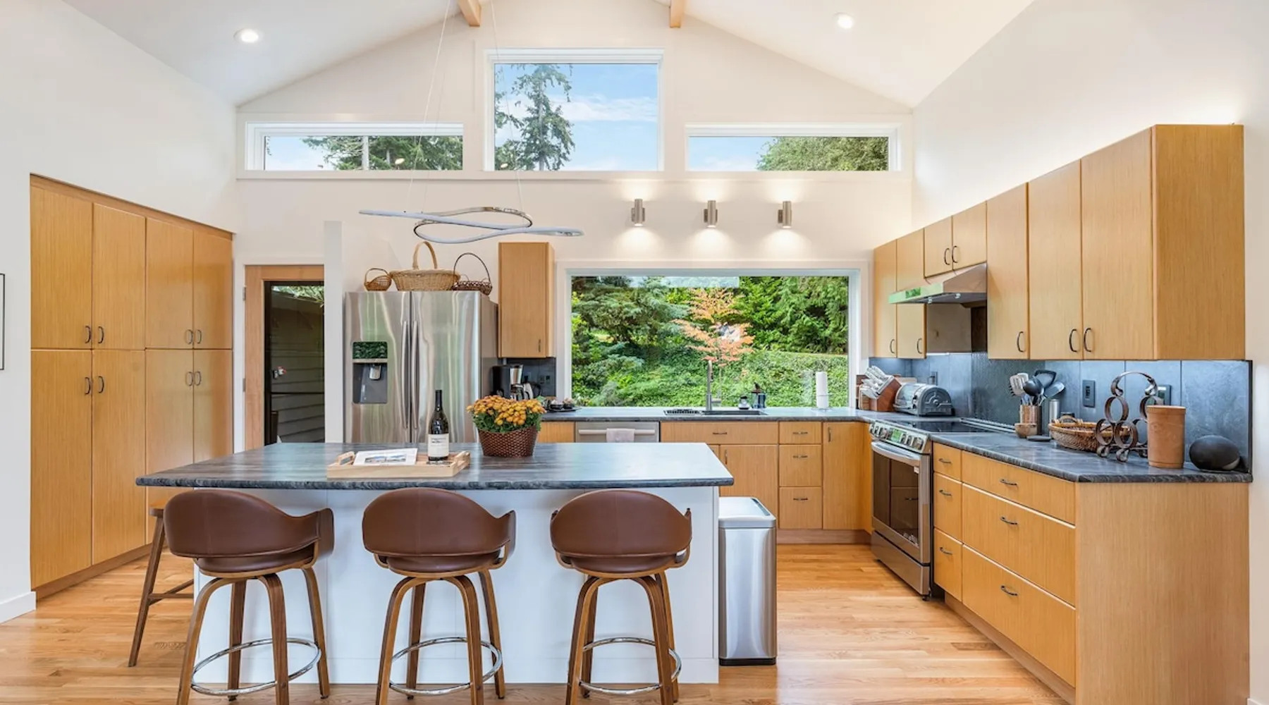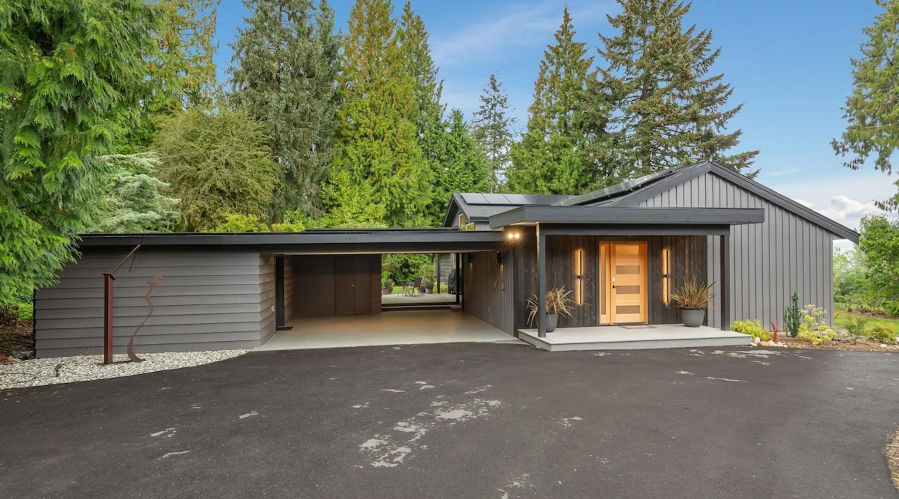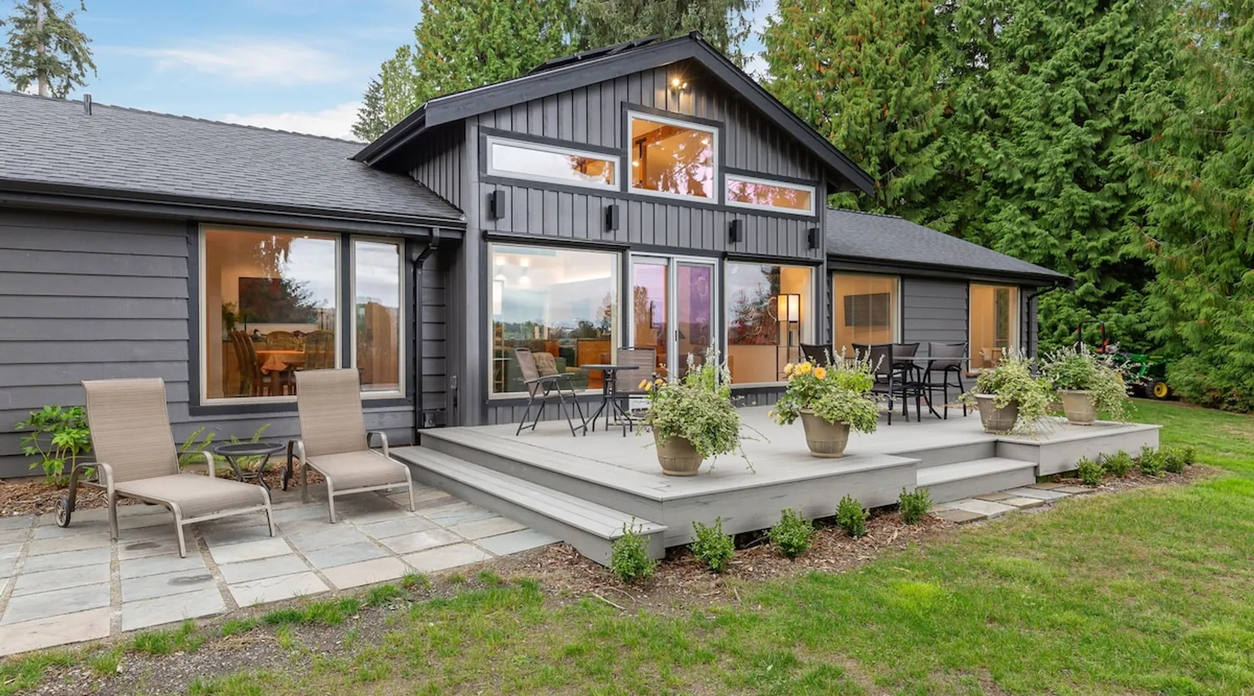 Remodeled Rambler in Woodinville Wine Country on private acre with Cascade views. Open living, island kitchen, garden. Near 100+ wineries—luxury meets nature. The space Experience the charm of Woodinville Wine Country in this beautifully remodeled Rambler, located just above the heart of the Woodinville Tourist District, on a private acre with stunning Cascade views. The home features an open living area and a spacious island kitchen, perfect for gatherings. A separate DADU offers flexibility for guests or multigenerational living. With over 100 wineries nearby, including the renowned Chateau Ste. Michelle Winery, and a backyard garden for fresh produce, this retreat offers the perfect blend of luxury, relaxation, and nature. The main house has 3 bedrooms, 2.5 bathrooms, and an DADU with 1 bed and a sofa bed (no bathroom). Both spaces together can sleep up to 8 guests and are about 2400 sqft. **Floor Plan** • Main House: One level, living room with smart TV, dining room, kitchen, master bedroom w/ queen bed & ensuite bathroom, 2 bedrooms (one with queen bed and another with full bed), family room w/ smart TV & L-shaped sofa, 1 full hallway bathroom and a half bath. Heating & cooling. • DADU: Spacious 1 single bed and a full-size sofa bed. Heat only. **Home Highlights** • Large backyard facing east with gorgeous views of nature and Cascade views. • Each room in the main house has air conditioning and heating. • Kitchen is fully stocked with high-quality appliances, a complete set of cookware, and abundant dinnerware perfect for entertaining. • Living room and family room with smart TVs, perfect for your relaxation. • Onsite washer and dryer for your laundry needs. • Plenty of parking in the carport, driveway & street. • The house provides an EV charger for your use (please bring your own plugs). • Eco-friendly home with solar energy—enjoy continuous power even during outages. • Handicap accessible with a 5' ramp. • Wheelchair roll-in shower in the primary bathroom. **Additional Info** We are excited to offer our guests a bottle of our exclusive private label wine, crafted by Northwest Cellars. This exceptional winery specializes in creating private label house wines for restaurants, hotels, and individuals, accounting for 70% of their business. Their clients often create custom labels for special occasions like weddings, anniversaries, and birthdays. We'd love to help you create a memorable experience, so please do reach out if this interests you. Custom wine labels can be designed at no additional charge if you provide the artwork or photo. Guest access The whole home is included in this rental. Guest access will be granted via a smart lock. Other things to note **About the Reservation** • We uphold our cancellation policy as we only have each night available to one group of guests. We highly recommend purchasing travel insurance to protect your booking. One date change if your check-in date is more than 2 weeks away. No date changes otherwise. • For stays longer than 29 days, we require a double cleaning fee, additional tenant screening, lease signing, and a security deposit to fully confirm your reservation. **About Fees & Pricing** • The regular nightly rate covers 6 guests. Additional guest fees are $25 per person per night, up to a maximum of 8 guests. Please indicate an accurate number of guests. • We utilize dynamic pricing. This means that booking rates may increase or decrease every day. We do not honor yesterday’s pricing. **House Rules** • This is not a pet friendly home. $500 fine for unauthorized pets. • Strictly NO parties and events, quiet hours between 10pm-8am, no smoking or vaping of any kind anywhere on the property including outdoor areas, no digital piracy, no shoes in the home. $500 fine per violation.