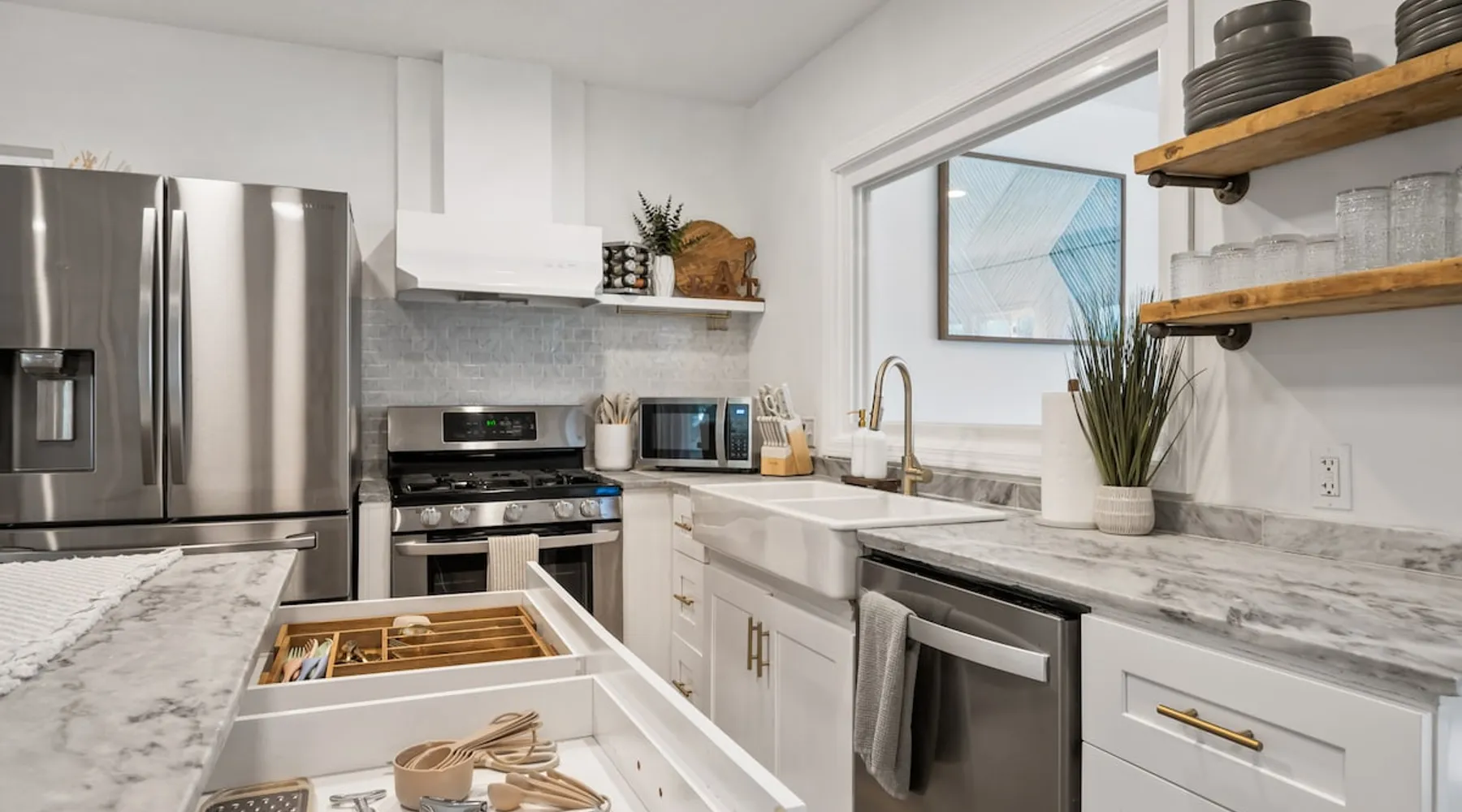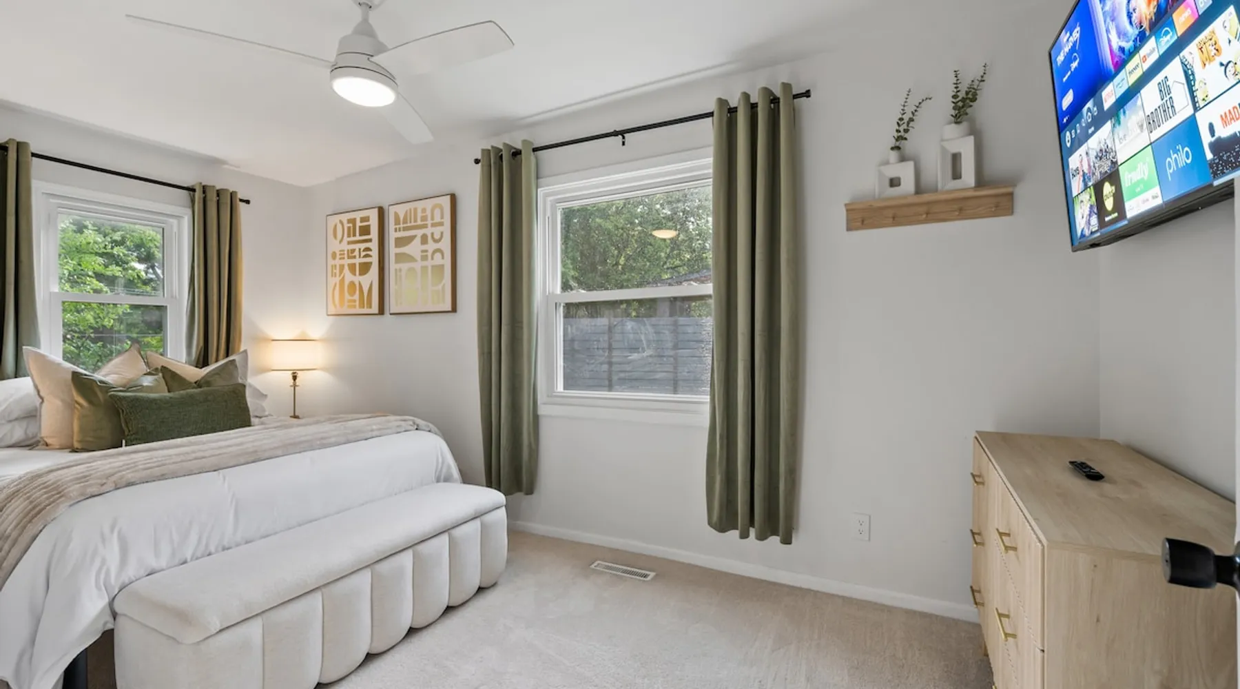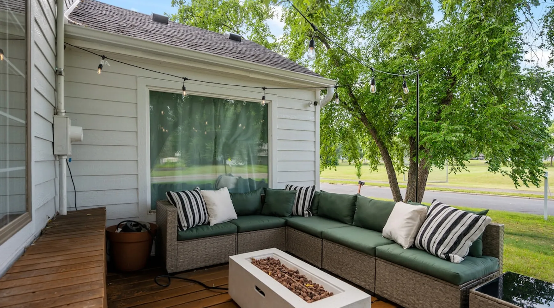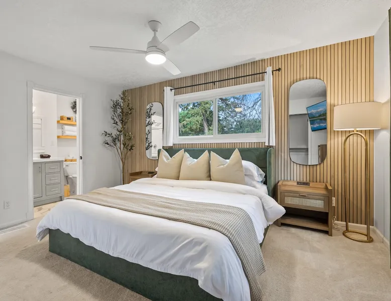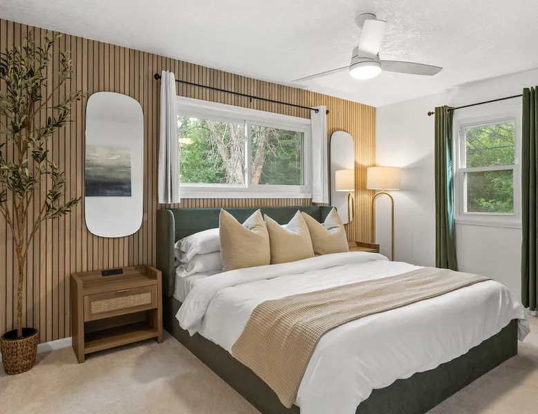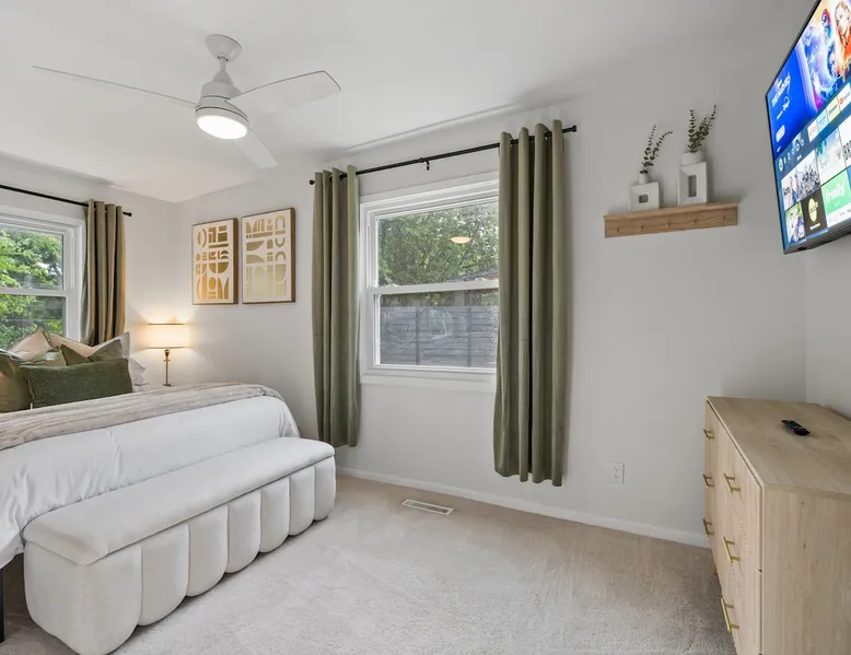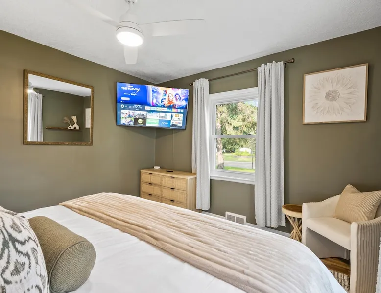 This charming house just outside of Minneapolis offers a soothing retreat for guests. With 3 bedrooms including 2 king beds & 1 queen bed, there's plenty of space for everyone to unwind. This recently remodeled property includes amenities like heating, AC, fast WiFi (1000 MPBS), & a washer/drier for added convenience. Indulge in the luxury of 2 bathrooms featuring shower, bathtub, and hair dryers. Right down the road from wedding venue Hutton House, lots of space & natural lighting to get ready! The space -HIGHLIGHTS- ★ Super fast WiFi (1000 MPBS) and single level living ★ 2 King and 1 Queen Beds with 55" Smart TVs in each bedroom ★ Open concept main living and dining space with 2 x 70" Smart TV ★ Fully equipped contemporary, gourmet kitchen; modern appliances ★ String-lit private patio, with outdoor sectional and fire pit ★ Playground/Park right across street from home and lake access ★ Baby equipment: Pack-n-play, high chair, kids dinnerware, etc. ★ Closest lodging available for wedding venue Hutton House! ★ Washer and dryer with supplies -LOCATION- Located just moments from the Highway 55 & 169 and just a short drive from downtown Minneapolis, our home is nestled in a neighborhood and offers the perfect balance of seclusion and convenience. 1 mins ➔ The Hutton House (.4 miles) 3 mins ➔ East Medicine Lake Park & Beach 4 mins ➔ West Medicine Lake Park & Beach 8 mins ➔ West End Shopping and Dining Center 8 mins ➔ Ridgedale Center Shopping Mall 12 mins ➔ Downtown Minneapolis 12 mins ➔ US Bank Stadium, Target Field and Center 22 mins ➔ Minneapolis Airport (MSP) 25 mins ➔ Mall of America 25 mins ➔ Xcel Energy Center -BEDS & BATHS- 3 bedrooms each with 55" TVs, full closets, wardrobes and nightstands with charging stations. 2 of the 3 bedrooms have King beds and 1 bedroom has a Queen bed. Pack-n-play is available for our little guests. 2 full bathrooms designed and remodeled. The hallway bathroom has a large vanity, full size tub and shower. The 2nd bathroom is an en-suite for the master bedroom. -KITCHEN & DINING- The recent remodeled kitchen has everything your inner chef desires, including stainless steel appliances and cabinets stocked with dishes, cookware, glassware, children's dinnerware, highchair, blender, coffee and tea station, tea kettle, rice cooker, toaster and seasonings. The open concept allows for large family gatherings with plenty of seating around the island and dining table. -LIVING SPACE- 2 living spaces in this home with plenty of extra room. The living room has a 70" Smart TV and a large sectional for with plenty of room to fit everyone for the football game. Youtube TV and Netflix available to stream all your favorite shows and sports games. The dining area has large dining table (seats 8) and a large TV over the fireplace (out of service). -OUTDOOR SPACE- Step into our wonderful outdoor with endless greenery and lots of space. Located on a corner lot and right across the street from a park with a playground and large field, there is so much room for endless fun and activities! Enjoy a private deck featuring a fire pit under string lit lights to relax in the Minnesota weather. Please contact us if you have any questions about the home… we look forward to welcoming you soon! Guest access Guest access to the entire house. Upon arrival you will be given a code that works for the garage keypad and the front door. You will have access to the single car garage and driveway for parking. Please do not park on the street overnight. Also please do park in the grass. There is a basement but it is unfinished. Other things to note • MIDTERM RENTALS: Travel Nurses, Corporate Housing, home renovation temporary housing and Insurance Placement Welcome** • HUTTON HOUSE: If you are looking to book with us for a wedding and don't see your dates available yet, please inquire on random dates and we can reserve your dates as far in advanced as you need! We are the closet Hutton House lodging available! A 1 minute car ride or a 8 minute walk (.4 miles)! • SECURITY CAMERAS & DEVICES: We have a front door camera, camera on the back and the side of the house for security reasons. There is also a noise monitor and glass break sensor inside above the TV in the living/dining room. The home has smoke detectors and CO2 detectors for your safety. • WILDLIFE: You may encounter the occasional deer, turkey or other wildlife roaming through the area. As this is Minnesota, with its many lakes and greenery, guests should be prepared for mosquitoes and other insects, especially in the evenings. We do our best to keep the property well-maintained, but cannot guarantee total protection from nature's inhabitants.