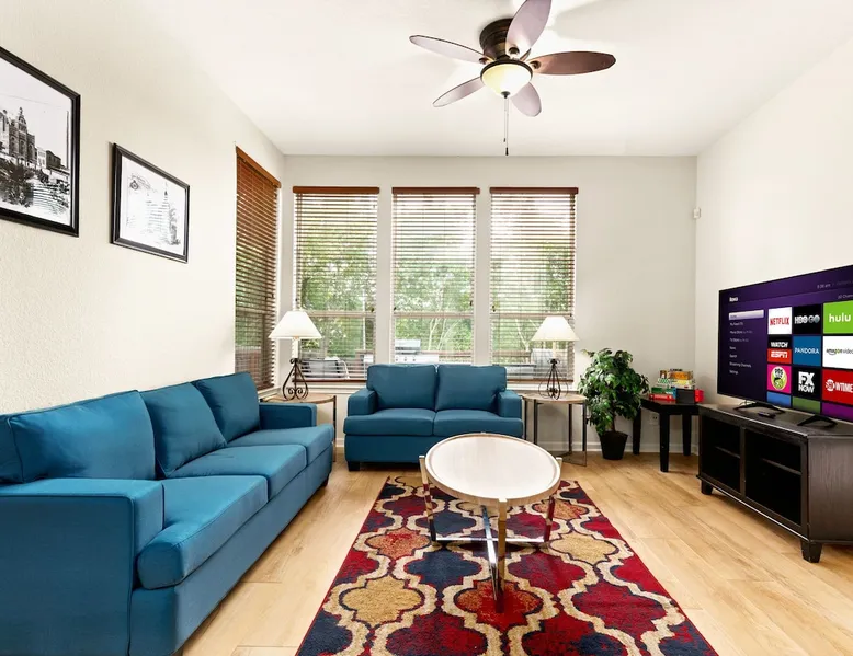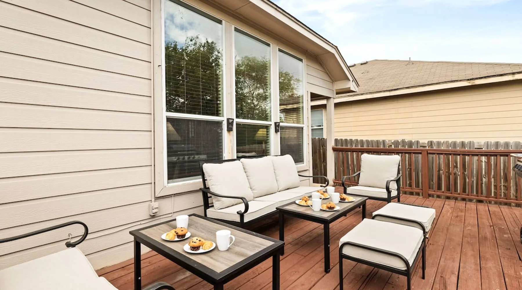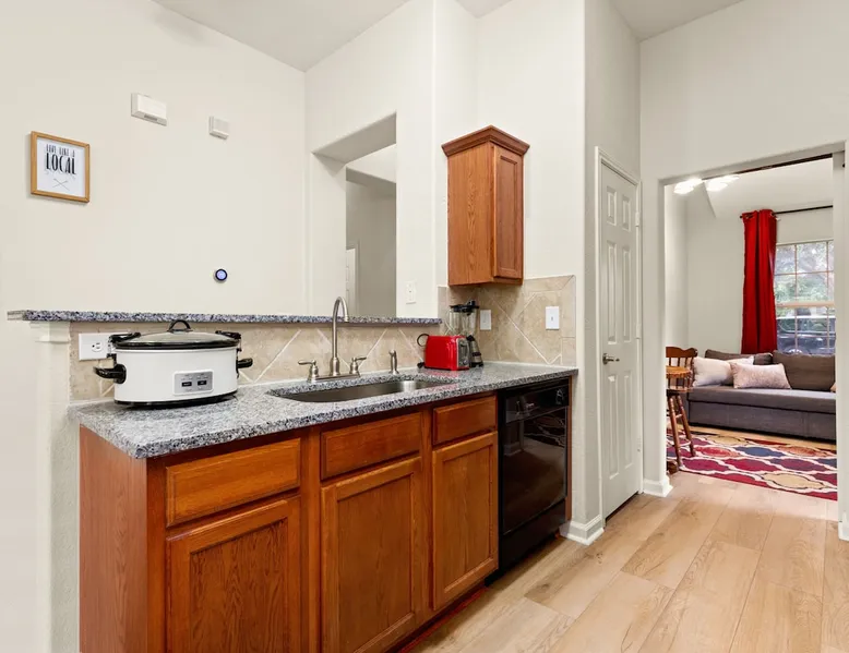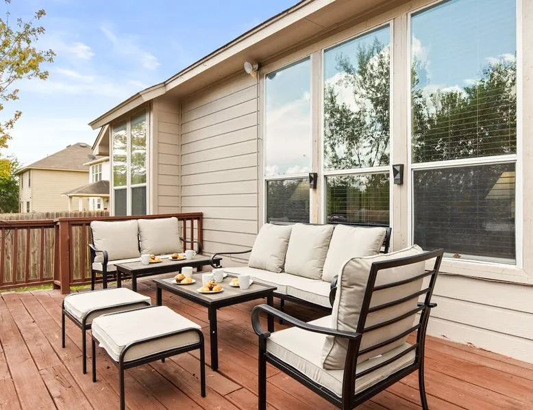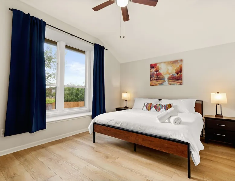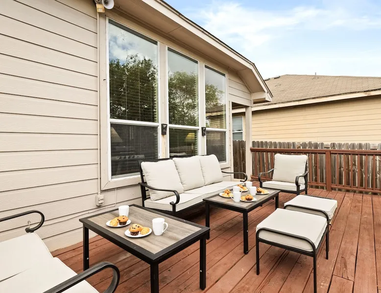 Whether in town for fun, or for Airforce BMT graduation, our home is the perfect homebase! We are situated just minutes from Lackland AFB, allowing you to maximize time with your Airman while off base. We aim to make our guests feel at home, offering all the amenities for cooking, grilling, and relaxing. From local recommendations to in-house essentials, we strive to provide a 5-star experience for everyone! - 3 mi to LAFB gate - Garage parking - Fast wifi - 10 mi to SeaWorld - Near main roads The space KEY FEATURES: 🌞 Sleeps 8 comfortably: 4 bedrooms featuring 1 king bed, 1 queen bed, a queen-size sleeper sofa, and 2 twin beds 🛁 2 Full Bathrooms with shower/tub combos 🍳 Well-equipped kitchen with seating for up to 8 guests 🎮 Nintendo Switch for gaming fun ⚡ Fast WiFi and 4 Roku TVs throughout the home 🎲 Collection of board games and puzzles for all ages 🚪 Convenient access to Lackland AFB gates ☆☆ BEDROOMS ☆☆ Our home offers four inviting sleeping spaces. The spacious primary bedroom features a king-size bed, bedside tables with convenient electrical outlets, and pillows of varying firmness for your comfort. Other bedrooms include one with a queen bed and another with two twin beds, each equipped with dressers, ceiling fans, and ample closet space. The primary bedroom also has a large Roku TV, perfect for streaming your favorite apps or catching up on local channels. A bonus room includes a pull-out couch that sleeps two additional guests, complete with a TV and sliding doors for added privacy. ☆☆ BATHROOMS ☆☆ Both of our full bathrooms are designed with your comfort in mind, featuring a tub and shower combo, complimentary toiletries (shampoo, conditioner, and body wash), a hairdryer, and large mirrors. The primary bedroom includes an en suite bathroom, while the second bathroom is conveniently located off the main hallway. ☆☆ KITCHEN & DINING ☆☆ Our open-concept kitchen is designed to keep you connected with your group while you prepare meals. It features three bar stools for casual conversation and a dining table that seats eight, perfect for family gatherings or celebrating your Air Force graduate. ☆☆ LIVING ROOM ☆☆ The living room seamlessly flows from the kitchen and dining area, offering a cozy setting with a stylish blue couch and loveseat. Relax in front of the Roku TV, challenge the family to a Nintendo Switch game, or gather around the large coffee table for a puzzle or board game. ☆☆ OUTDOOR SPACE ☆☆ Step out onto our inviting deck, where you'll find seating for everyone. Enjoy a San Antonio evening under the string lights while the grillmaster of your group takes charge of the BBQ. ☆☆ ADDITIONAL SPACES ☆☆ Our home features a spacious two-car garage along with a two-car driveway, ensuring ample parking space for all vehicles. Whether you're hosting guests or just accommodating family cars, you'll find there's plenty of room to park comfortably. *** ✅ This property follows local compliance standards and uses a simple, secure platform called Happy Guest to streamline the check-in process. You don’t need to download an app or create an account — it’s just a quick and secure website that gives you everything you need for a smooth arrival. You’ll also get access to your personalized guest portal, where you can find all the info about the home and some of our favorite local spots. The portal also offers optional upgrades to help you customize your stay: • Extra Guest – $50 • Late Checkout – $50 • Stock the Fridge – $100 ★☆ Book Today & Let Us Take Care Of You In San Antonio! ☆★ Guest access You and your group will have complete privacy and access to the home! We keep our hallway closet locked for supplies. Easy Check-In Process🏡 It’s just like when you check in at a hotel and give your ID and security deposit to the front desk, except our front desk is online! It's super easy to complete on your phone! We use a web-based system called Happy Guest, and you’ll receive a personalized rental agreement to sign in order to receive your arrival instructions. It’s simple: finish these steps, and you’re all set to enjoy your stay! Note: arrival info won’t be sent without completing these steps, and refunds aren’t possible if skipped. Your personalized guidebook will give you all the info about the home, our favorite local spots, automatic early check-in notifications, and sometimes even late checkout! You can even share it with friends and family! Got questions? Just message us anytime! Other things to note We appreciate our guests helping us maintain a peaceful environment by respecting quiet hours from 10 PM to 7 AM. This ensures a great experience for both you and our neighbors. Thank you for your cooperation! Registration Details STR-22-13501780