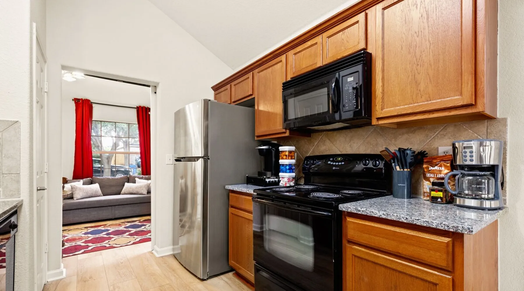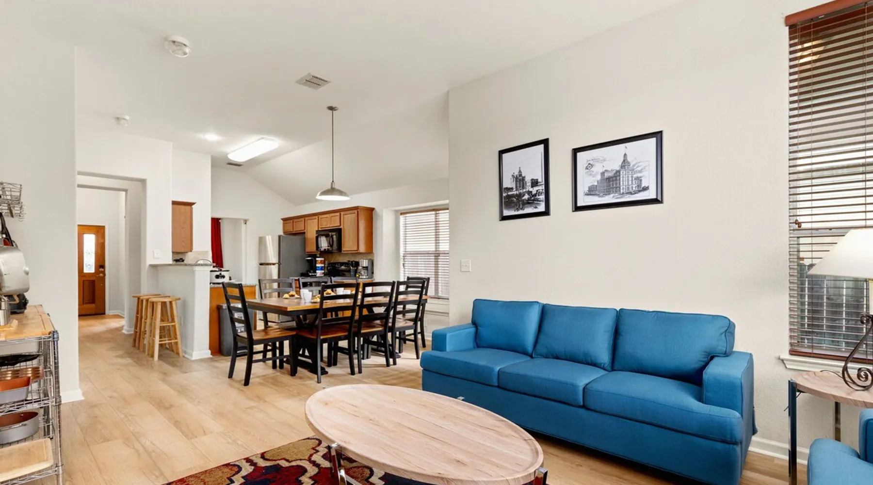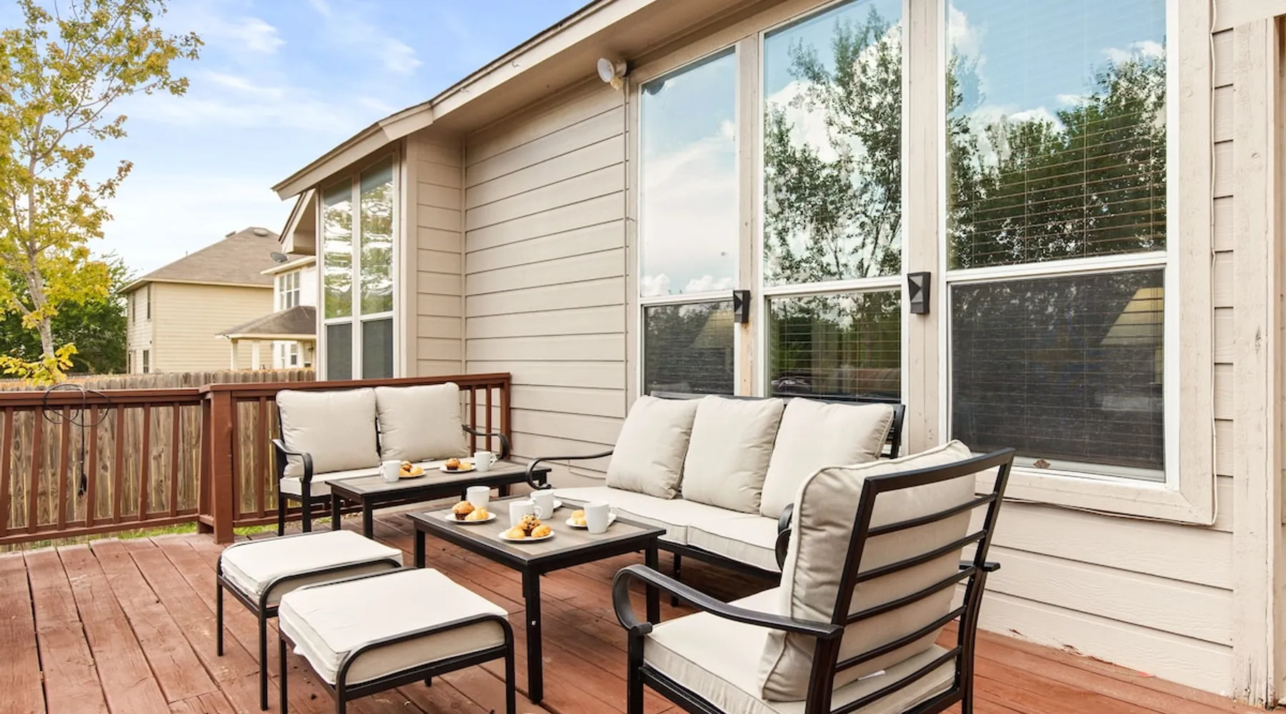 Whether in town for fun, or for Airforce BMT graduation, our home is the perfect homebase! We are situated just minutes from Lackland AFB, allowing you to maximize time with your Airman while off base. We aim to make our guests feel at home, offering all the amenities for cooking, grilling, and relaxing. From local recommendations to in-house essentials, we strive to provide a 5-star experience for everyone! - 3 mi to LAFB gate - Garage parking - Fast wifi - 10 mi to SeaWorld - Near main roads The space KEY FEATURES: 🌞 Sleeps 8 comfortably: 4 bedrooms featuring 1 king bed, 1 queen bed, a queen-size sleeper sofa, and 2 twin beds 🛁 2 Full Bathrooms with shower/tub combos 🍳 Well-equipped kitchen with seating for up to 8 guests 🎮 Nintendo Switch for gaming fun ⚡ Fast WiFi and 4 Roku TVs throughout the home 🎲 Collection of board games and puzzles for all ages 🚪 Convenient access to Lackland AFB gates ☆☆ BEDROOMS ☆☆ Our home offers four inviting sleeping spaces. The spacious primary bedroom features a king-size bed, bedside tables with convenient electrical outlets, and pillows of varying firmness for your comfort. Other bedrooms include one with a queen bed and another with two twin beds, each equipped with dressers, ceiling fans, and ample closet space. The primary bedroom also has a large Roku TV, perfect for streaming your favorite apps or catching up on local channels. A bonus room includes a pull-out couch that sleeps two additional guests, complete with a TV and sliding doors for added privacy. ☆☆ BATHROOMS ☆☆ Both of our full bathrooms are designed with your comfort in mind, featuring a tub and shower combo, complimentary toiletries (shampoo, conditioner, and body wash), a hairdryer, and large mirrors. The primary bedroom includes an en suite bathroom, while the second bathroom is conveniently located off the main hallway. ☆☆ KITCHEN & DINING ☆☆ Our open-concept kitchen is designed to keep you connected with your group while you prepare meals. It features three bar stools for casual conversation and a dining table that seats eight, perfect for family gatherings or celebrating your Air Force graduate. ☆☆ LIVING ROOM ☆☆ The living room seamlessly flows from the kitchen and dining area, offering a cozy setting with a stylish blue couch and loveseat. Relax in front of the Roku TV, challenge the family to a Nintendo Switch game, or gather around the large coffee table for a puzzle or board game. ☆☆ OUTDOOR SPACE ☆☆ Step out onto our inviting deck, where you'll find seating for everyone. Enjoy a San Antonio evening under the string lights while the grillmaster of your group takes charge of the BBQ. ☆☆ ADDITIONAL SPACES ☆☆ Our home features a spacious two-car garage along with a two-car driveway, ensuring ample parking space for all vehicles. Whether you're hosting guests or just accommodating family cars, you'll find there's plenty of room to park comfortably. *** ✅ This property follows local compliance standards and uses a simple, secure platform called Happy Guest to streamline the check-in process. You don’t need to download an app or create an account — it’s just a quick and secure website that gives you everything you need for a smooth arrival. You’ll also get access to your personalized guest portal, where you can find all the info about the home and some of our favorite local spots. The portal also offers optional upgrades to help you customize your stay: • Extra Guest – $50 • Late Checkout – $50 • Stock the Fridge – $100 ★☆ Book Today & Let Us Take Care Of You In San Antonio! ☆★ Guest access You and your group will have complete privacy and access to the home! We keep our hallway closet locked for supplies. Easy Check-In Process🏡 It’s just like when you check in at a hotel and give your ID and security deposit to the front desk, except our front desk is online! It's super easy to complete on your phone! We use a web-based system called Happy Guest, and you’ll receive a personalized rental agreement to sign in order to receive your arrival instructions. It’s simple: finish these steps, and you’re all set to enjoy your stay! Note: arrival info won’t be sent without completing these steps, and refunds aren’t possible if skipped. Your personalized guidebook will give you all the info about the home, our favorite local spots, automatic early check-in notifications, and sometimes even late checkout! You can even share it with friends and family! Got questions? Just message us anytime! Other things to note We appreciate our guests helping us maintain a peaceful environment by respecting quiet hours from 10 PM to 7 AM. This ensures a great experience for both you and our neighbors. Thank you for your cooperation! Registration Details STR-22-13501780