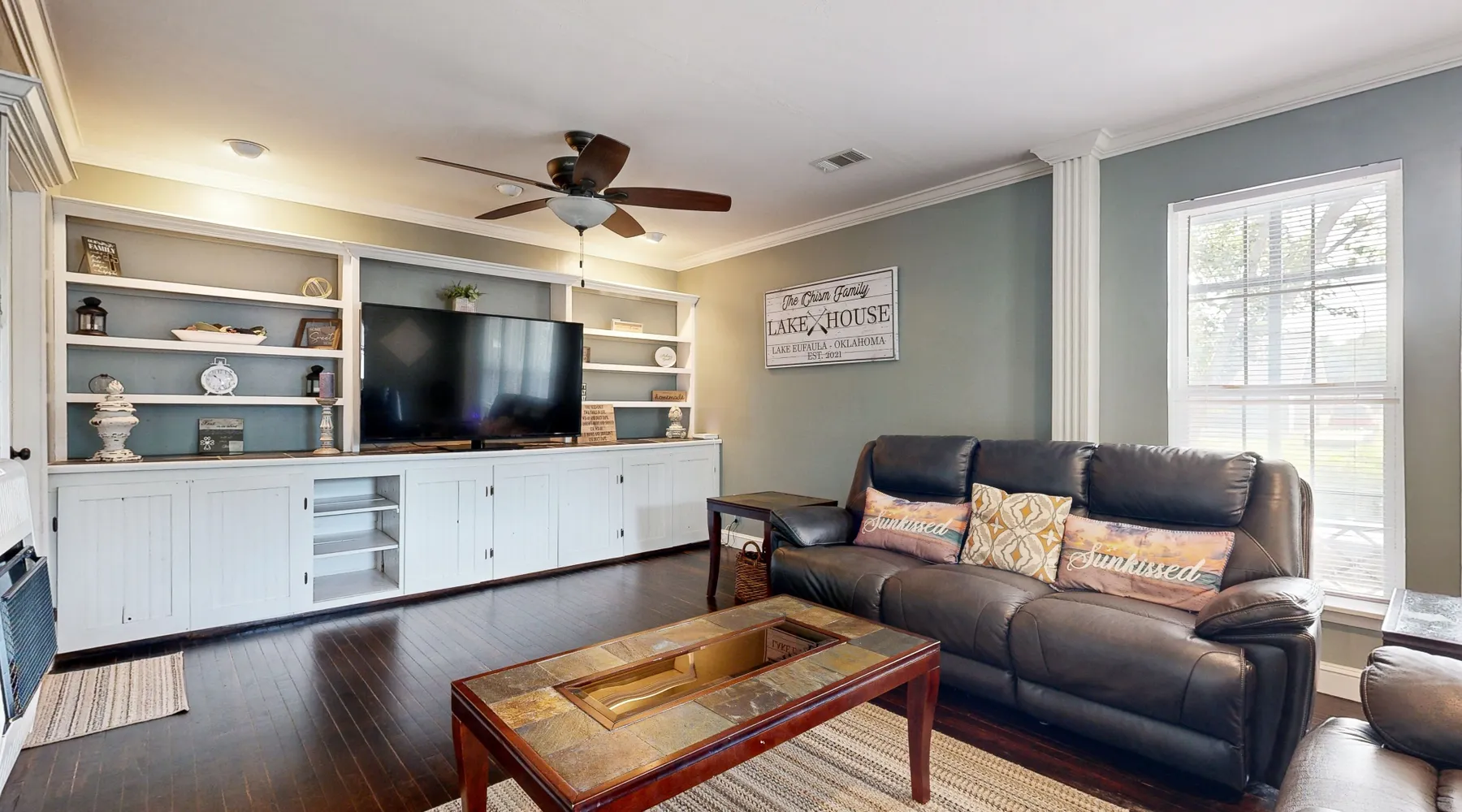 Whispering Pines Our calendar is updated in real-time & our nightly rates are accurately displayed. Simply enter your desired dates and click 'Book Now!' Escape to this sparkling clean 3-bedroom home in Checotah, The property boasts a cozy firepit, private washer and dryer, and Netflix streaming for your entertainment needs. With ample parking, including space for your boat, and a covered back deck, you'll have everything you need for a relaxing stay. Located right across the street from Oklahoma's largest lake, Lake Eufaula, you'll have easy access to a boat launch, sandy beaches, perfect for swimming, kayaking, and fishing for bass and crappie. For more outdoor adventures, Lake Eufaula State Park is just 10 miles away, while Yogi Bear's Jellystone Park is only 8 miles from your doorstep. Inside the house, you'll find all the comforts of home, including central AC, a fully equipped kitchen, and a Pack-N-Play for the little ones. Whether you're grilling out on the deck, enjoying a movie night with Netflix, or exploring the great outdoors, Book your stay now and experience the best of lakeside living in Checotah! Things to Know This Vacasa Guestworks vacation rental is operated and managed locally by an independent host. Prior to your arrival, you will receive local host contact information, who will manage your guest reservation. Your local host will provide in-stay support, secure entry, and arrange pre- and post-stay housekeeping services. If you need anything during your stay, the home’s independent local host is ready to help 24/7! Guestworks is a service offering of Vacasa that allows homeowners to smoothly and efficiently manage their own properties. Parking notes: There is free parking available for 4 vehicles. Due to local laws or HOA requirements, guests must be at least 25 years of age to book. Guests under 25 must be accompanied by a parent or legal guardian for the duration of the reservation.