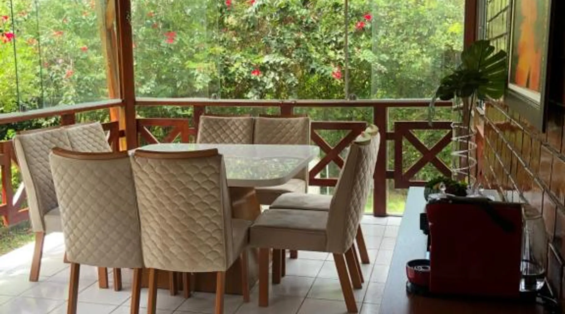 Elegant Holiday Home in Gravatá: Bangalô Doce lar offers a recently renovated holiday home in Gravatá, Brazil. The property features four bedrooms and three bathrooms, complemented by a spacious living room. Exceptional Facilities: Guests can enjoy an infinity swimming pool, sun terrace, and lush garden. Free WiFi is available throughout the property, ensuring connectivity. Comfortable Amenities: The holiday home includes air-conditioning, a fully equipped kitchen, and a washing machine. Additional amenities include an outdoor fireplace, seating area, and free on-site private parking. Convenient Location: Located 37 mi from Caruaru Airport, the property is near attractions such as Alto do Cruzeiro (2.5 mi) and Matriz de Sant Ana (5 mi). Highly rated by guests for its excellent host. This holiday home's standout features are the infinity pool and fireplace. Boasting a private entrance, this air-conditioned holiday home includes 1 living room, 4 separate bedrooms and 3 bathrooms with a shower. Guests will find a stovetop, a refrigerator, kitchenware and an oven in the fully equipped kitchen. The holiday home also features a barbecue. Featuring a terrace with garden views, this holiday home also offers a washing machine and a flat-screen TV with streaming services. The unit has 6 beds.