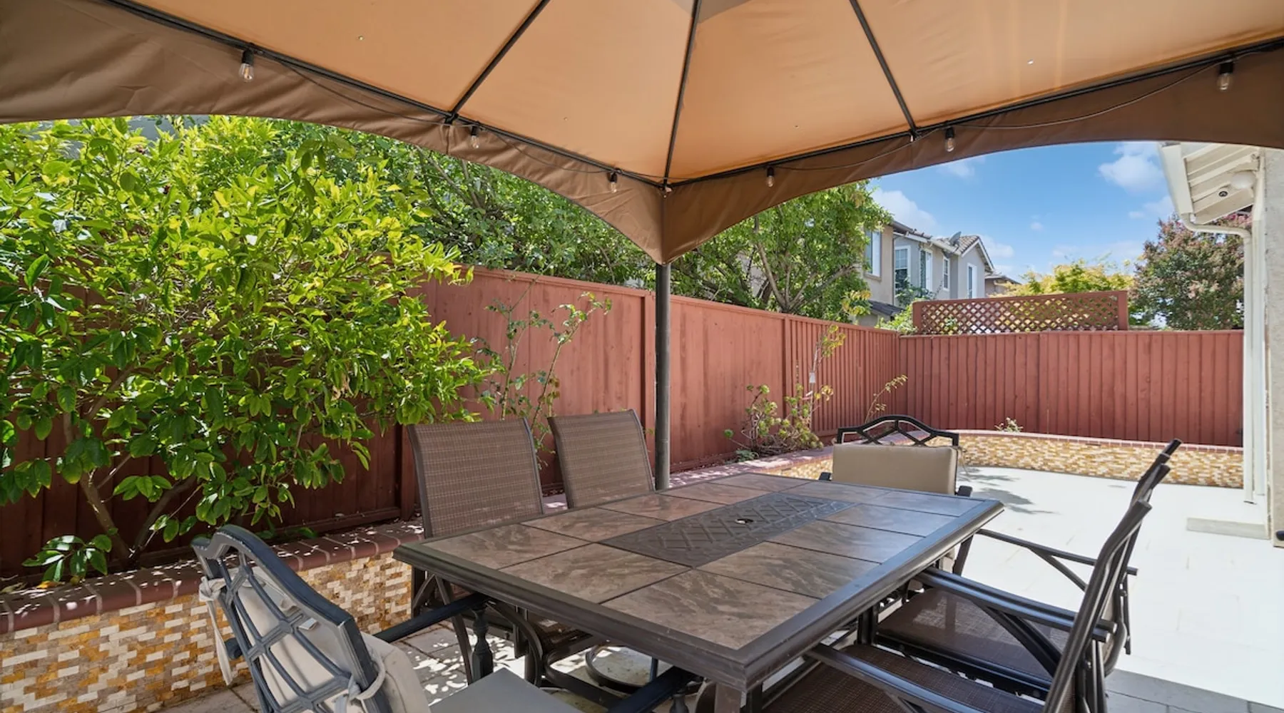 This spacious, clean and fully furnished 5-bedroom, 3-bath home is the perfect base for your stay in San Jose, the heart of Silicon Valley. The modern upgraded home is ideal for both business and leisure travelers, located just minutes from downtown San Jose, the SAP Center, and Levi's Stadium. The space This home offers easy access to Silicon Valley's top attractions, corporations and transportation hubs (BART, CalTrain, LightRail, Amtrak) Enjoy 4K 55” Samsung Smart TV in the family room and a 4K 65” Samsung Smart TV in the master bedroom. The neighborhood features community parks with basketball court, tennis courts, kids play areas, making it a family-friendly retreat in a safe, well-connected neighborhood. This home has everything you need for a comfortable and convenient stay. Whether you're visiting San Jose for work or play, this spacious and well-equipped home offers the perfect balance of relaxation and convenience. With a prime location near major venues and Silicon Valley attractions, plus amenities like dedicated workspaces, sports courts, and entertainment options, you'll have everything you need for a memorable stay. Book now and experience the comfort of this family-friendly retreat in a safe and welcoming neighborhood! ★☆ NEARBY ATTRACTIONS, LANDMARK & RESTAURANTS☆★ * SAP Center - 10 min drive * Levi's Stadium - 18 min drive * SJ Downtown - 10 min drive * Westfield Oakridge Mall & Cinemark Century 20 Theater Complex - 5 min drive * San Jose State Univ - 10 min drive * Santa Clara Univ - 15 min drive * California & Montgomery Theaters - 10 min drive * Center for the Performing Arts - 10 min drive * San Jose Civic Center - 10 min drive * CaliBunga Waterpark - 20 min drive * Great America Amusement Park - 20 min drive * Uncle Ray's - 4 min drive * Amato's Cheese Steaks - 7 min drive * Real Kabob Persian Mediterranean Grill - 4 min drive * Many restaurants and eateries are minutes away ★☆ KEY FEATURES ☆★ * Fully furnished 5-bedroom, 3-bath home located minutes from downtown San Jose and major attractions/corporations. * Clean, fully furnished home in a prime location with easy access to Silicon Valley attractions, major transportation hubs, in a safe, family-friendly neighborhood. * Keurig coffee machine, instant coffee/tea bar, electric Piano. * Fully equipped kitchen with new appliances, cookware, dinnerware, toaster, etc. * 4K 55” Samsung Smart TV located in Family Room - TV requires a Samsung login to access streaming apps and Live TV. Kindly setup a free Samsung account and use it during your stay * 4K 65” Samsung Smart TV located in Master Bedroom - TV requires a Samsung login to access streaming apps and Live TV. Kindly setup a free Samsung account and use it during your stay * Basketball and Tennis courts, kids playground (located in neighborhood community parks) * LifeSource Water Filtration system * Washer + dryer ★☆ BEDROOM ARRANGEMENT☆★ BR1: 1 Cal King Bed BR2: 2 Twin XL Beds BR3: 1 Queen Bed BR4: 1 Queen Bed BR5: 1 Queen Bed Living Room: Twin Bed ★☆ LIVING ROOM ☆★ Enjoy entertainment on the 55” 4K TV, perfect for cozy movie nights or relaxing after a day of adventure. ★☆ KITCHEN & DINING ☆★ Whether you're making a quick snack or a full meal, the kitchen is fully equipped for your needs. The open layout keeps you connected with guests in the living and dining areas. With plenty of seating and a cozy atmosphere, it's perfect for family meals or entertaining. ★☆ BACKYARD DINING ☆★ Enjoy outdoor dining under a lighted gazebo! ★☆ PARKING ☆★ * 2-car garage spots * Driveway with 2 parking spots * Free Street Parking ★☆ HOUSE RULES ☆★ * Keep the kitchen area clean and smell-free after use. * No smoking. * Dogs are allowed for an additional non-refundable fee of $75 per dog, per stay, with a maximum of 2 dogs allowed. As much as we love cats, we do not allow cats or any other animals aside from dogs at our property. * Remove any pet hair. * No events, parties, or large gatherings. * Please report any damages that occur during the stay. * There is a $500 fee for smoking in the premises. * Guests may request an early check-in (up to 3 hours before 4pm) or a late check-out (up to 2 hours after 10am), so long as there is not a reservation booked at our property for the day of your request. Please message us a day in advance to confirm availability and receive the applicable fee quote. * Extra Guests: If more guests than permitted are found at the property, we reserve the right to deny entry based on policies. Extra guests will be treated as trespassers. An additional fee of $50/night per extra guest may apply, or we might request that you vacate the property. * If uncertain about guest numbers or daytime visitors, please reach out. We aim to prevent any misunderstandings. ★☆ Book Now & Let Us Take Care Of You! ☆★