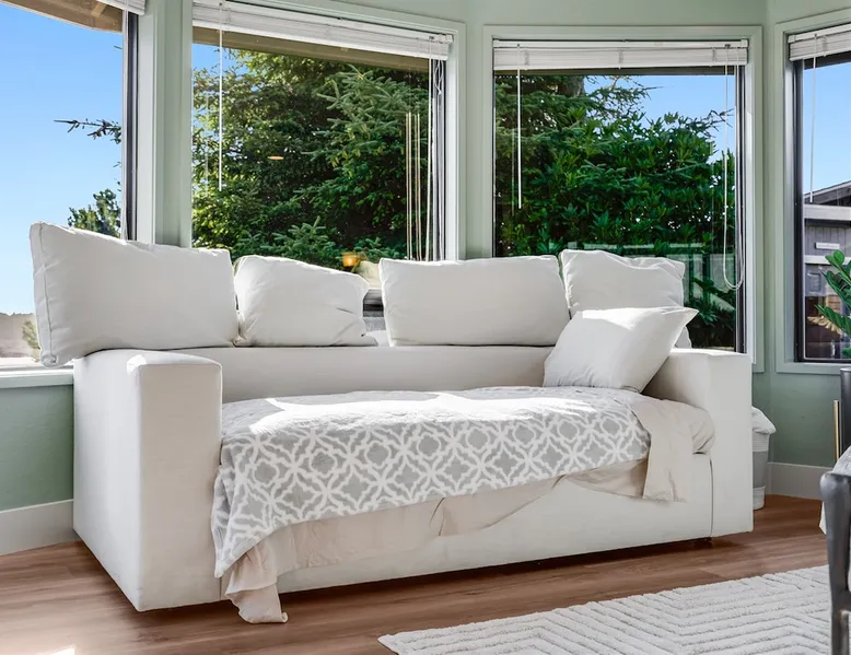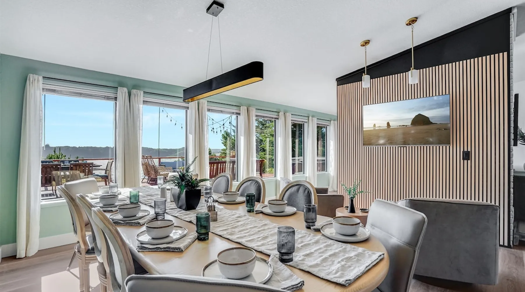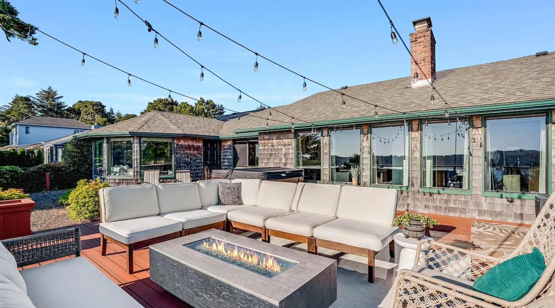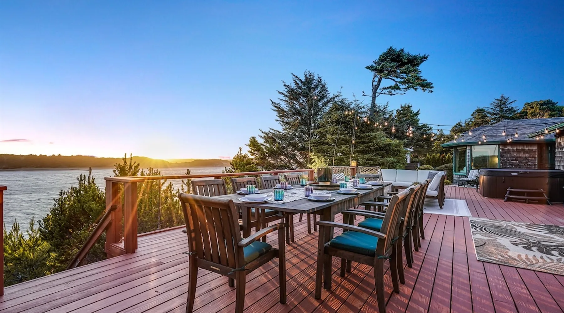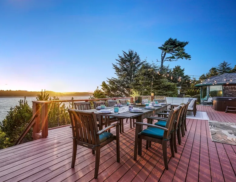 Welcome to ☀️ River Dune Retreat (hosted by @pinpointstays), a spacious family-friendly haven nestled along the Siuslaw River in the picturesque coastal town of Florence, Oregon. Just steps away from the water, you'll have a private beach at your doorstep. This spacious getaway is perfect for large groups or families, offering amazing amenities to ensure an unforgettable escape where every moment is cherished, and the tranquil river melodies are your soundtrack. The space Don't forget to click the ❤️ in the upper right hand corner so you can easily refer back to this listing while you search for the perfect stay. Retreat to our riverfront sanctuary, an expansive single-level haven crafted for serene waterfront living. This tastefully designed home seamlessly blends comfort and luxury across a spacious layout. Featuring 4 bedrooms, 3 full bathrooms, and ample amenities, it's an ideal retreat for large groups or families seeking solace by the river. Step onto the spacious outdoor deck, where cozy, comfortable furniture, a BBQ grill, and a dining area beckon for feasts amidst panoramic river views. Surrender to the allure of the hot tub, offering a serene backdrop to the gentle flow of the river. Cozy up around the fire pit and watch the beautiful sunset transition to a sky filled with stars. Enjoy uninterrupted river vistas from many corners of this tranquil hideaway. Inside, discover a living room with a 100" projector screen equipped with Roku for immersive entertainment. The home also features a unique double shower head shower, providing a luxurious bathing experience. With an abundance of natural light streaming through large windows, the stunning river views and serene vibes are preserved throughout the home. Savor the ultimate riverfront escape, where every detail is meticulously curated to elevate your experience. Welcome to your riverfront haven, where tranquility meets elegance, and each moment is a celebration of riverside serenity. 💤 SLEEPING ARRANGEMENT 🛏 Bedroom 1: 1 King bed & 1 Twin Daybed/Couch w/ smart TV (sleeps 3) 🛏 Bedroom 2: 1 Queen bed w/ smart TV (sleeps 2) 🛏 Bedroom 3: 1 Queen bed w/ smart TV and view of river (sleeps 2) 🛏 Bedroom 4: 1 Queen bed w/ smart TV (sleeps 2) 🛏 Living Room: 1 Queen pull-out 4" foam mattress sofa bed (sleeps 2) 🛏 Sun Room: 1 Twin pull-out sofa bed (sleeps 1) + 1 Queen air mattress (sleeps 2) 🚽 BATHROOMS 🚿 Bathroom 1: Full bathroom w/ stand-up tile shower (double shower heads). Located in Bedroom 1 🚿 Bathroom 2: Full bathroom w/ stand-up combination tub/shower + soaking tub. Located in Bedroom 2 🚿 Bathroom 3: Full bathroom w/ stand-up shower. Located in the hallway shared by Bedroom 3 and 4 🧑🍳 KITCHEN AND DINING ▪️ We welcome you to fully utilize all the stainless steel appliances (stove with oven, microwave, dishwasher, fridge) to fix yourself a meal ▪️ All types of cookware and utensils are thoughtfully provided to ensure you're well prepared ahead for any recipes. Basic spices are also available ▪️ Wake up and start your morning the right way with a dedicated coffee bar ▪️ Spacious dining table seats 10 comfortably with 4 more seats on the island. Additional outdoor dining set up on the deck overlooking the river ✨ KEY HIGHLIGHTS & AMENITIES ▪️ Fast WiFi with remote work desk setup ▪️ 5 bicycles (3 adult 2 kids) are available for our guests to use ▪️ Huge projector with Roku in the living room to enjoy movie night ▪️ Full-size washer and dryer ▪️ Outdoor propane grill ▪️ Games both outdoor (cornhole, yatzee) and indoor (board games) ▪️ Fun beach essentials are provided for you to enjoy as well ▪️ Your own private beach! Just steps down from the deck, you'll have a beach along the Siuslaw River to relax and enjoy the sunset ▪️ Record player with bluetooth ▪️ We love providing all guests with paper towels, dish soap, dishwasher pods, trash bags, toilet paper, hand soap, laundry pods, and many more consumables ▪️ Fresh bath and bed linens are provided - save space in your luggage as you will not need to pack them! 🅿️ PARKING ▪️ Parking is limited to 4 vehicles in the driveway Guest access ✨ You will have private use to the entire home and all its amenities during your stay ❤️ Other things to note ❄️ AIR CONDITIONING ▪️ We don't have AC at the house, but it usually doesn't get too hot since we're on the coast. If it does, you can open the windows to let in a breeze and cool the house down quickly. The back doors also have storm doors with screens to allow more air to flow through. 🦶 DECK ▪️ Please don't walk barefoot, as the deck can get very hot during summer afternoons. 👦 FAMILY WITH KIDS ▪️ Please do not allow kids to run freely outside. ▪️ There is no gate at the top of the stairs on the deck leading to the beach. ▪️ There is an open barked area in the backyard beyond the deck with a drop-off towards the river. There is nothing there other than a few bushes to prevent a little one that is not being watched from tumbling down the hillside. 🍽️ OUTDOOR DINNERWARE ▪️ Plenty of plastic dinnerware to be used for outside. Plastic dinnerware can be put in the dishwasher, but not the microwave. Please no glass on deck. 🐛 NATURE ▪️ Our home is in a natural waterfront area, so it's not out of the ordinary to see insects. We also see wildlife like eagles, bunnies, deer, and sometimes even bears by the river. It's okay to eat outside, but please clean up right away and don't leave any food on the deck overnight. 📣 CONSIDERATIONS ▪️ We cannot control the weather and no refunds will be given due to weather conditions, so we recommend the purchase of Travel Insurance for all planned vacations. Travel Insurance will protect your Investment in the event of a weather event that negatively impacts your trip ▪️ For local road conditions, please call: State Highway Department Please