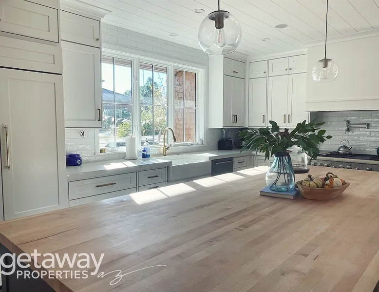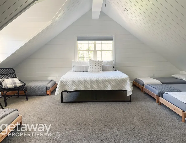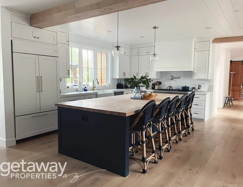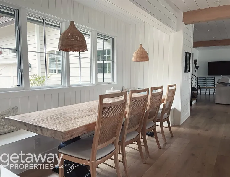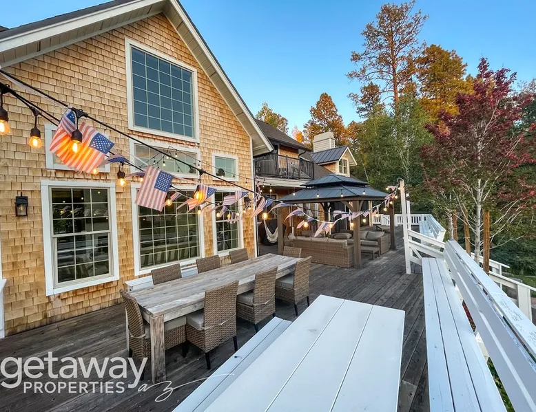 Escape to this spacious 6-bedroom, 6.5-bath lodge in the heart of the White Mountains. Designed for memorable group getaways, this home sleeps 25 guests in beds and offers everything you need for a peaceful, fun-filled escape—whether you’re planning a multi-family vacation, a yoga or business retreat, or an intimate mountain wedding. The space ⭑Master Bedroom:⭑ ✔ Relax in a luxurious king bed with a warm fireplace at your feet ✔ Enjoy a private spa-like bathroom with a Mr. Steamer shower feature ✔ Step onto your private balcony with stunning forest views ✔ Large windows bring in natural light and peaceful mountain vibes ⭑Second Bedroom:⭑ ✔ Features a plush king bed and spacious layout ✔ Comes with a private en-suite bathroom and dresser for storage ⭑Third Bedroom:⭑ ✔ Queen bed with an overhead loft twin, perfect for small families ✔ Includes a private bathroom for added comfort ⭑Fourth Bedroom:⭑ ✔ Cozy setup with three twin beds—great for kids or a group ✔ Features its own private bathroom ⭑Fifth Bedroom:⭑ ✔ Queen bed plus a charming nook with an additional twin bed ✔ Private bathroom included for convenience ⭑Sixth Bedroom:⭑ ✔ Oversized bunk-style retreat with one king bed and eight twin beds ✔ Ideal for large families, groups, or retreats ⭑Living Room:⭑ ✔ Warm and inviting with indoor fireplace and plenty of seating ✔ Board games and TV for fun and entertainment ✔ Large windows that connect you to the natural setting outside ⭑Kitchen and Dining Area:⭑ ✔ Chef-style kitchen with premium appliances and cookware ✔ Large island with bar seating—perfect for breakfast or happy hour ✔ Formal dining table and additional round table for flexible seating ✔ Includes coffee maker, blender, dishwasher, baking sheets, and more ⭑Bathrooms:⭑ ✔ All 6.5 bathrooms are stocked with essentials: towels, shampoo, body soap, conditioner, and shower gel ✔ Bathtubs and steamer shower features elevate your relaxation Other things to note Outdoor Space:⭑ ✔ Soak in the private hot tub on the back deck under the stars ✔ Gather around the fire pit in the grassy front yard ✔ Outdoor dining and furniture for meals al fresco ✔ BBQ grill with utensils for perfect summer cookouts ⭑Additional Amenities:⭑ ✔ Ping pong table ✔ Pack ’n play/travel crib ✔ Extra pillows and blankets ✔ Cleaning products and iron ✔ Blender, toaster, microwave, and toaster ⭑Safety and Security:⭑ ✔ Smoke and carbon monoxide alarms ✔ Fire extinguisher and first aid kit ✔ Safe and quiet neighborhood in a private setting ⭑Entertainment and Connectivity:⭑ ✔ Smart TV with Wi-Fi throughout the home ✔ Board games for guests of all ages ⭑Heating and Cooling:⭑ ✔ Central air conditioning and heating ✔ Ceiling fans in multiple rooms ✔ Indoor fireplace adds mountain charm ⭑Parking and Facilities:⭑ ✔ Free parking on premises ✔ Washer and dryer available ✔ Single-level home—no stairs ✔ Laundromat nearby for extended stays ⭑Services:⭑ ✔ Self-check-in available ✔ Long-term stays allowed Whether you're planning a wedding, elopement, or pre-wedding retreat, The Willow Lakehouse provides the perfect backdrop for your special day. From bridal party prep to post-ceremony relaxation, our home welcomes you with charm, space, and flexibility. Message us to inquire about hosting your wedding or event (additional fee and approval required)—we'd be honored to be part of your big day! Your stay at The Willow Lakehouse promises romantic comfort, seamless convenience, and a truly magical experience. Book now and celebrate your Pinetop wedding in style! This property has special local compliance requirements which include a signed rental agreement, ID verification, and a security hold of $1000 (which is not a traditional security deposit, just a pending transaction). As an optional alternative to the security hold, you may opt in to purchase a non-refundable damage waiver provided by a third-party insurance company. The optional damage waiver is $57 for stays up to 10 nights, with an additional $6 per day for stays longer than 10 nights. Damage waiver purchases are optional. To make this process easy for you, we use a secure and very simple, app-free platform called Happy Guest. It is not an app, and you do not have to sign up for an account - it’s a safe and secure website. It also gives you a guest portal with all the info about the home and all of my favorite local spots. Your guest portal includes advertisements with third-party upgrades that you may want to enhance your stay. These upgrades are optional and include: Late checkout - $40 per hour Firewood bundle - $35 per bundle (permitting no fire restrictions) If you have any questions, just message us anytime! Happy to help!