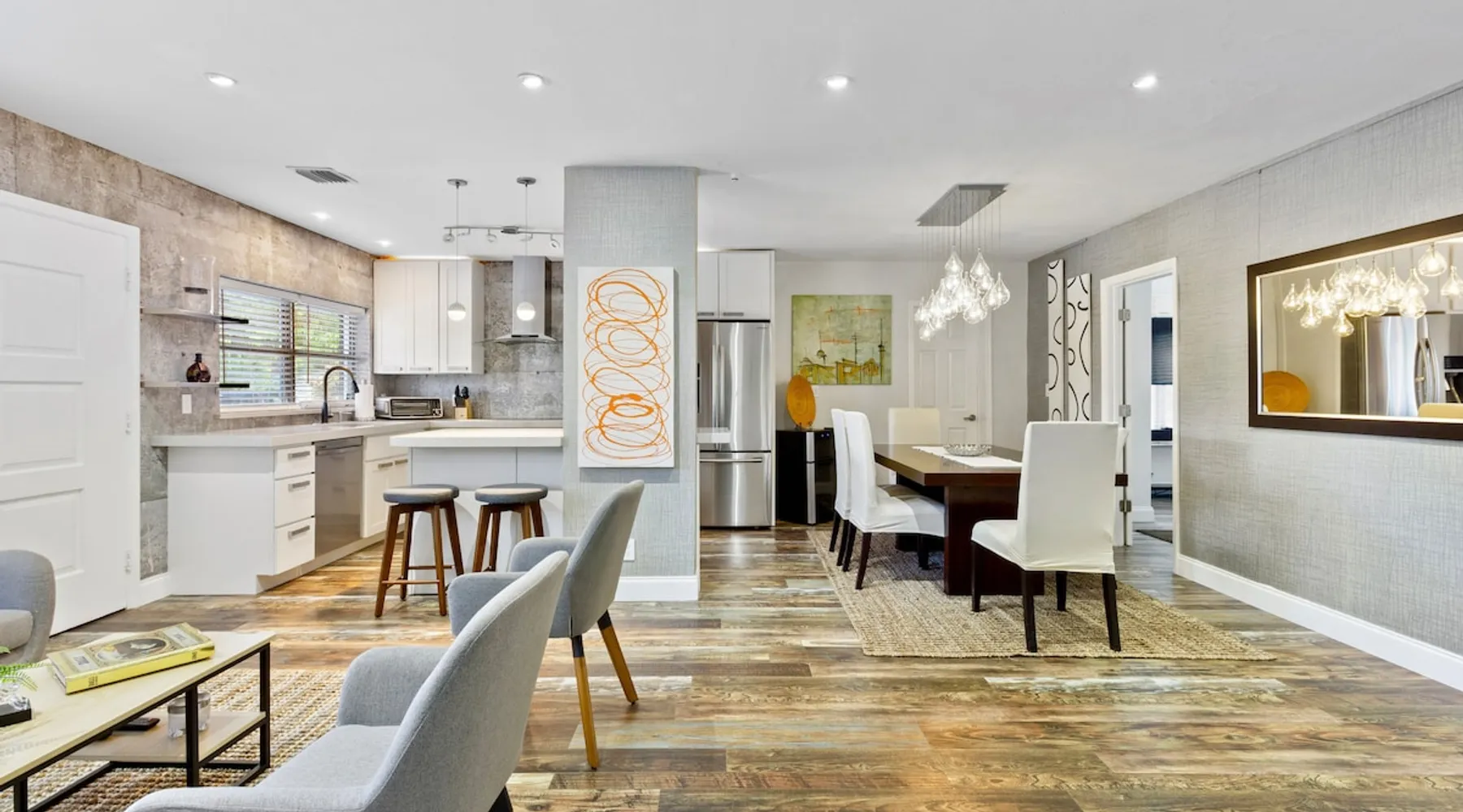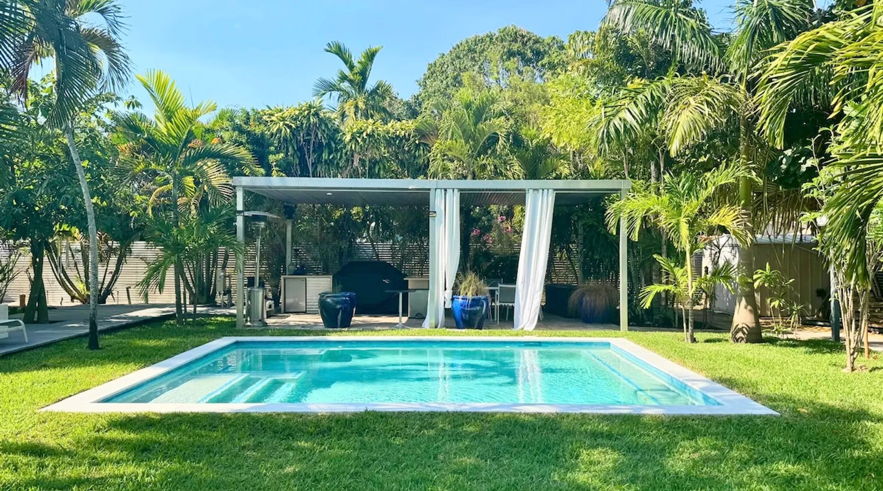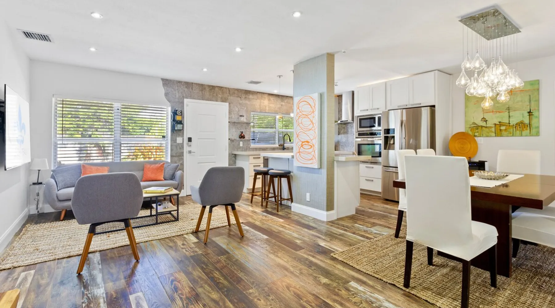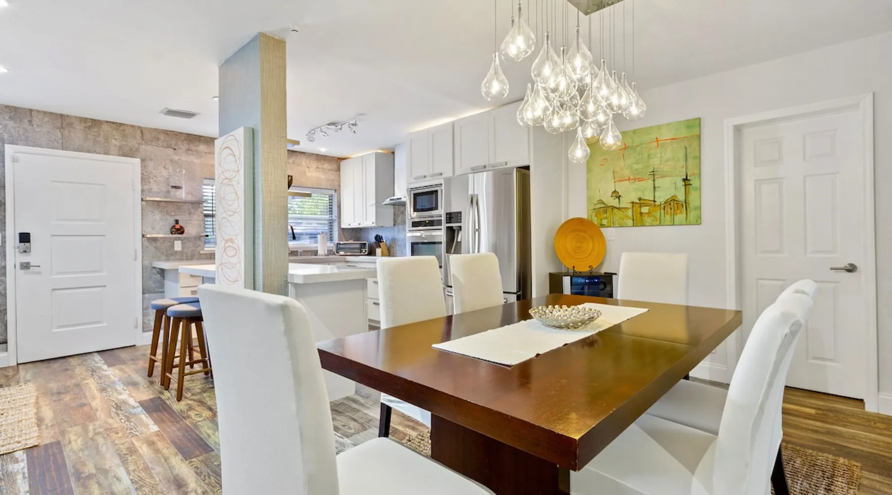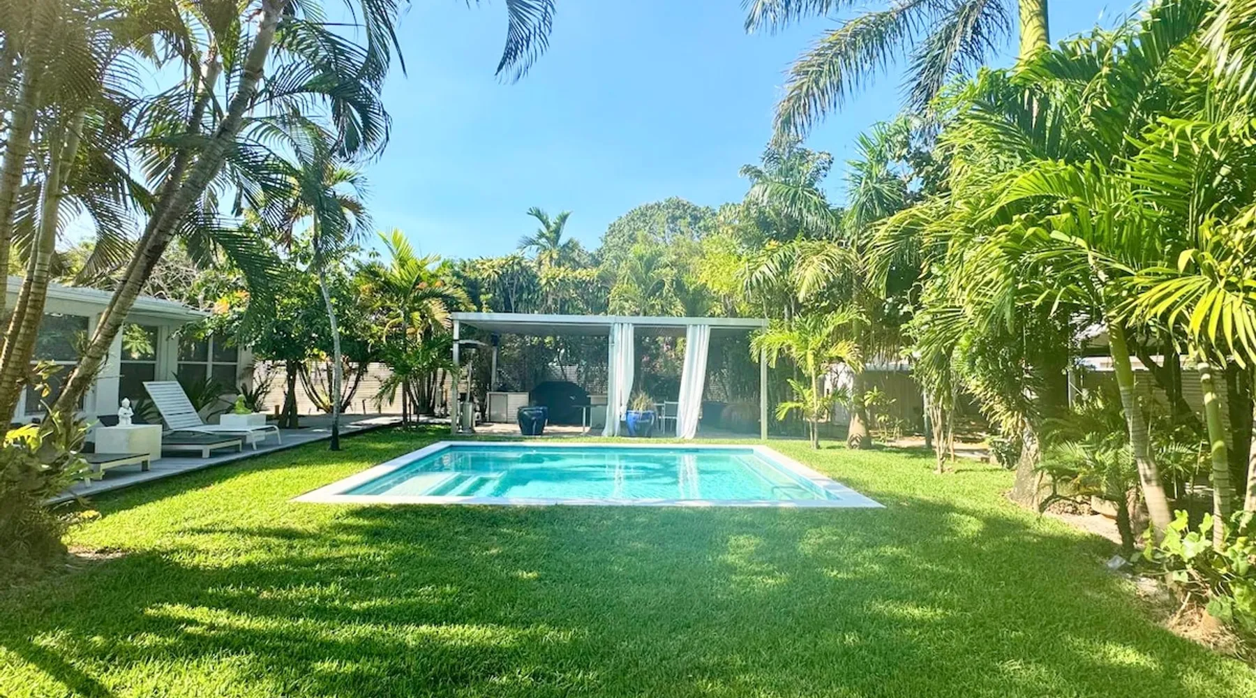 Brand new heated pool is finished and mosquito system installed! This beautifully appointed 3-bedroom, 2-bathroom home is nestled within a lush landscape on a large, private lot. Step inside and be greeted by designer wallpaper that adds a touch of elegance and sophistication to every room. The open and spacious living areas are perfect for relaxation and entertaining, featuring Smart TVs throughout so you can enjoy your favorite shows and movies with ease. The stocked kitchen is a chef’s dream. The space ***Brand new heated pool is finished and mosquito system installed!*** This beautifully appointed 3-bedroom, 2-bathroom home is nestled within a lush landscape on a large, private lot. Step inside and be greeted by designer wallpaper that adds a touch of elegance and sophistication to every room. The open and spacious living areas are perfect for relaxation and entertaining, featuring Smart TVs throughout so you can enjoy your favorite shows and movies with ease. The stocked kitchen is a chef’s dream, equipped with modern appliances and all the essentials you need to whip up delicious meals. Outside, the expansive yard offers a tranquil retreat surrounded by greenery, ideal for unwinding after a day of exploring. Located just minutes from Wilton Manors, Downtown Las Olas, and Fort Lauderdale Beach, you'll have easy access to vibrant nightlife, dining, and stunning coastal views. Whether you’re here for relaxation or adventure, this home provides the perfect blend of luxury and convenience. A typical day here may look like this: Wake up, brew a delicious cup of coffee and take a walk in the expansive back yard. You can prepare a great meal in this completely stocked kitchen or, you can also visit one of the most quaint little breakfast spots in Fort Lauderdale called Egg & U Diner. It's owned by a British woman, who welcomes all Fort Lauderdale locals every morning with a warm smile, and where the servers are as lovely as they are irreverent. They've been there for 60+ years, and it's an institution. Right in the same small shopping center, there's a consignment store called Decades. Here you can find the next treasured home decor item. They have anything from Restoration Hardware furniture all the way to a unique bauble discovered at a thrift store. All in great shape and ready to occupy that perfect spot in your home. If some beach time is in order, you're very close to Fort Lauderdale Beach, which is between Oakland Park Blvd (Northern point), and Las Olas Blvd (Southern point). The closer to Oakland Park you get the quieter and more peaceful it is. If you want a little more activity, people and volleyball, head towards Las Olas! You're welcome to use the beach chairs and towels that are at the property. All along A1A, the road bordering the beach, there's plenty of parking and many bars and restaurants for you to enjoy. After you've relaxed, you may want to head over to Wilton Manors, the super fun LGBTQ district in Fort Lauderdale. You can eat at Tulio's Tacos, (try the Smokey Pineapple Margarita, you'll thank me!), and any of their tacos are delicious. Here you'll see locals and tourists mingle as they walk from gastropub to gastropub all along the Wilton Drive strip. There's plenty of places to enjoy a great dinner such as Union Kitchen and Bar (also in Wilton Manors), try their Japanese Old Fashion, it'll change your life. Also, if you like pasta, mushrooms and you love truffle, try their Porcini Campanelle, heaven on a plate! If good Peruvian is your thing, Bravo is a great option. They began with gourmet sandwiches, which are a must, and then expanded their menu to full offering of delicious Peruvian dishes. Their Ceviche de Corvina is perhaps the best one, or the Lomo Saltado if you're in the mood for steak. Portions are good sized. When you're ready to turn in, enjoy amazing water pressure of our shower. The beds are meant to provide restorative sleep. The sheets are brand-new Le Chateau Soft Cloud Percale luxury linen for a heavenly sleep experience every time. Book your stay today and experience the best of South Florida in style! Guest access The home is completely private, so guests have access to all of the home and its amenities. Other things to note Parties/gatherings are not allowed. Pack n Play and high chair are available upon request Some pets allowed - There is a $250 pet fee if you travel with one pet, and $350 for two or more pets. TVs in this property are smart so you'll be able to log into your favorite streaming apps including those for broadcast TV. You have the option to log into any streaming app for which you have an account. We do not provide streaming app accounts. DO NOT THROW WIPES DOWN THE TOILET. If you use wipes, you'll be fined $1500 for any plumbing repairs. Absolutely no smoking of any kind inside the property, including vaping or medicinal marihuana. If we smell smoke you will be fined $500. You're welcome to smoke outside. No loud music after 9PM. There are security cameras in the front and back of the property for security purposes only. No cameras inside the property. Per local city laws: -No commercial vehicles allowed -No more than 3 vehicles on the driveway -No street parking, no parking on the grass -No more than 9 guests allowed at any time on property total. -No commercial filming allowed -No noise after 9PM -No events