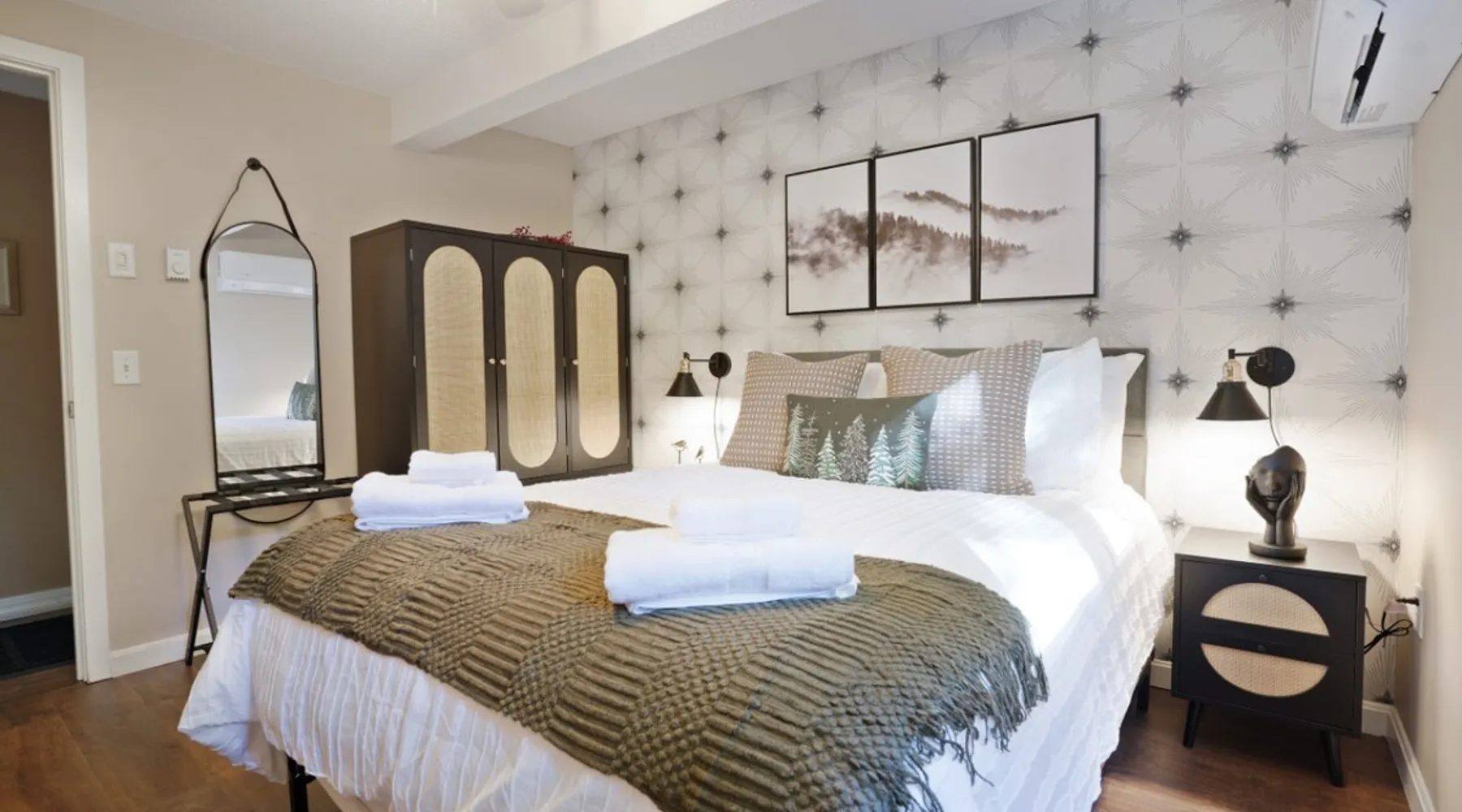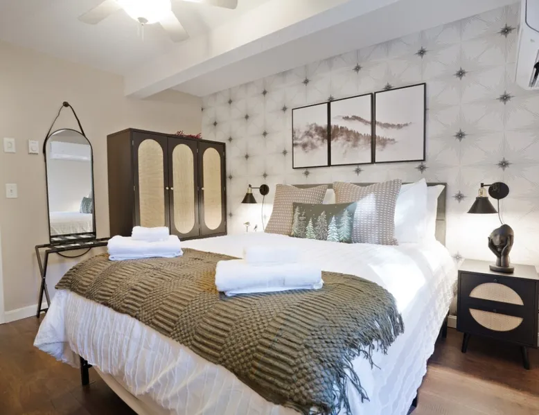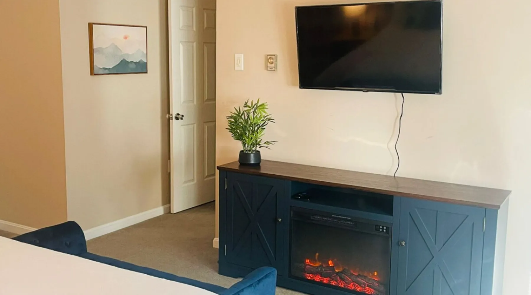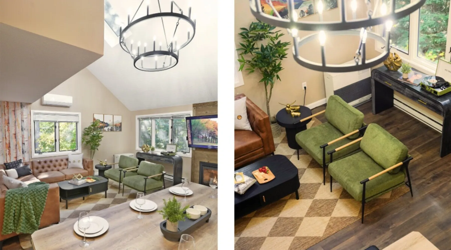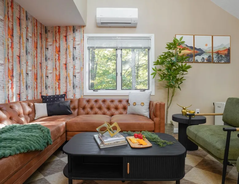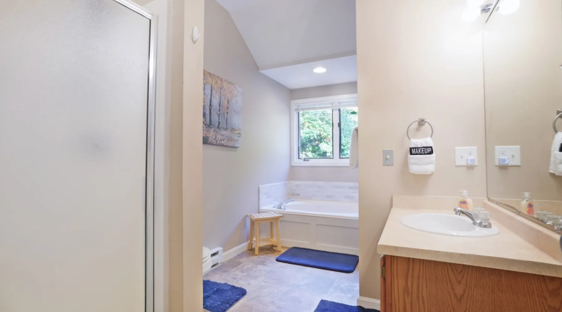 Welcome to Cranmore Hideaway — a cozy, newly designed 3-bedroom, 2-bath townhome tucked away in the heart of North Conway. Surrounded by peaceful forest views, this charming retreat offers the perfect blend of rustic character and modern comfort, ideal for families, couples, or small groups year-round. The space Whether you're visiting for a snowy ski getaway, a vibrant fall foliage tour, a summer hiking adventure, or a springtime escape, you'll find comfort and inspiration here. Just 5 minutes from Cranmore Mountain Resort and close to downtown's shops, restaurants, and attractions, the location is perfect for exploring everything the White Mountains have to offer. After a day of adventure or relaxation, return to your private deck and unwind in the fresh mountain air. Cranmore Hideaway is your four-season sanctuary — book your stay today and make lasting memories in every season. This 3-level townhome is the perfect family-friendly retreat for your next White Mountain adventure, offering 3 bedrooms and 2 baths, with sleeping arrangements for up to 8 guests. Thoughtfully designed for comfort and relaxation, this cozy escape provides plenty of space for everyone to spread out while making the most of your time together. Main Level: The main level features an open-concept kitchen and living area with soaring vaulted ceilings and gorgeous wagon wheel chandelier. The living room boasts a wood-accented gas fireplace, creating a perfect spot to relax after a day on the slopes. This level also includes a bedroom (queen) and bathroom, along with a cozy coffee bar stocked with local brews for your enjoyment. Upper Level: The entire upper level is a large primary bedroom (king) suite with a bathroom, a standing shower and separate soaking tub for apres-ski relaxation. Lower Level: It includes bunk beds (twin over twin) and a full sofa bed, offering additional sleeping space. This area can also serve as a second living room, perfect for playing games or watching TV. Amenities include fully stocked kitchen, furnished bedrooms, smart TV (in living room and all bedrooms), central heating, split ACs in all rooms and exclusive access to the community's tennis court and playground. DINING AREA + GAME SPACE: We have a lovely dining nook (seats 8) where you can enjoy a relaxed meal or enjoy board games with your family and friends. The nook includes billiards, table tennis, and a dining table with dual storage bench seating (all in one). Challenge your companions to various games for a laid-back evening indoors. PARKING: House comes with 2 car dedicated parking spots (right outside the house) KITCHEN + COFFEE BAR When it's time to refuel, the fully equipped kitchen provides everything you need to whip up delicious meals and snacks. Enjoy your culinary creations at the dining table. Our coffee station provides a variety of local brews and teas. OUTDOOR: Step right outside from the main living area to a charming porch, perfect for summer dining or enjoying a BBQ grill session. ABOUT THE LOCATION: After a day of outdoor fun, come home to unwind by the cozy gas fireplace. Whether you're here for skiing, hiking, or simply soaking in the serene surroundings, this condo is the perfect base for your Conway adventures. Book now for a memorable mountain escape! ADDITIONAL: We do have video surveillance of the front door, parking and backyard which helps us in maintaining the property from a distance. The video is motion activated, but can be checked at any time by the hosts via live feed. Any attempt at disabling or obscuring the cameras is prohibited. PETS: - Up to 2 pets allowed ($100 fee per stay). Approval needed for more, with extra fees. - Keep pets leashed while walking in the neighborhood. - No unattended pets - No pets on furniture (sofas, beds, etc). - Clean up after them inside and outside - Prevent excessive barking or noise. While $100 pet fee covers extra cleaning, but additional charges apply for uncollected pet waste, soiled linens, or damaged furniture. Thanks for keeping our space pet-friendly for all! SMOKING/DRUGS POLICY This is no smoking and no drug use house. Use of such is strictly prohibited inside or outside on premises. $500 fee for evidence of smoking or drug use plus additional cleaning fees apply. The nightly rates are reflective of minimum guest booking with no pets. We request you to add the exact count of guests, children and pets at the time of reservation for the nightly rates to be accurately reflected for any additional charges.
