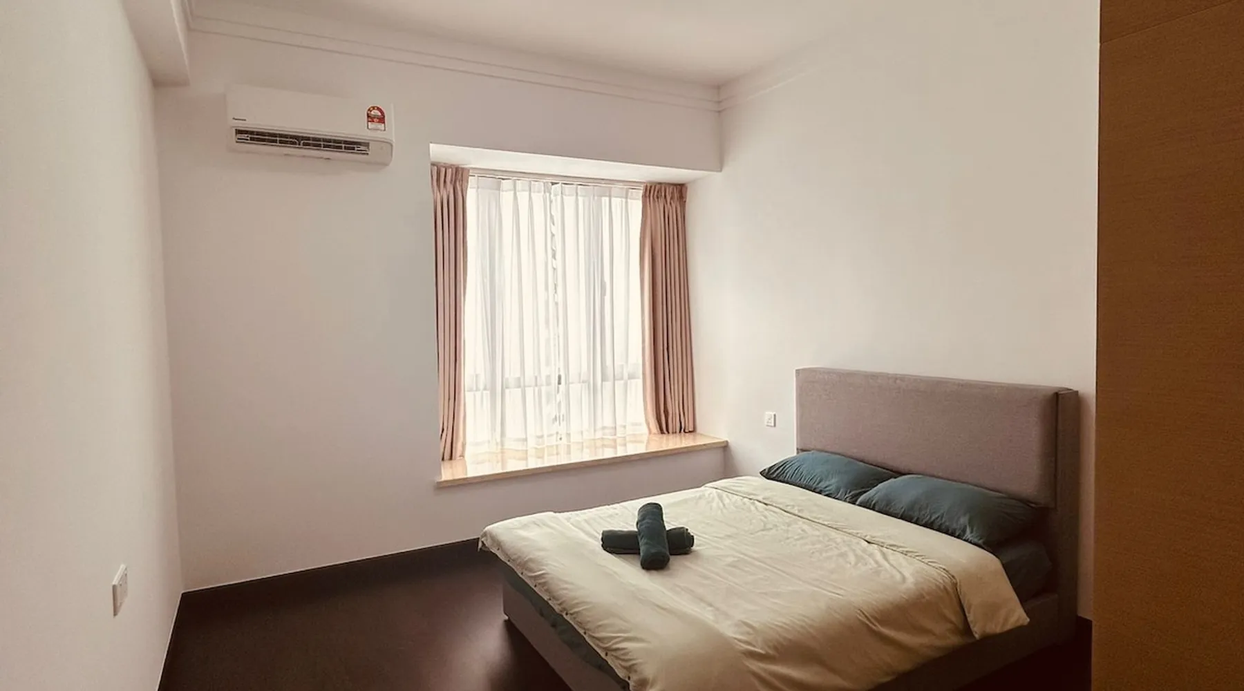 Enjoy a bird-and sea-view apartment with three bedrooms, perfect for up to six guests. It is 1181sqft. The flat includes fresh bed linens, bath towels, shampoo, and body wash. Ideal for families, it offers access to high-speed WiFi. In addition, a swimming pool, a new gym, and a kids' playground on the 8th floor are available too. Free parking is upon request and reservation. Conveniently located near CIQ, it's a short walk to JB Sentral and JBCC shopping mall, with plenty of restaurants nearby. The space R&F Princess Cove, Phase 2, 3 bedrooms, 3 beds, 2 bathrooms Guest access Guest can use all areas and facilities provided in the flat. Other things to note Free parking is available, but reservation is needed. Guests should inform the host in advance for reserving a lot.