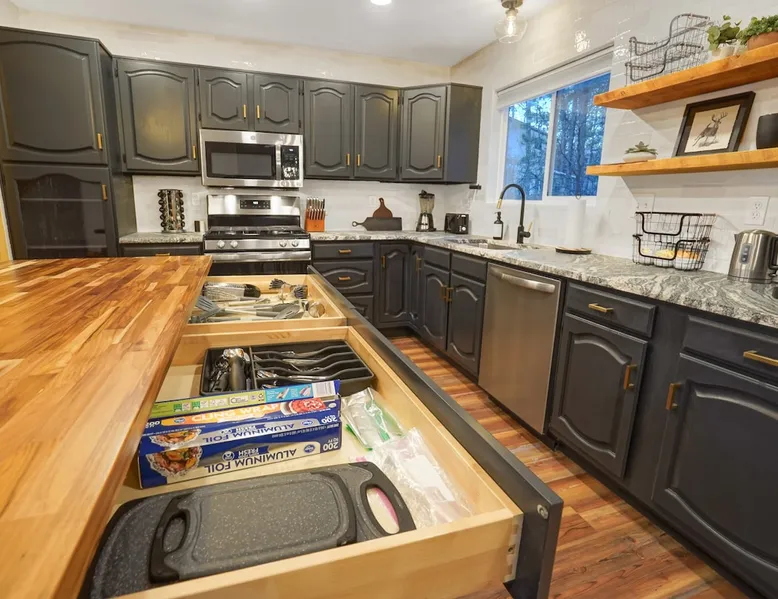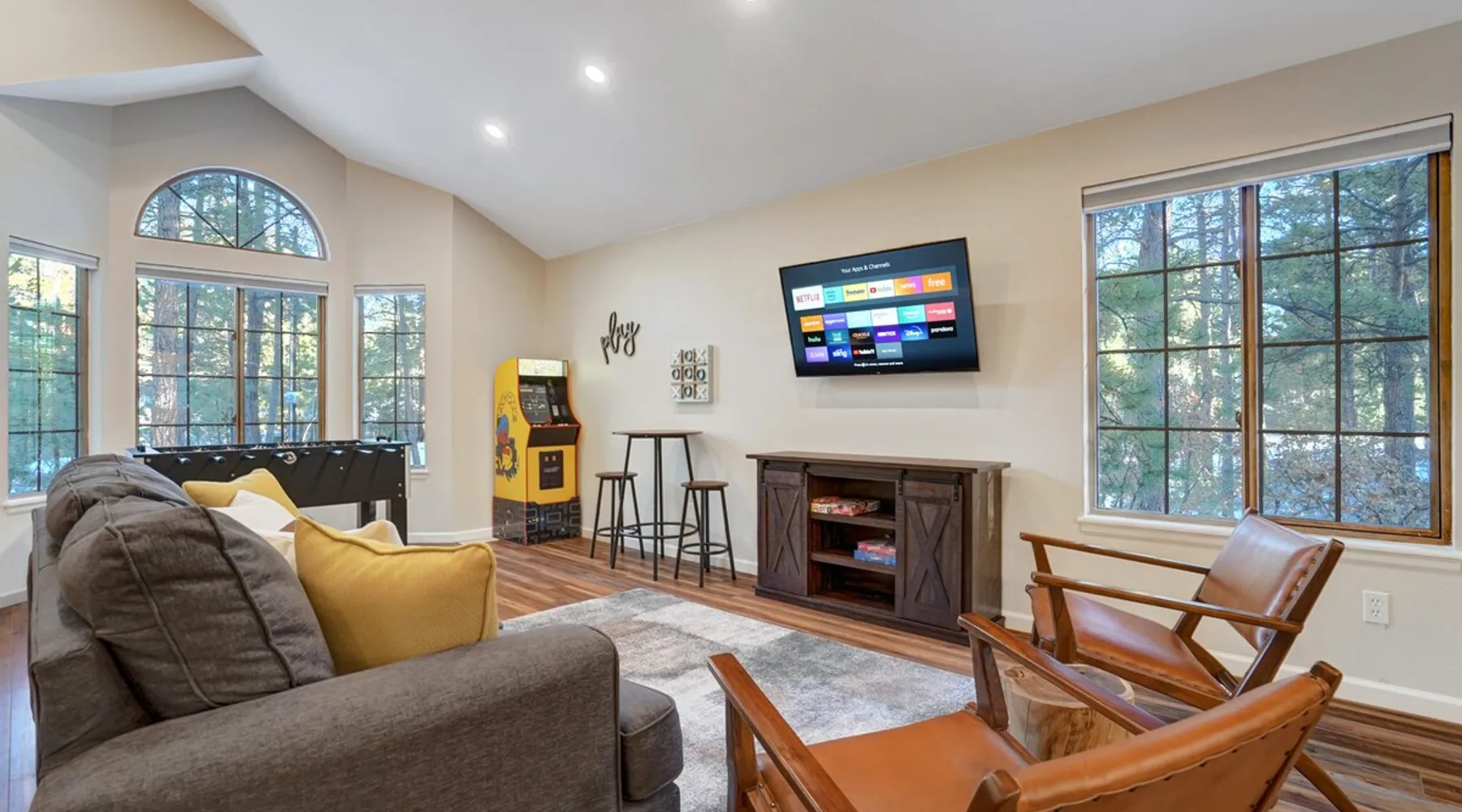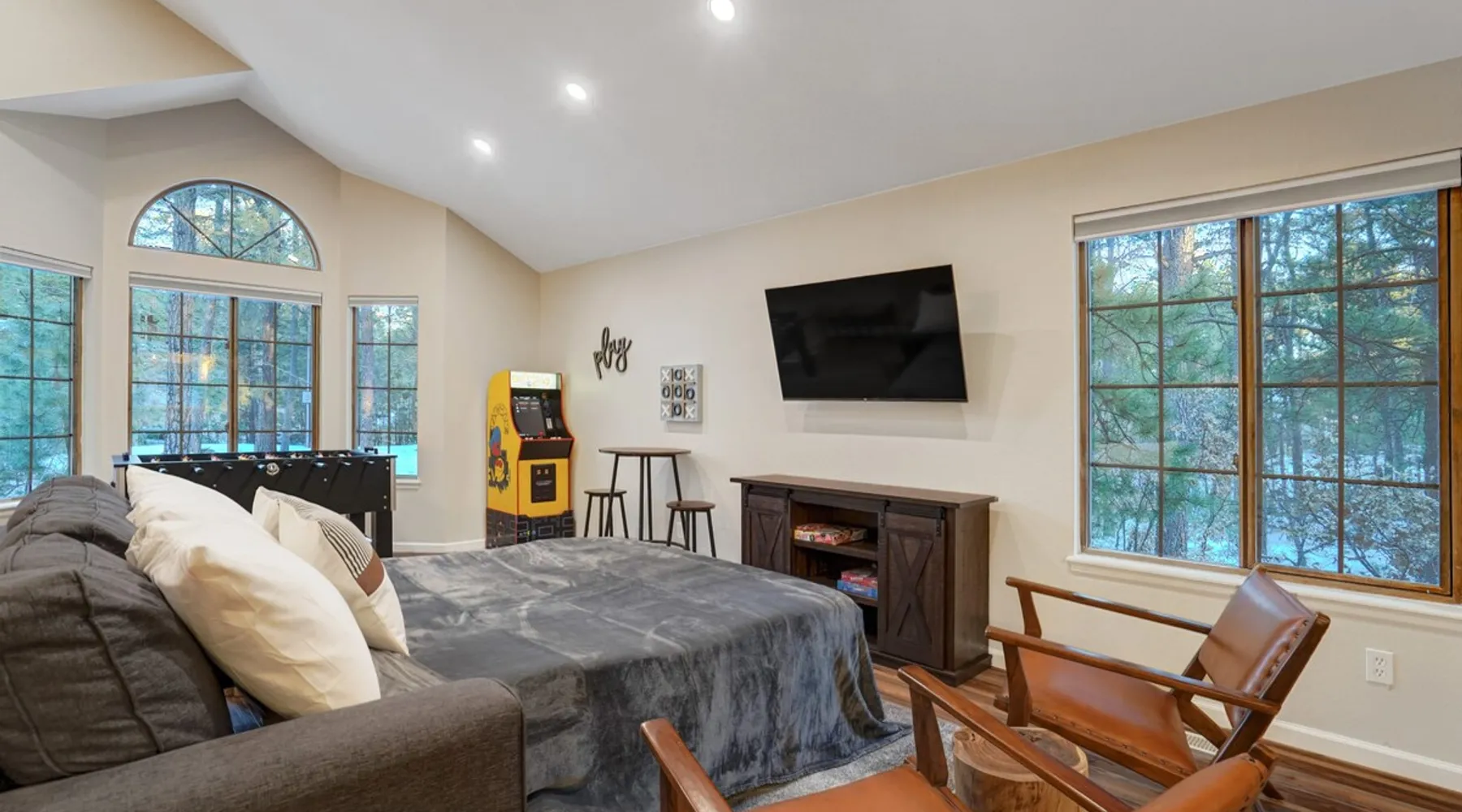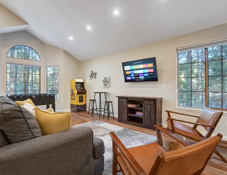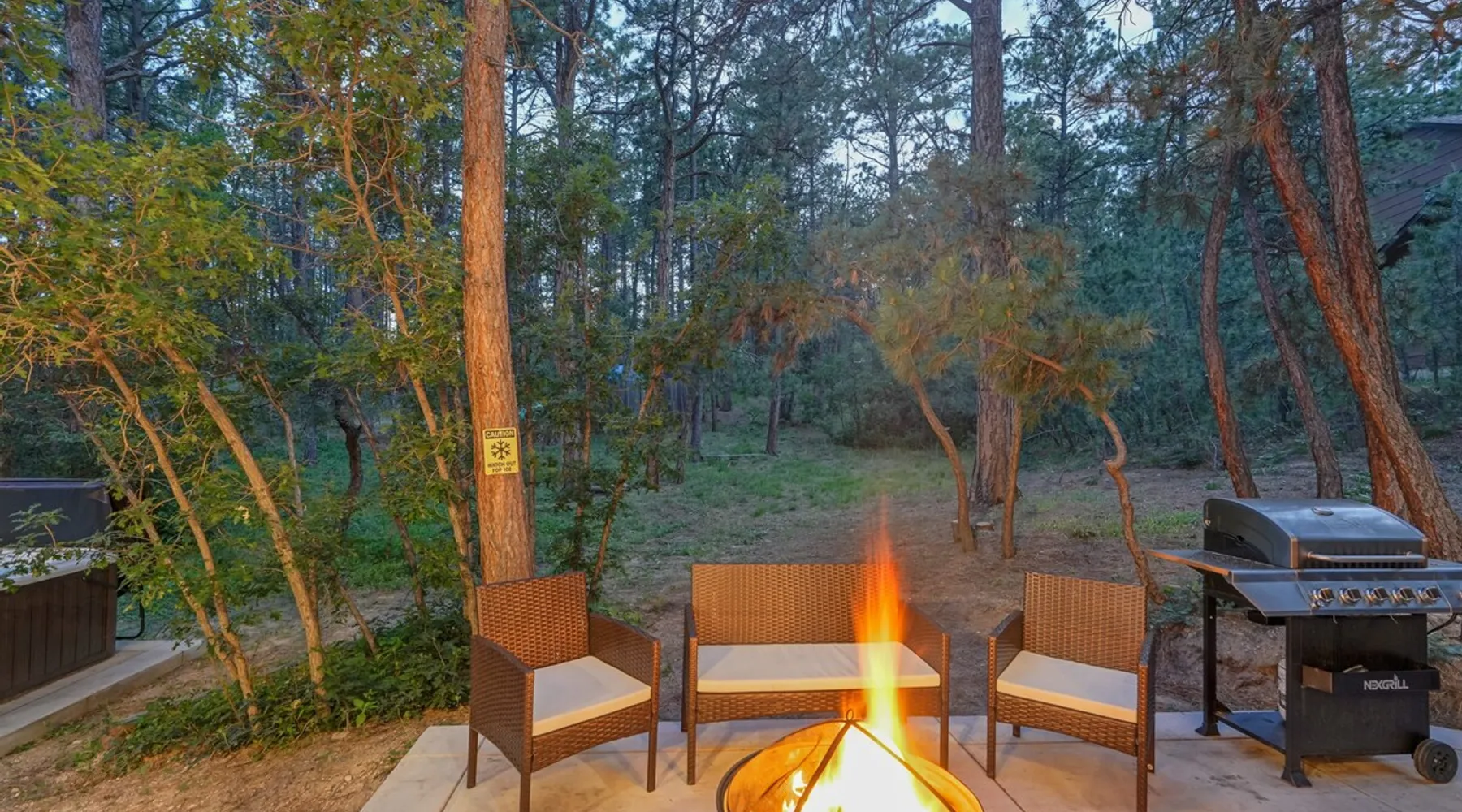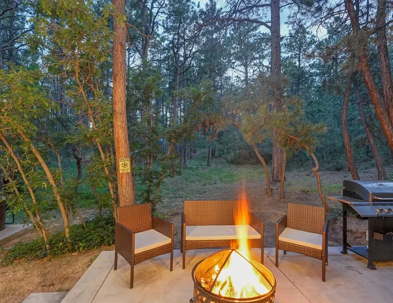 Experience the tranquility of Fox Run Retreat nestled among the trees near Colorado Springs! 🌲 🌟 Spacious living room with large windows and a stone fireplace 📍 Minutes to local shops, restaurants, and hiking trails 🛁 Secluded 8-person hot tub among the trees 🔥 BBQ grill and fire pit in the Backyard 🎮 Game room with a foosball table and arcade machine 🍽 Fully stocked kitchen! Pack your bags and reserve your adventure! The space Welcome to Fox Run Retreat, nestled in serene woodlands and offering stunning mountain views! This two-story getaway is just a short drive from downtown Colorado Springs and is designed for both relaxation and convenience. The inviting interior blends rustic charm with modern amenities, creating a warm and welcoming atmosphere. 🛋️ Living Room The spacious and bright main living room features large windows that flood the space with natural light and offer beautiful views of the surrounding forest. A stone fireplace adds a cozy touch, while the entertainment area includes a foosball table and an arcade machine for plenty of fun. Comfortable pull-out sofas provide extra sleeping arrangements for guests. 🍳 Kitchen The modern kitchen is equipped with stainless steel appliances, including a refrigerator, oven, and dishwasher. A large island offers ample counter space for meal preparation and casual dining. Fully stocked with essential cookware, utensils, and a Keurig coffee maker, the kitchen is ready to start your mornings right. 🛏️ Bedrooms Master Bedroom: Cozy and inviting, the master bedroom features rustic décor and a comfortable window seat for enjoying scenic views. Additional Bedrooms: The charming bunk room is perfect for kids or extra guests, ensuring everyone has a comfortable place to sleep. 🛁 Bathroom The well-equipped bathroom includes dual sinks and granite countertops, offering plenty of space for getting ready. Enjoy a luxurious soaking tub and a separate walk-in shower for a spa-like experience. The bathroom is stocked with essential toiletries, towels, and a hairdryer for your convenience. 🌿 Backyard Step outside to relax in the private hot tub or gather around the fire pit for evening conversations and marshmallow roasting. The patio, complete with a grill, is perfect for outdoor dining and enjoying the fresh mountain air. At Fox Run Retreat, we’re committed to providing a stay that exceeds your expectations. With attention to detail and a focus on comfort, our space offers everything you need for a memorable and enjoyable getaway! Guest access 🔑 During your stay, you will have complete access to the entire property, including all its amenities, facilities, house and cottage. This includes bedrooms, living spaces, kitchen, backyard, and everything this house has to offer. You are welcome to make use of everything available to ensure a comfortable and enjoyable experience. Please feel free to let us know if there's anything specific you'd like to know about the property or if you have any special requests during your stay. We want to ensure that you have a wonderful time while you're here. Other things to note 📜 Rental Agreement: For a seamless booking experience, a Rental Agreement is required for all reservations. Once your reservation is confirmed, we’ll provide details for completing the agreement. 🔑 Check-In Process: For a seamless check-in experience, your unique code along with your check-in instructions will be updated into your personalized guidebook on the morning of your arrival. You’ll use this code for entry. ☕ Starter Supply: We’ve prepared a starter supply that includes paper towels, coffee K-cups, toilet paper, shampoo, body wash, and plush white towels! We hope these amenities add an extra touch of comfort to your stay. ⏰ Unauthorized Late Checkout Fee: $20 Per Half Hour Late 💵 Additional Fees: To ensure that we have enough time to prepare for future guests, we ask that you please message us ahead of time for pricing regarding guaranteed early check-ins or late check-outs. These additional fees are necessary to cover the expenses of reworking the schedule or adding an additional cleaner to the schedule to accommodate your request. 🔥 Fire Pit: While we provide the fire pit for your use, guests are responsible for bringing their own firewood. If you need assistance or have any questions about where to purchase firewood, feel free to reach out to us.