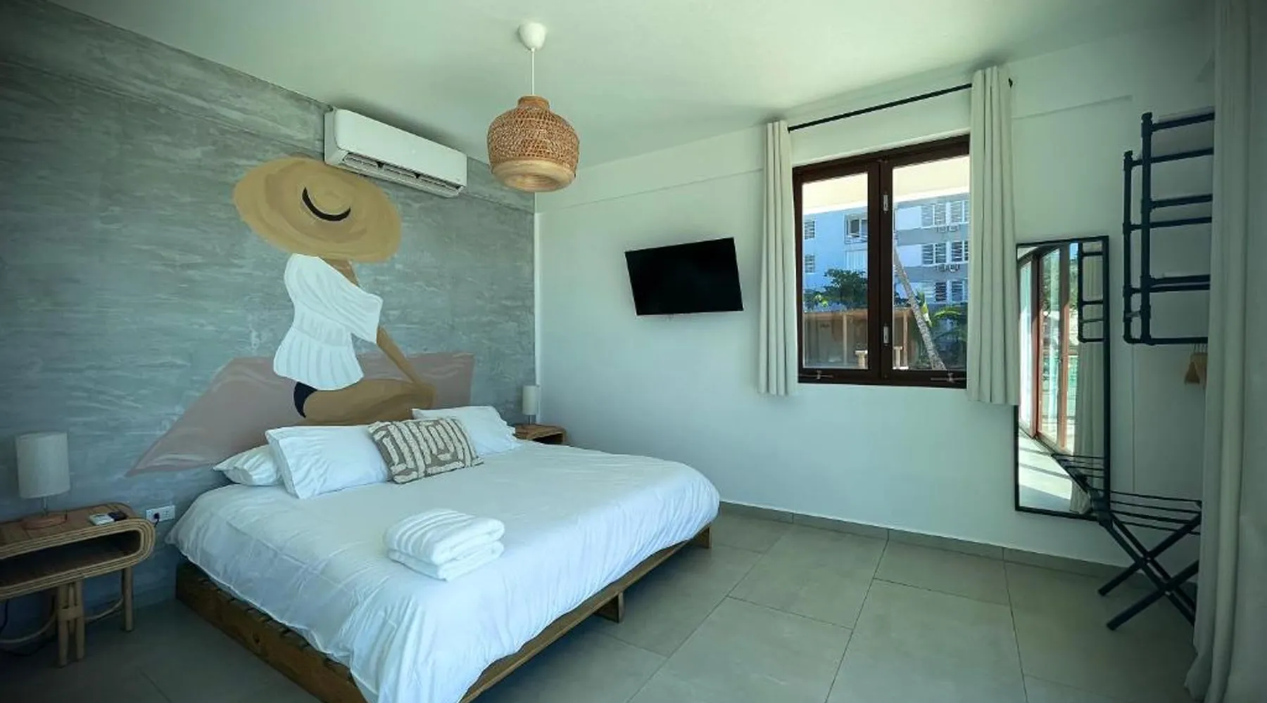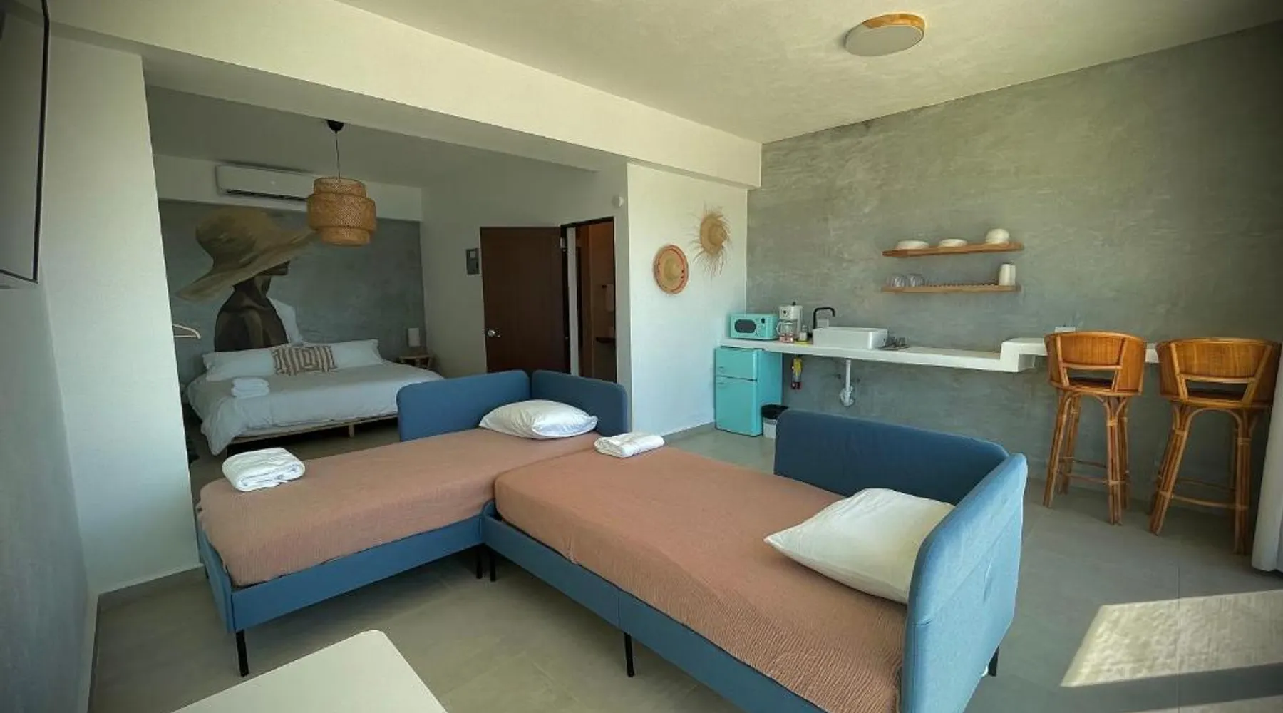 Beachfront Location: 1 Corcega Beachfront Suites in Rincón offers direct beachfront access and stunning sea views. Guests enjoy a beachfront location with a view, highly rated for its scenic setting. Comfortable Accommodations: The guest house features family rooms with air-conditioning, kitchenettes, private bathrooms, and free WiFi. Each room includes a tea and coffee maker, refrigerator, microwave, and TV, ensuring a comfortable stay. Convenient Facilities: Guests benefit from free on-site private parking, laundry service, and an outdoor dining area. Additional amenities include balconies, outdoor furniture, and ground-floor units, enhancing the beachfront experience. Nearby Attractions: Los Almendros Beach is a 19-minute walk away, while Porta Coeli Religious Art Museum lies 26 mi from the property. Eugenio Maria de Hostos Airport is 9.9 mi distant, providing easy access for travelers. The studio offers air conditioning and a tea and coffee maker, as well as a private bathroom boasting a shower. The studio's kitchenette, which has a refrigerator and a microwave, is available for cooking and storing food. This studio provides a flat-screen TV. The unit has 1 bed.