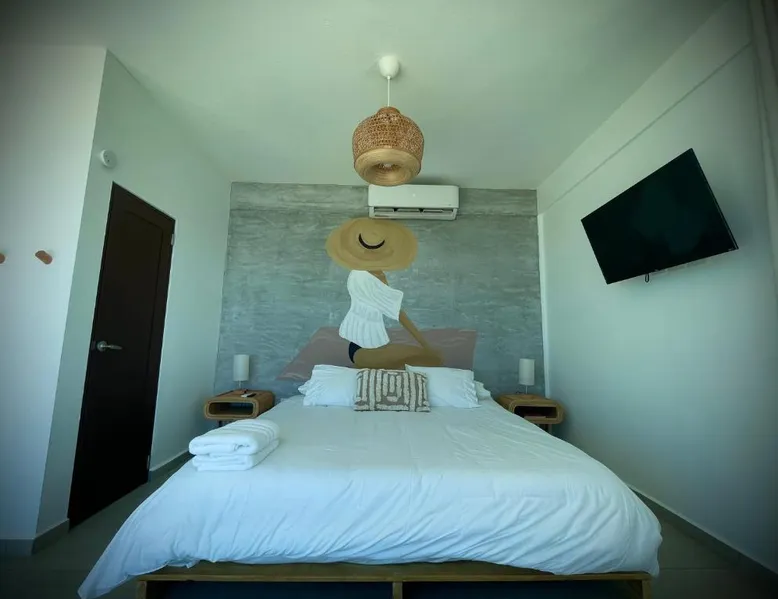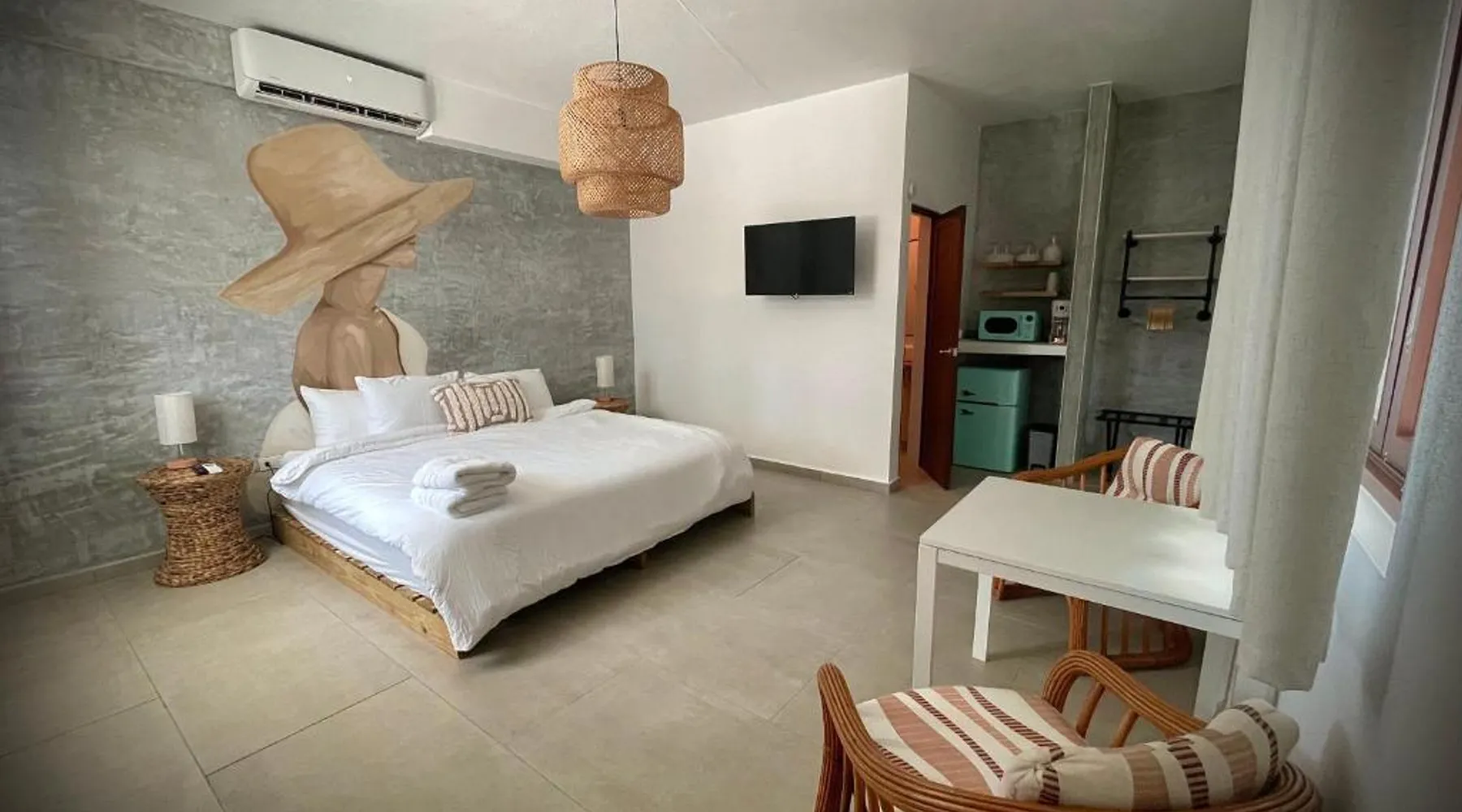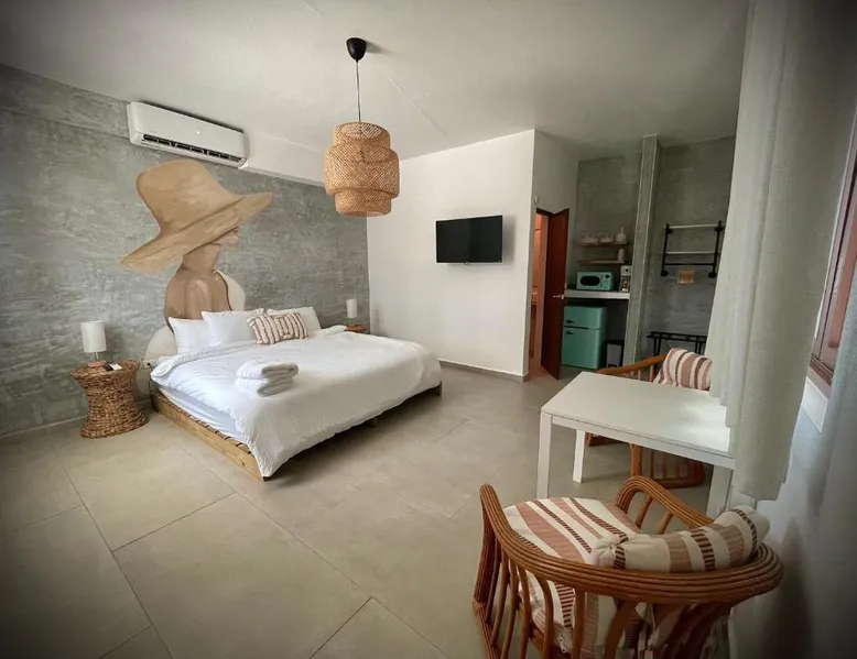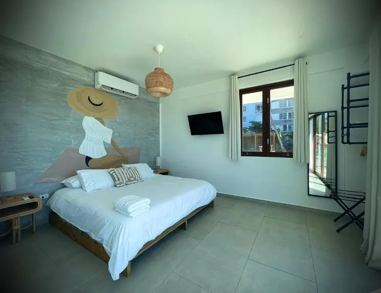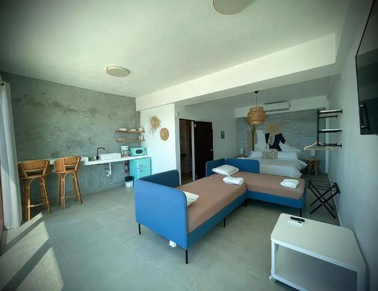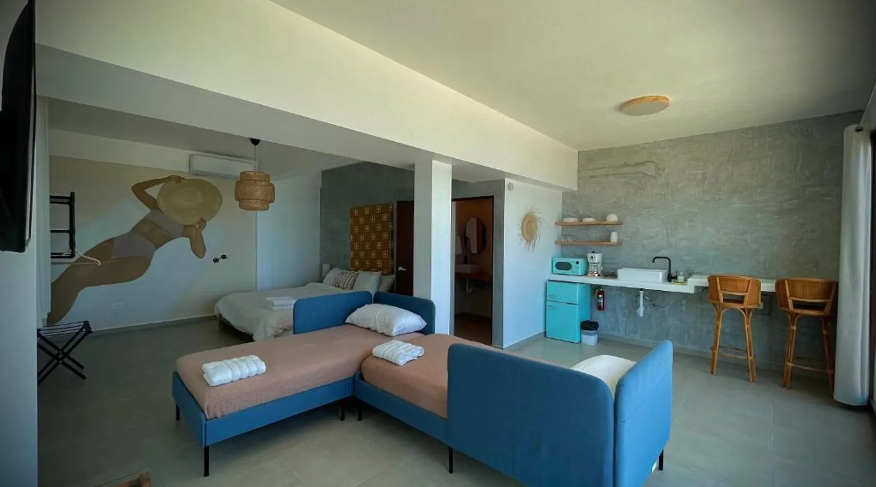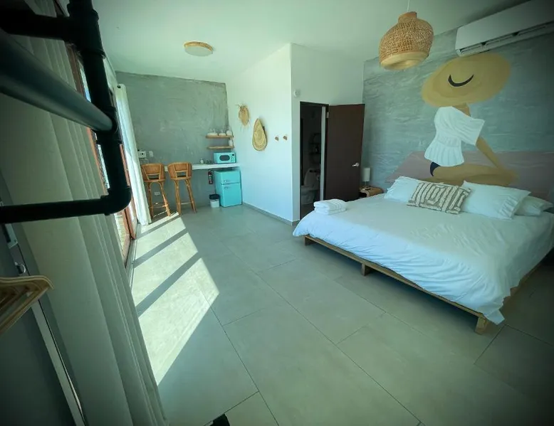 Beachfront Location: 1 Corcega Beachfront Suites in Rincón offers direct beachfront access and stunning sea views. Guests enjoy a beachfront location with a view, highly rated for its scenic setting. Comfortable Accommodations: The guest house features family rooms with air-conditioning, kitchenettes, private bathrooms, and free WiFi. Each room includes a tea and coffee maker, refrigerator, microwave, and TV, ensuring a comfortable stay. Convenient Facilities: Guests benefit from free on-site private parking, laundry service, and an outdoor dining area. Additional amenities include balconies, outdoor furniture, and ground-floor units, enhancing the beachfront experience. Nearby Attractions: Los Almendros Beach is a 19-minute walk away, while Porta Coeli Religious Art Museum lies 26 mi from the property. Eugenio Maria de Hostos Airport is 9.9 mi distant, providing easy access for travelers. The suite features 1 bedroom and 1 bathroom with a shower and free toiletries. The kitchenette is equipped with a refrigerator and a microwave. This suite has air conditioning, a tea and coffee maker and a flat-screen TV. The unit offers 1 bed.