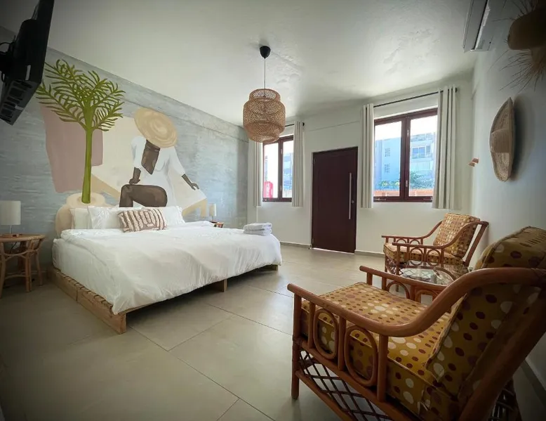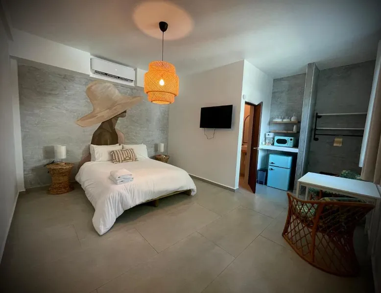 Beachfront Location: 1 Corcega Beachfront Suites in Rincón offers direct beachfront access and stunning sea views. Guests enjoy a beachfront location with a view, highly rated for its scenic setting. Comfortable Accommodations: The guest house features family rooms with air-conditioning, kitchenettes, private bathrooms, and free WiFi. Each room includes a tea and coffee maker, refrigerator, microwave, and TV, ensuring a comfortable stay. Convenient Facilities: Guests benefit from free on-site private parking, laundry service, and an outdoor dining area. Additional amenities include balconies, outdoor furniture, and ground-floor units, enhancing the beachfront experience. Nearby Attractions: Los Almendros Beach is a 19-minute walk away, while Porta Coeli Religious Art Museum lies 26 mi from the property. Eugenio Maria de Hostos Airport is 9.9 mi distant, providing easy access for travelers. The double room's kitchenette, which has a refrigerator and a microwave, is available for cooking and storing food. The spacious double room offers air conditioning, a tea and coffee maker, a balcony with sea views as well as a private bathroom boasting a shower. The unit has 1 bed.