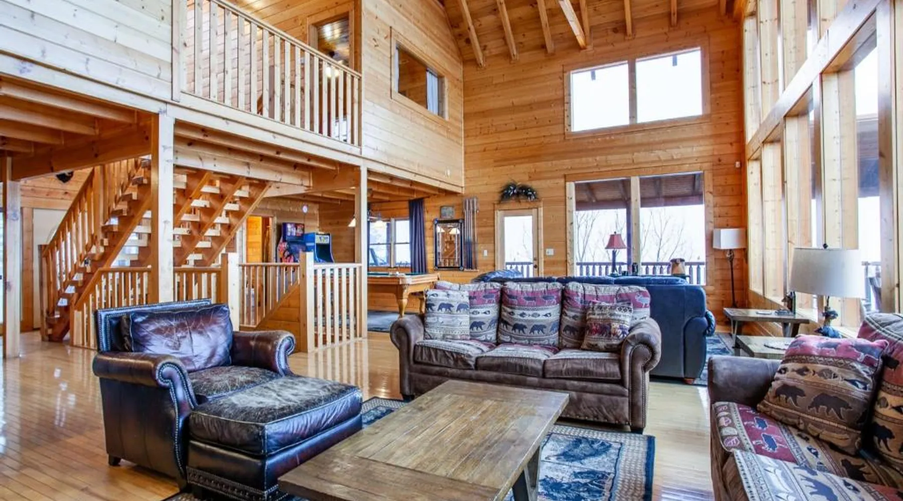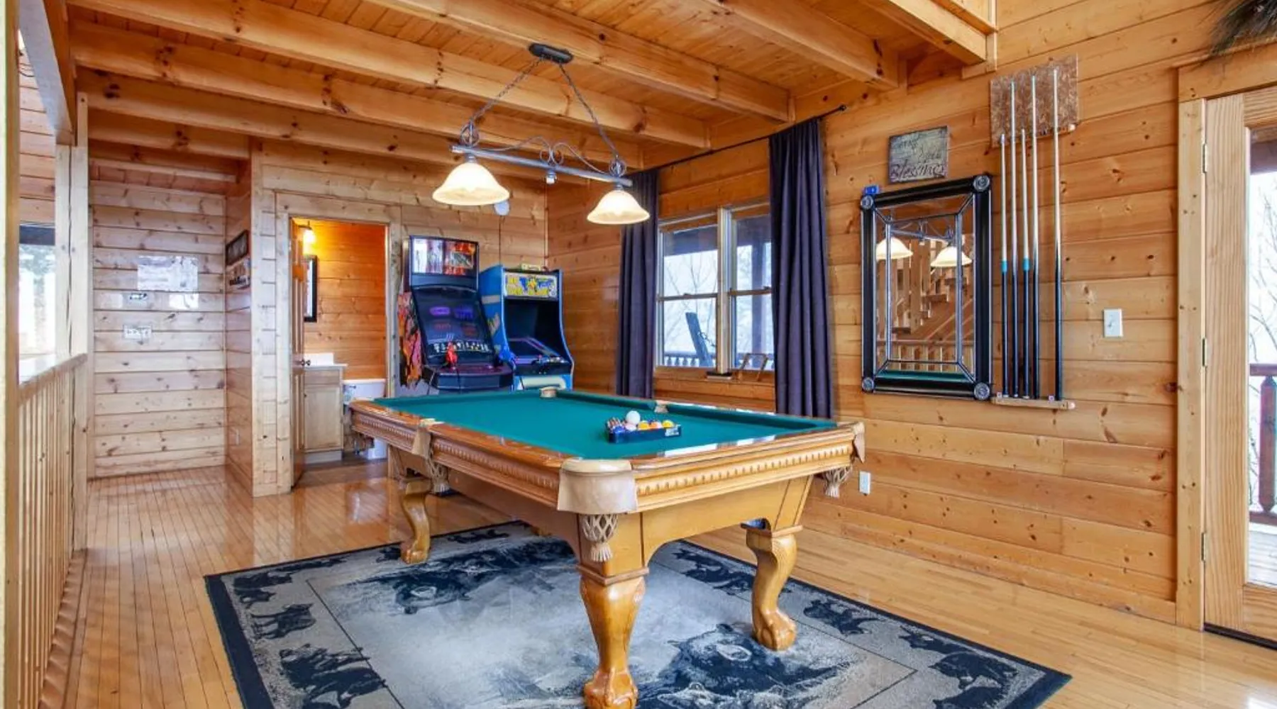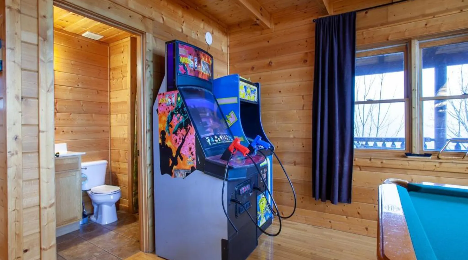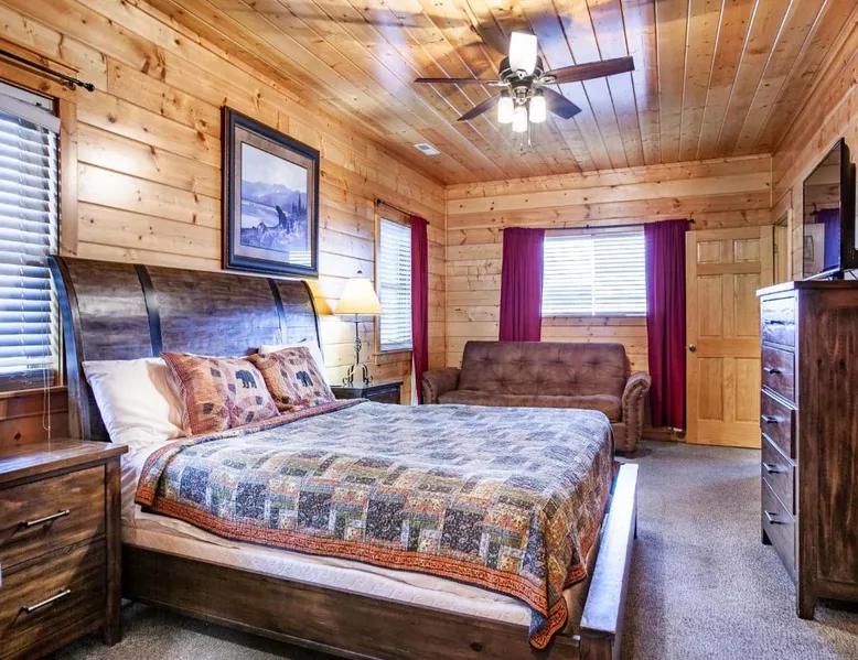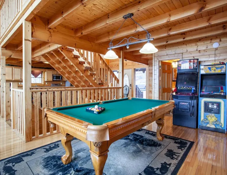 Spacious Accommodations: Copper Top in Sevierville offers a spacious holiday home with four bedrooms and five bathrooms. The property features a private entrance and a fully equipped kitchen with modern appliances. Modern Amenities: Guests enjoy free WiFi, air-conditioning, and a hot tub. The home includes a games room, balcony, washing machine, and a work desk. Additional amenities include a fireplace, barbecue, and a dining area. Convenient Location: Located 29 mi from McGhee Tyson Airport, the property is near attractions such as The Grand Majestic Theater (12 mi) and Dollywood (14 mi). Free on-site private parking is available. This holiday home's standout features are the hot tub and fireplace. Boasting a private entrance, this spacious holiday home also comes with 4 separate bedrooms and 5 bathrooms with a bath and a shower. Guests will find a stovetop, a refrigerator, a dishwasher and kitchenware in the well-equipped kitchen. The holiday home also includes a barbecue. This air-conditioned holiday home includes a dining area, a TV with cable channels a washing machine and a balcony. The unit has 8 beds.