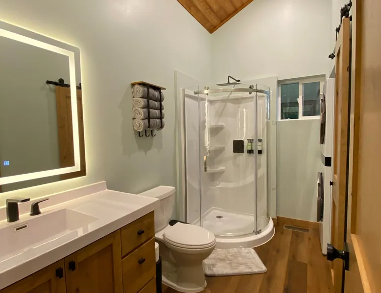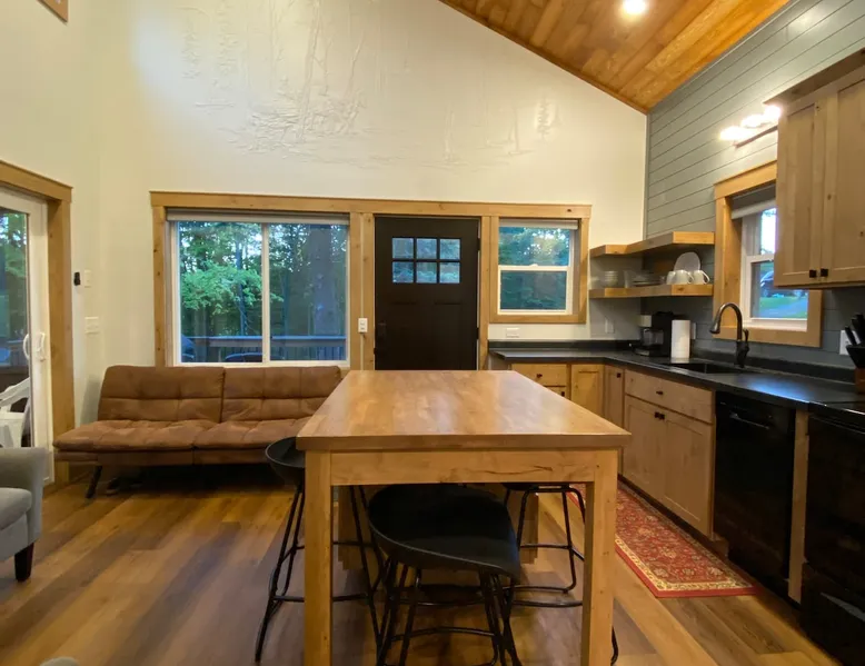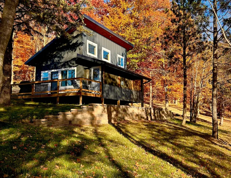 A beautiful fully furnished 2 bedroom modern cabin nestled in the Smoky Hills of Minnesota that has all the amenities & is welcoming you! There is a main floor bedroom with small closet for your use. Also a loft bedroom with a queen bed. Bathroom has a shower and a full sized washer and dryer for your needs. The cabin is built overlooking a small lake with excellent views. There is a covered screened in porch and an open deck with a barbecue grill. Come enjoy this property as much as we do. The space Has this cozy cabin with room to roam outdoors. There is a walking trail that goes through the property in the woods and along the lake. Also there is kayaks to use in season. Gorgeous views all year around the property. Fire pit with firewood also present. Other things to note Lake does not have a boat access.