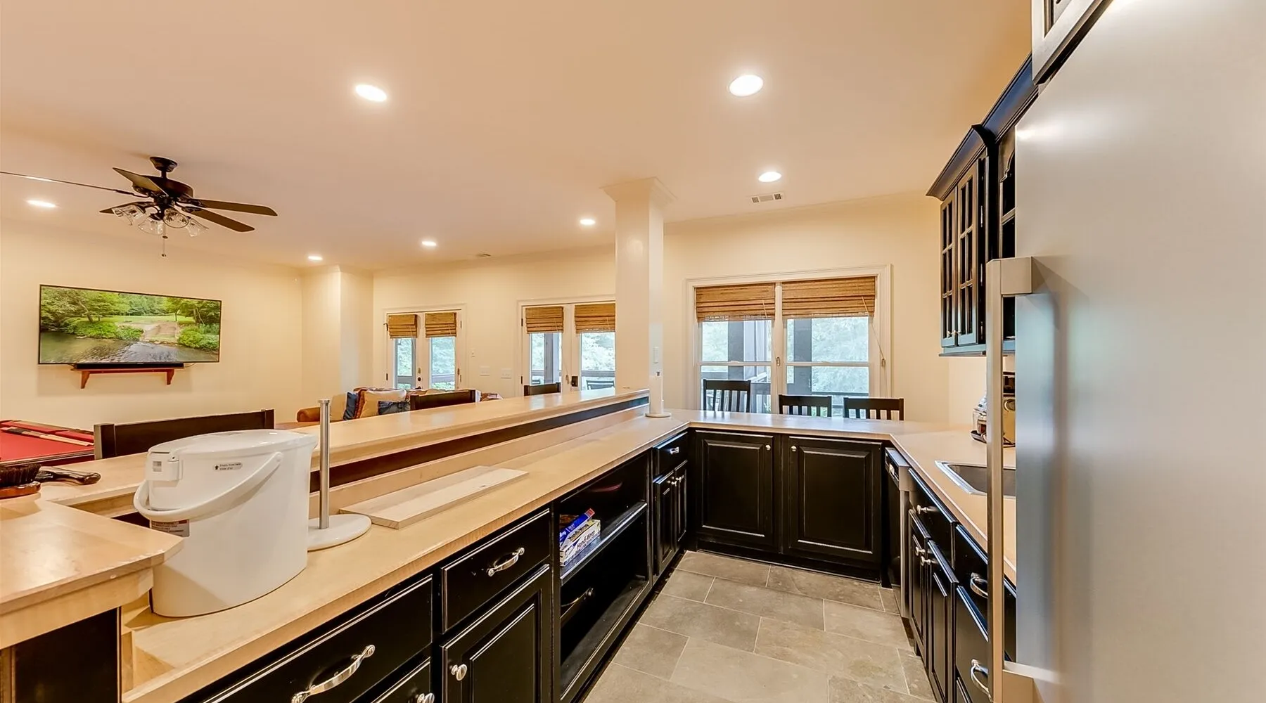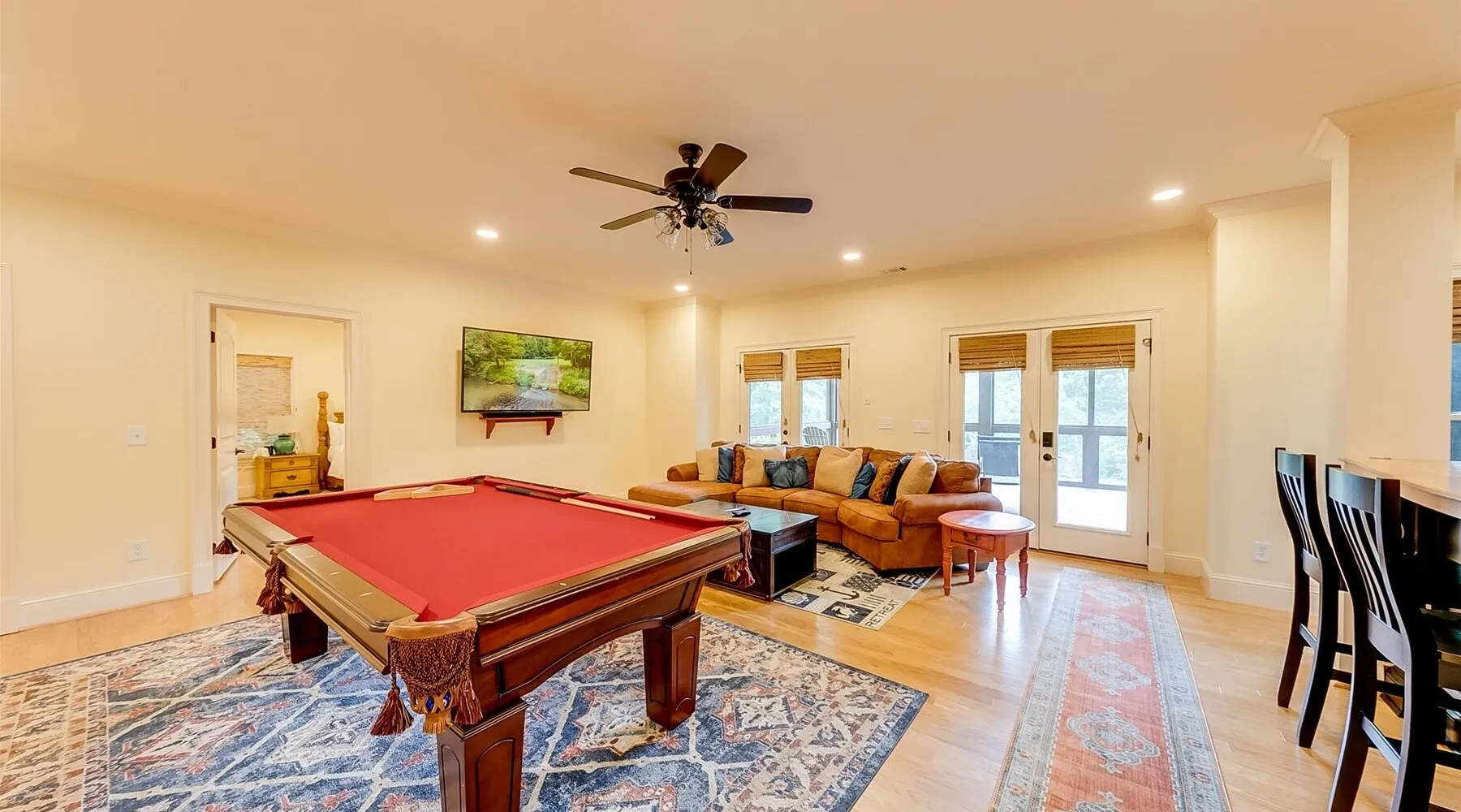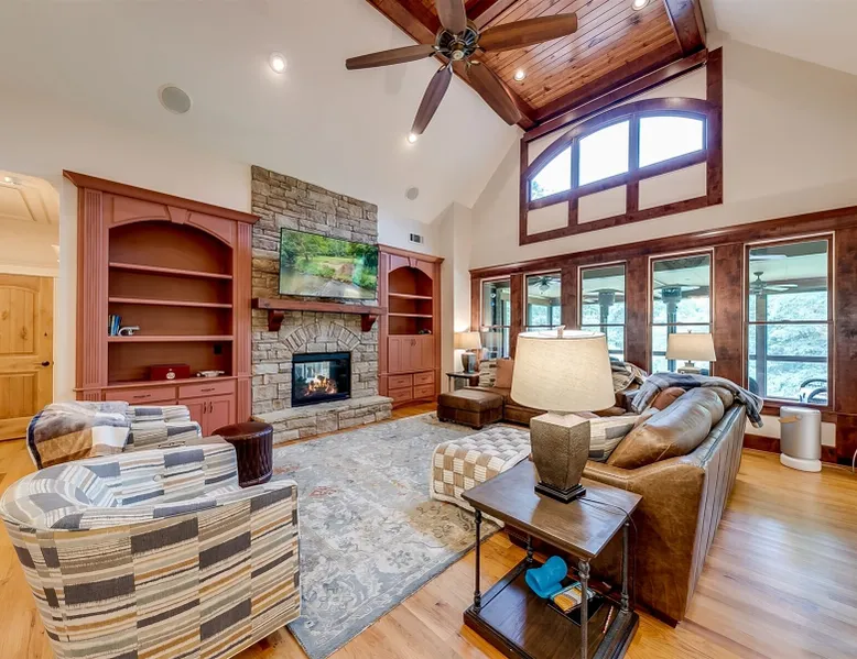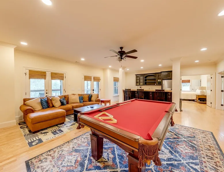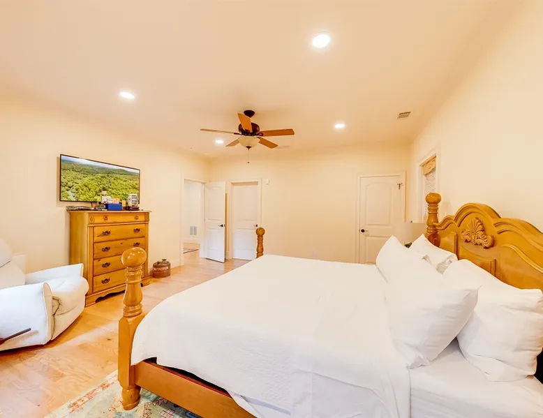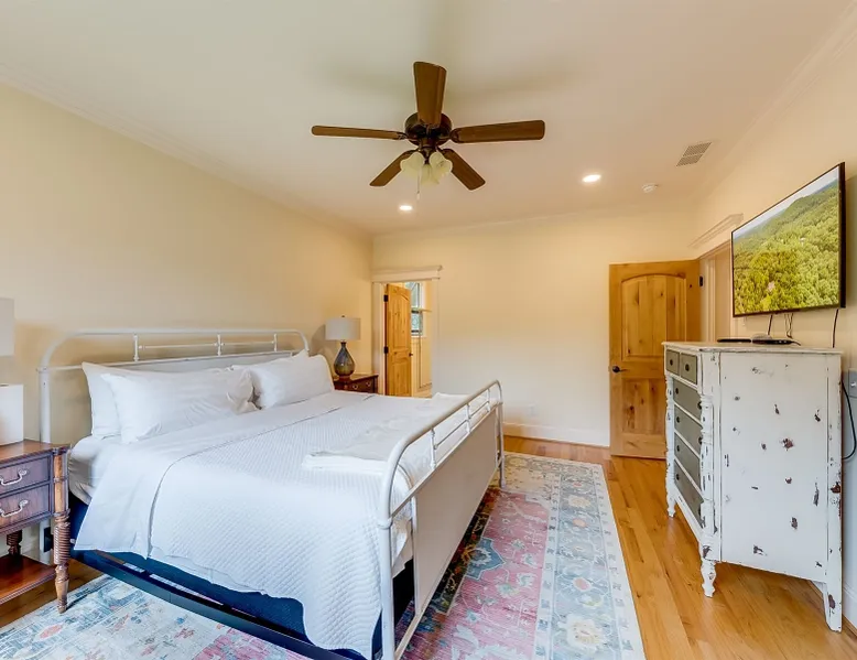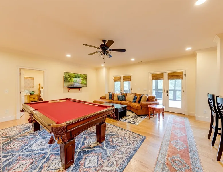 22 min (16.6 miles) from Helen This stunning 4 bedroom property with Soque River frontage is one of a kind! Whether you want to relax on the comfortable wicker furniture on the large porch and enjoy the view of the river, or walk down to the stone steps leading to the river's edge. Fishermen will love this property! Opportunities to view plenty of N.E. Georgia wildlife and let kids play safely at the edge of the river (parental supervision, water shoes & life jackets a must!) Enjoy the outdoor firepit next to the river, cook some smores or do some star gazing at night! The interior of this beautiful home is equally stunning! From the large fully equipped kitchen, with lots of small appliances and amenities to the spacious, comfortable living room with a beautiful rock fireplace with gas logs, guests will be booking their next stay before they leave! For cool evenings the spacious porch has free standing heaters for guests to use. This home is on 2 levels and the basement level has plenty of room for guests to spread out with 2 king bedrooms, a bunk room with 2 full beds and a living area with a pool table & small kitchen. There is another delightful deck off of the living area with views of the river, rocking chairs to relax and a heater for cool evenings. Soque River Sanctuary is a place to make lasting memories with friends & family. Alpine Helen is only 16 miles away where there is fun for all the family, great restaurants, mini golf, funnel cake & ice-cream. Every season is special in Helen! Come for Oktoberfest and enjoy German food, beer & music or plan a Christmas trip for fun shopping & lots of Christmas lights! Whatever the time of year Helen is always fun, whether it's summer floating down the "Hooch" on a tube or a winter wonderland in the quaint Alpine village, there is always lots to do & more to come back for!