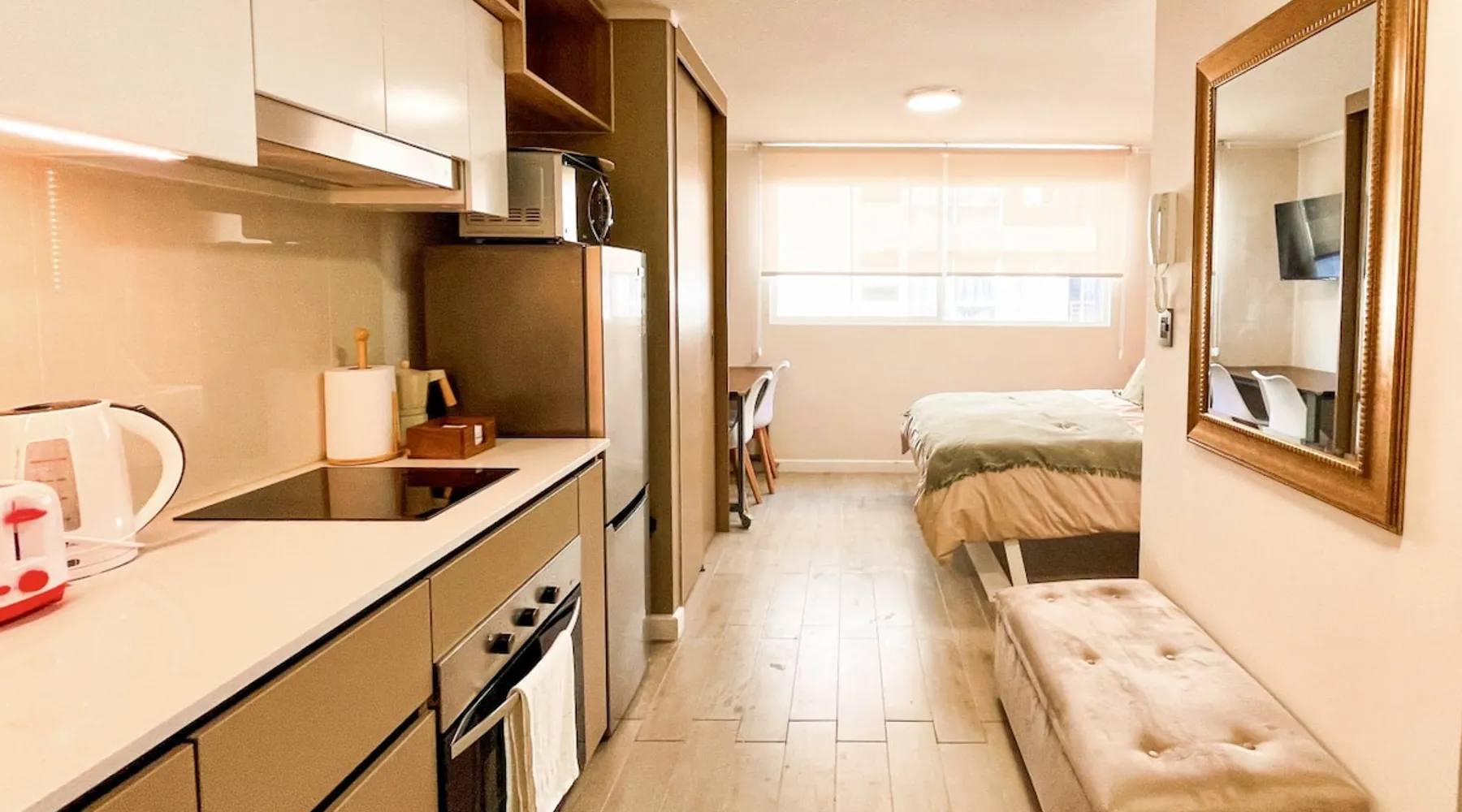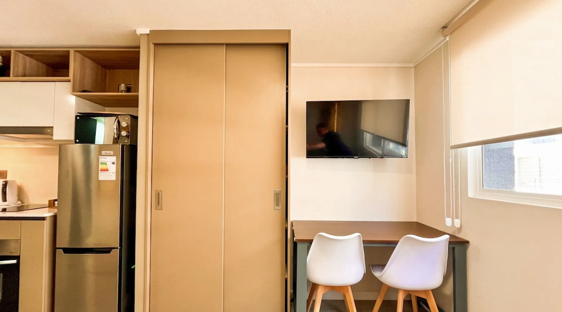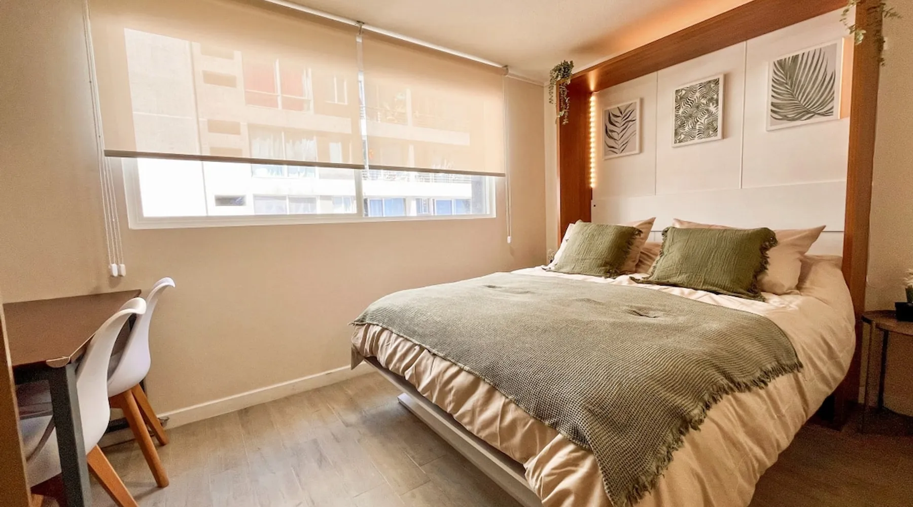 🏙️ A modern, fully equipped, and cozy studio apartment, perfectly suited for business travelers, couples, and digital nomads! The space 🟢 1 Double Bed (includes sheets, blanket, duvet) 🟢 Fully Equipped Bathroom (towels included) 🟢 Full Kitchen 🟢 1 desk/workstation with a Smart TV with HD Antenna (Local Channels) 🟢 High-Speed WiFi (>600 Mbps) 🟢 1 Alexa virtual assistant connected to Spotify 🟢 In-Unit Washer/Dryer 🟢 Double-pane windows for sound and thermal insulation 🟢 Window rollers with screen and blackout blinds 🟢 1 portable fan-heater (for summer/winter) 🟢 Seasonal Mini-Pool on the terrace (available Nov–Mar, weather permitting) 🟢 BBQ and lounge area (available for an additional fee and subject to availability) Guest access 🔑 The property has a smart lock, allowing 24/7 access. Other things to note 🚫 No pets, parties, or events allowed. 🐾 Check our pet friendly alternatives on BUHO Property. 📝 Mandatory Online Registration Form ♻️We use eco-friendly, biodegradable cleaning products 🧡 We deeply respect our guests and community 🤗 Thank you for treating our space like your own! 📅 Book now and experience premium style and comfort!