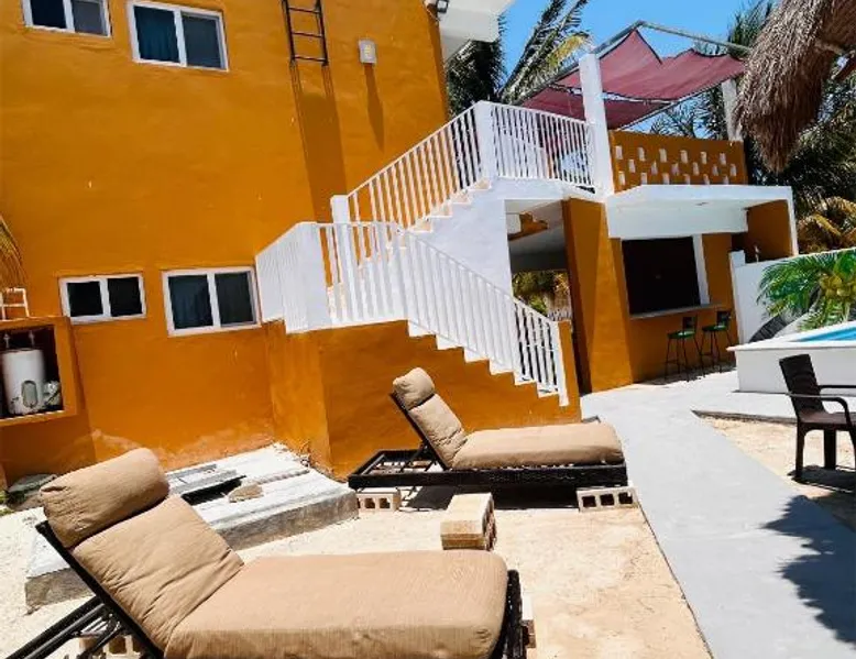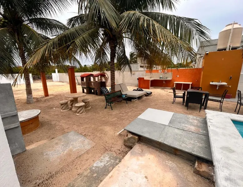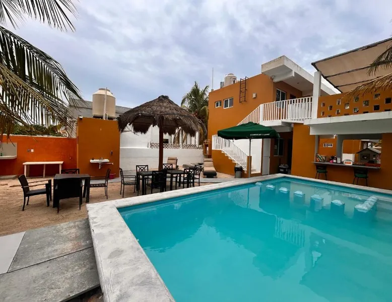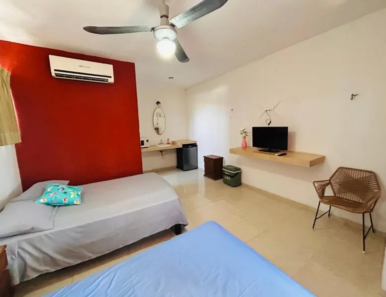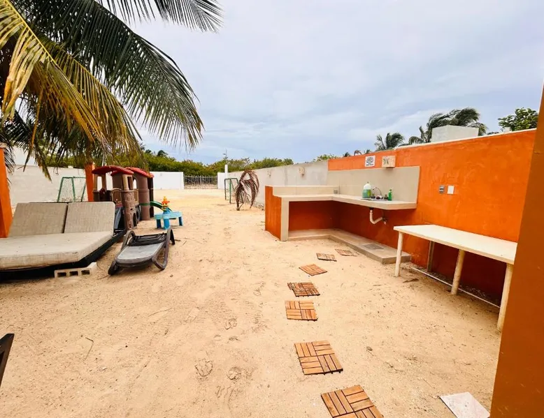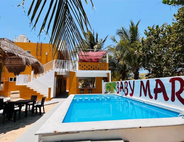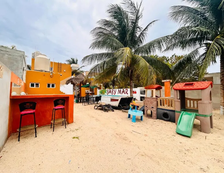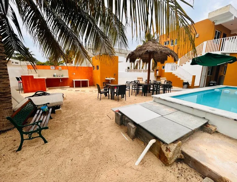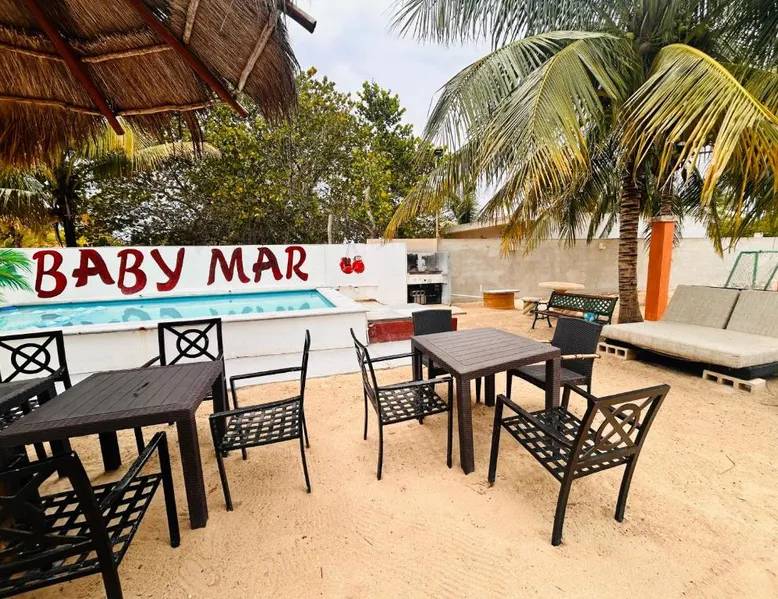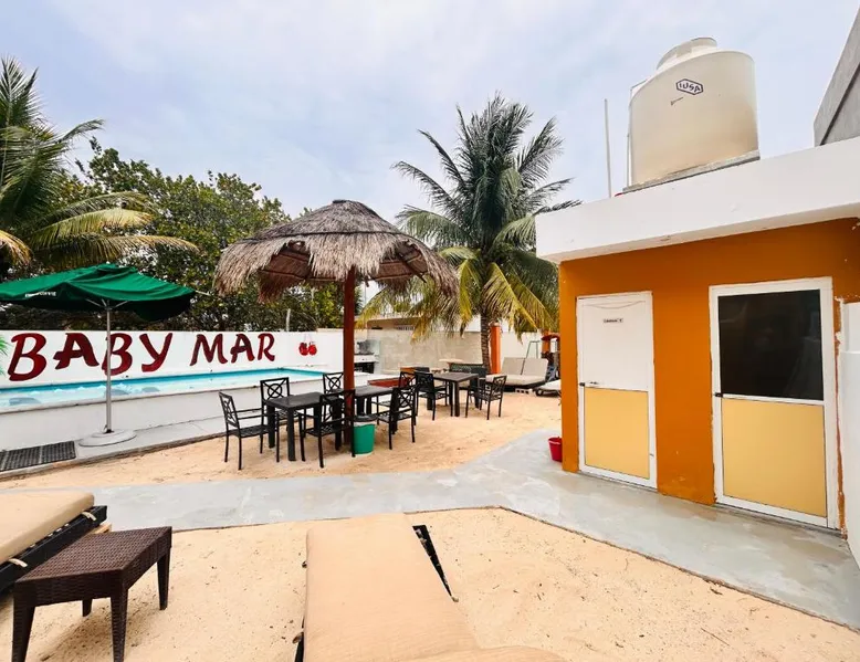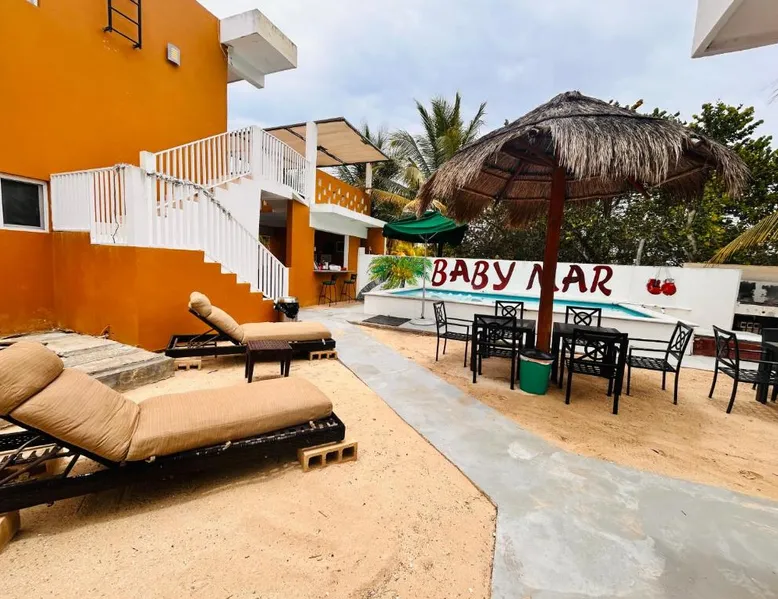 Comfortable Accommodations: Babymar departamentos a 2 cuadras de la playa in Chuburná offers a spacious apartment with four bedrooms and six bathrooms. The property features air-conditioning, a terrace, balcony, and a private pool. Outdoor Amenities: Guests can enjoy a garden, terrace, open-air bath, and a year-round outdoor swimming pool. Free WiFi is available throughout the apartment. Convenient Facilities: The apartment includes a paid airport shuttle service, public bath, outdoor seating area, picnic area, full-day security, and bicycle parking. Free on-site private parking is provided. Nearby Attractions: Chelem Beach is a 12-minute walk away. Other points of interest include Mundo Maya Museum (25 mi), Merida Cathedral (30 mi), and Dzibilchaltun Archaeological Site (23 mi). Guests will have a special experience as the apartment offers a private pool. Featuring a terrace, this apartment also provides air conditioning and a flat-screen TV. The unit offers 8 beds.