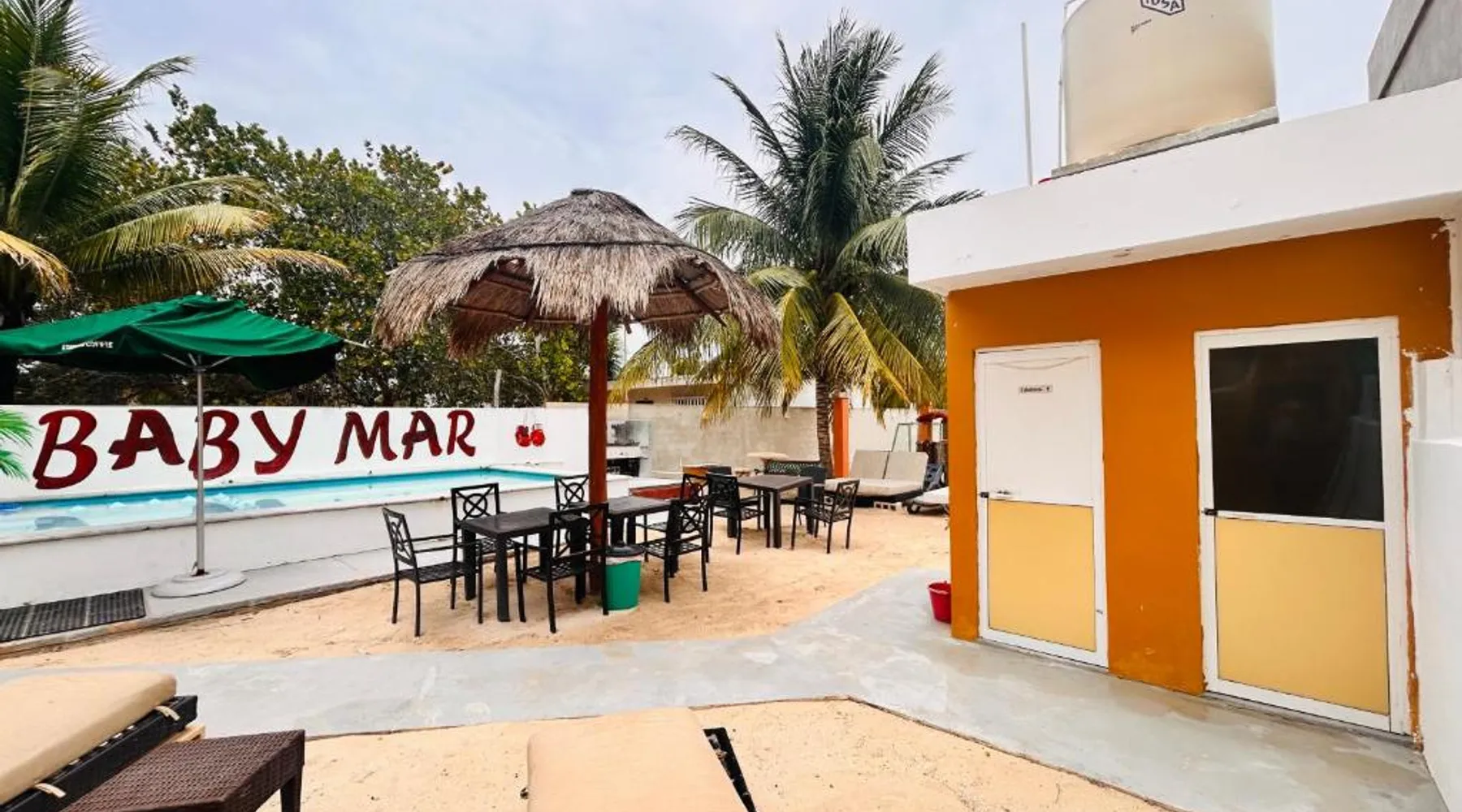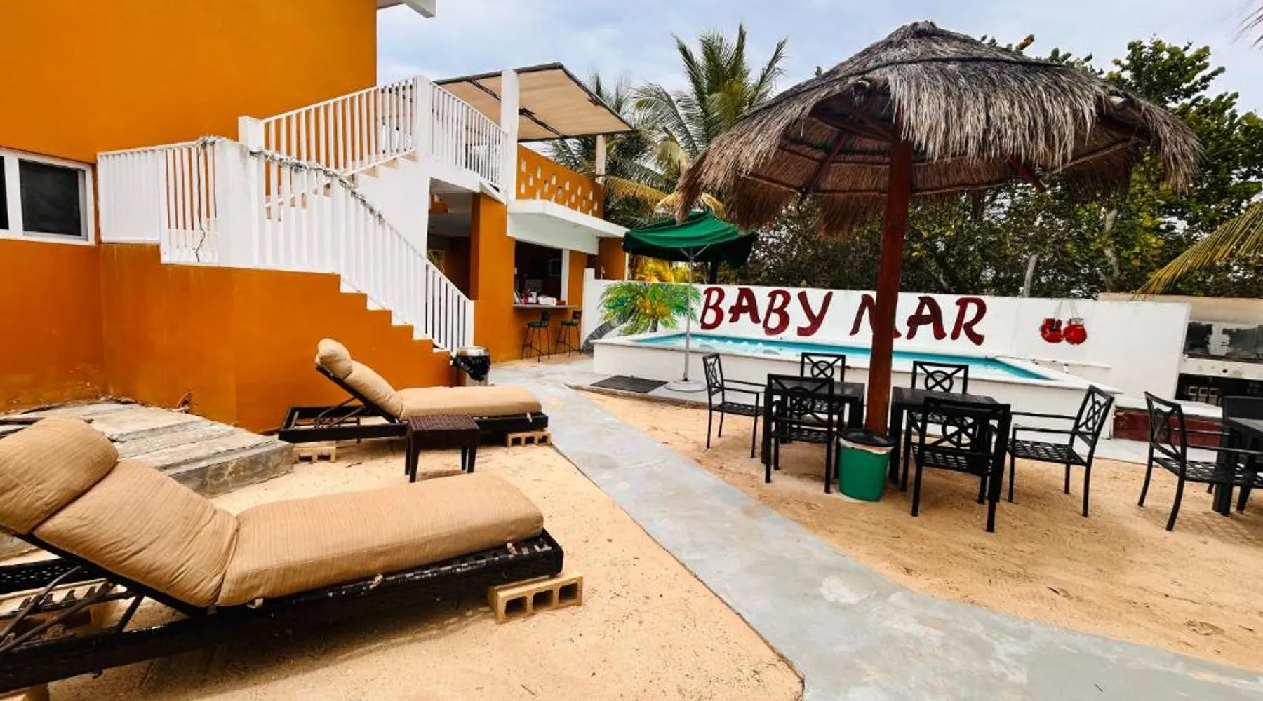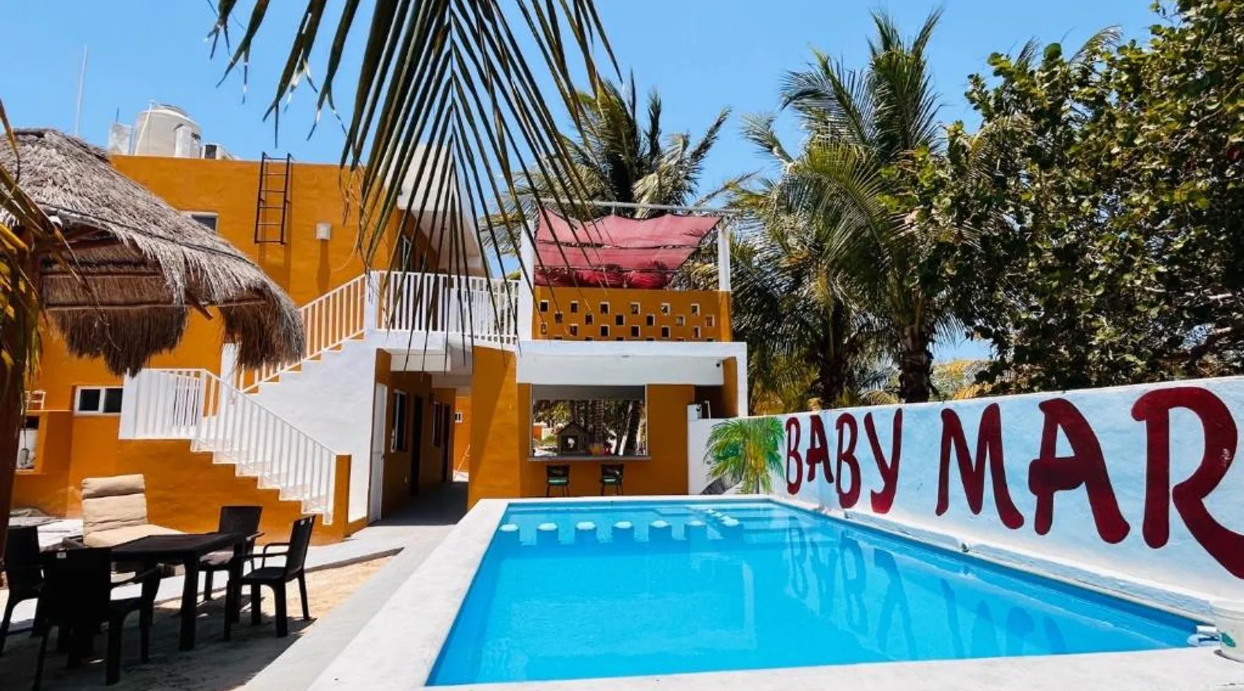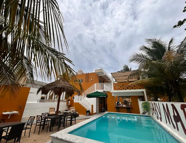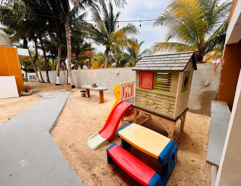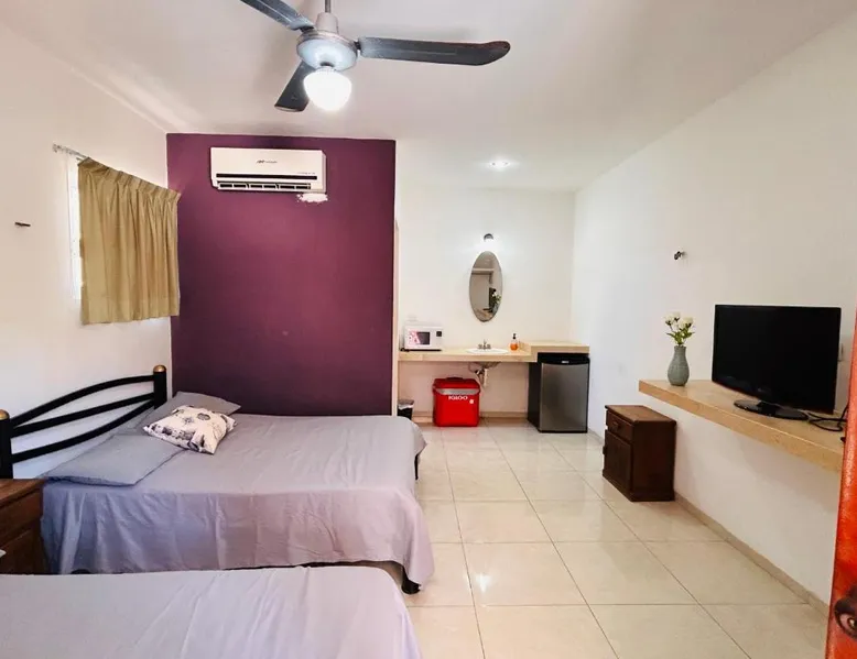 Comfortable Accommodations: Babymar departamentos a 2 cuadras de la playa in Chuburná offers a spacious apartment with four bedrooms and six bathrooms. The property features air-conditioning, a terrace, balcony, and a private pool. Outdoor Amenities: Guests can enjoy a garden, terrace, open-air bath, and a year-round outdoor swimming pool. Free WiFi is available throughout the apartment. Convenient Facilities: The apartment includes a paid airport shuttle service, public bath, outdoor seating area, picnic area, full-day security, and bicycle parking. Free on-site private parking is provided. Nearby Attractions: Chelem Beach is a 12-minute walk away. Other points of interest include Mundo Maya Museum (25 mi), Merida Cathedral (30 mi), and Dzibilchaltun Archaeological Site (23 mi). Guests will have a special experience as the apartment offers a private pool. Featuring a terrace, this apartment also provides air conditioning and a flat-screen TV. The unit offers 8 beds.