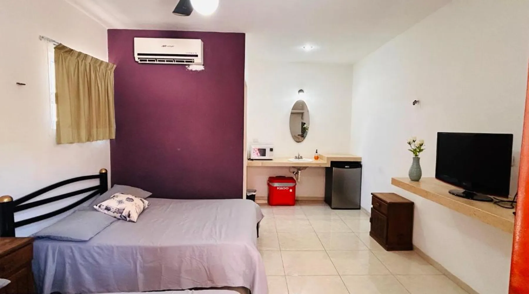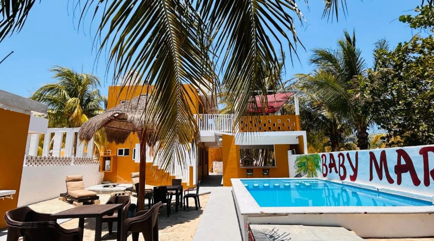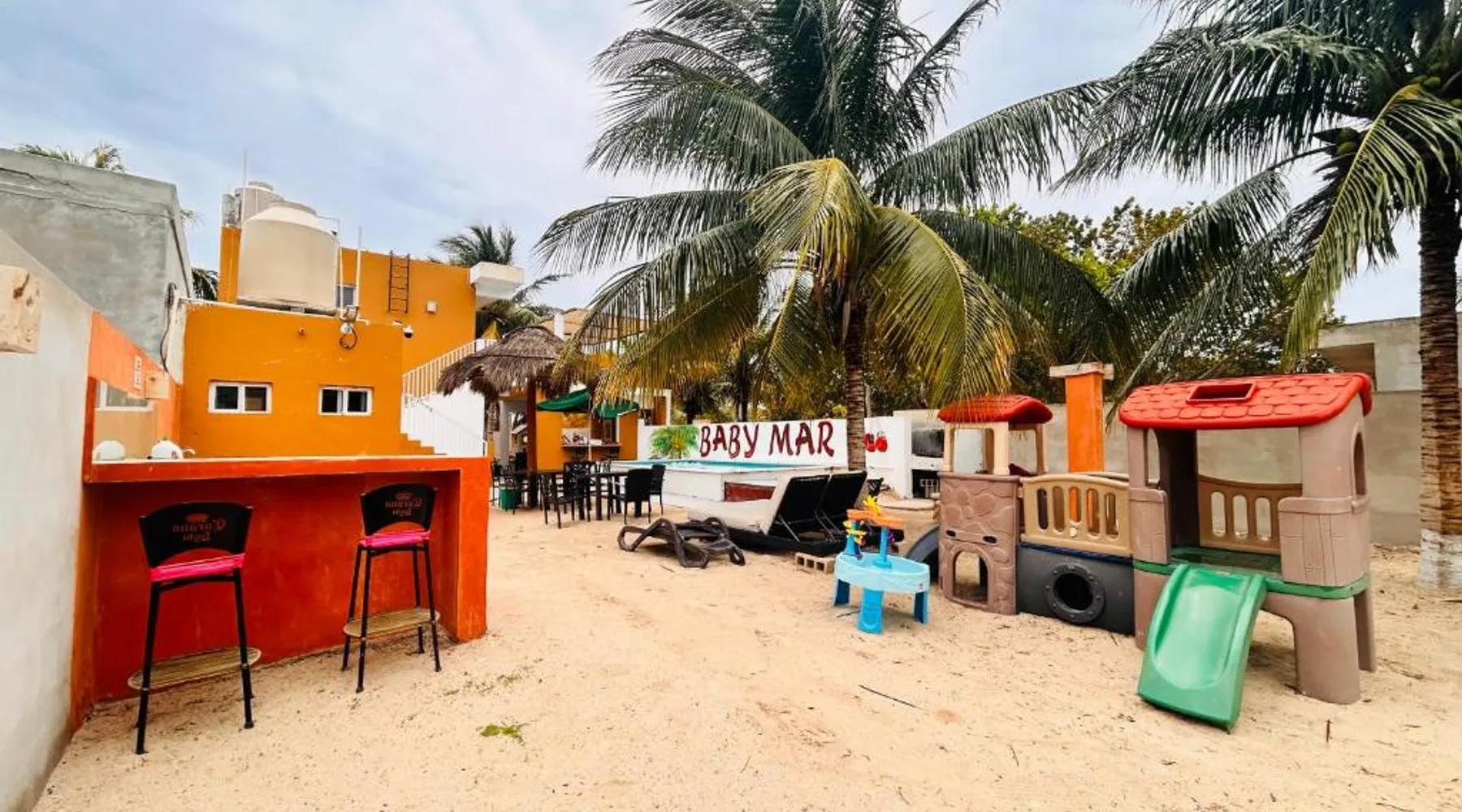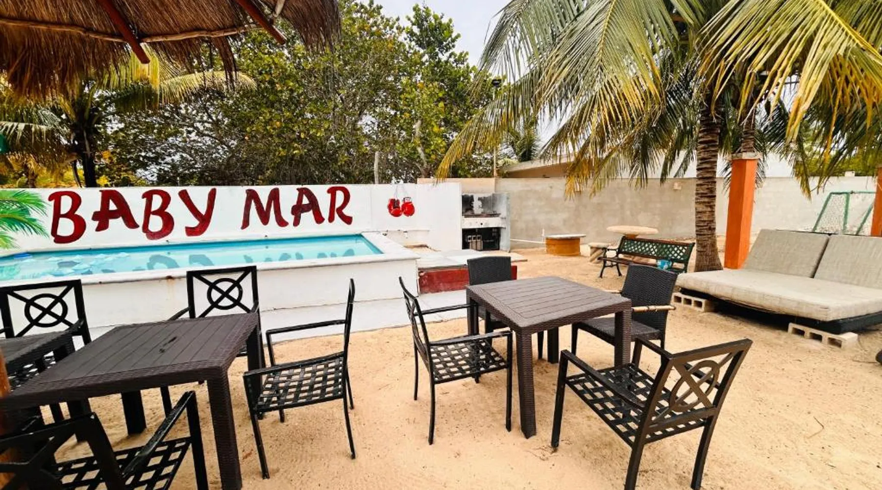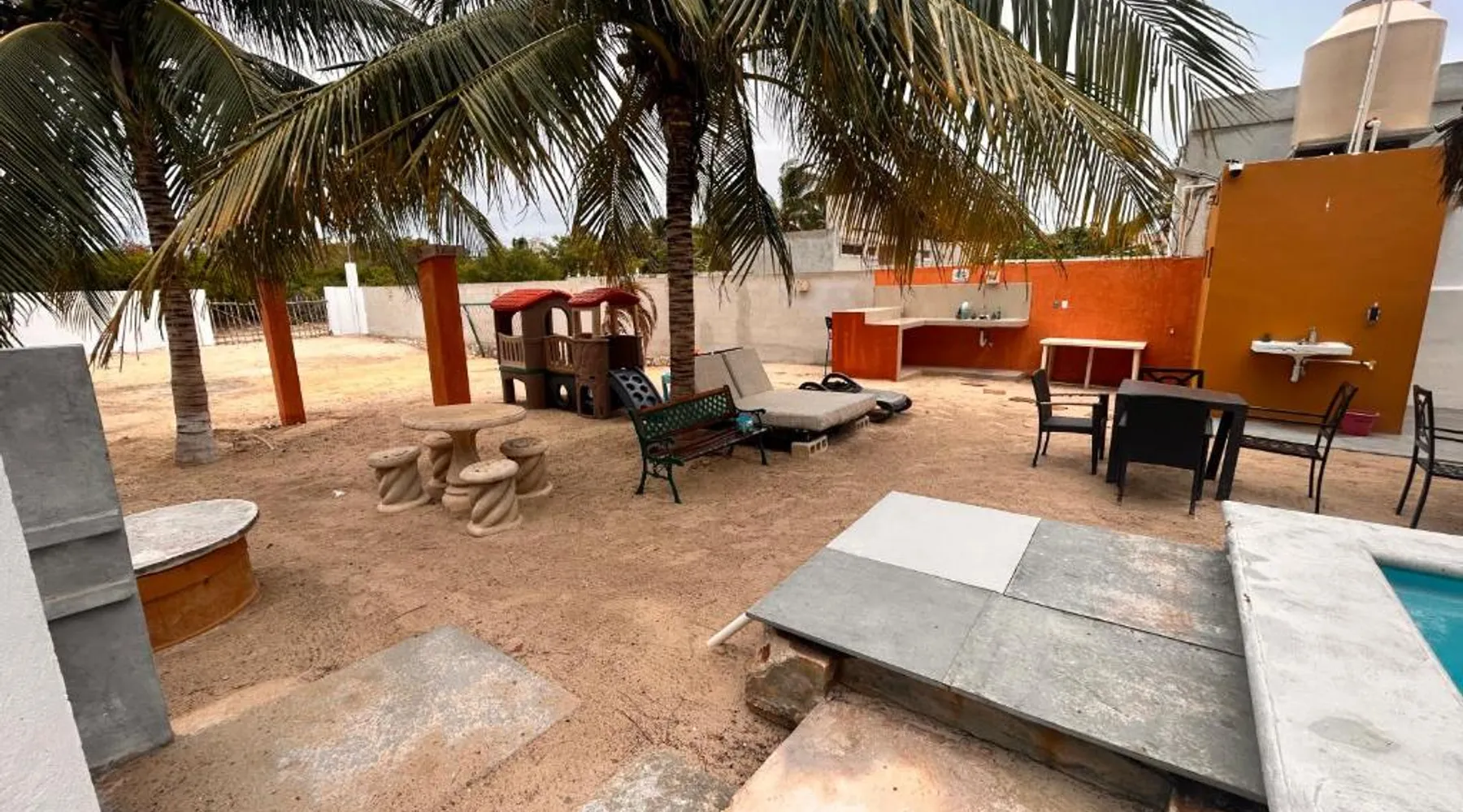 Comfortable Accommodations: Babymar departamentos a 2 cuadras de la playa in Chuburná offers a spacious apartment with four bedrooms and six bathrooms. The property features air-conditioning, a terrace, balcony, and a private pool. Outdoor Amenities: Guests can enjoy a garden, terrace, open-air bath, and a year-round outdoor swimming pool. Free WiFi is available throughout the apartment. Convenient Facilities: The apartment includes a paid airport shuttle service, public bath, outdoor seating area, picnic area, full-day security, and bicycle parking. Free on-site private parking is provided. Nearby Attractions: Chelem Beach is a 12-minute walk away. Other points of interest include Mundo Maya Museum (25 mi), Merida Cathedral (30 mi), and Dzibilchaltun Archaeological Site (23 mi). Guests will have a special experience as the apartment offers a private pool. Featuring a terrace, this apartment also provides air conditioning and a flat-screen TV. The unit offers 8 beds.