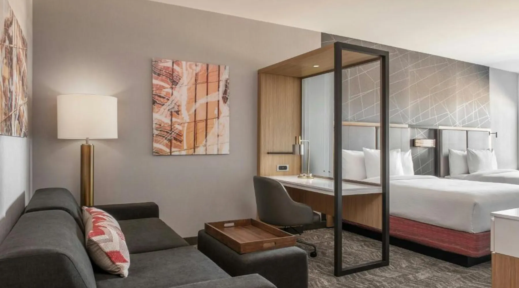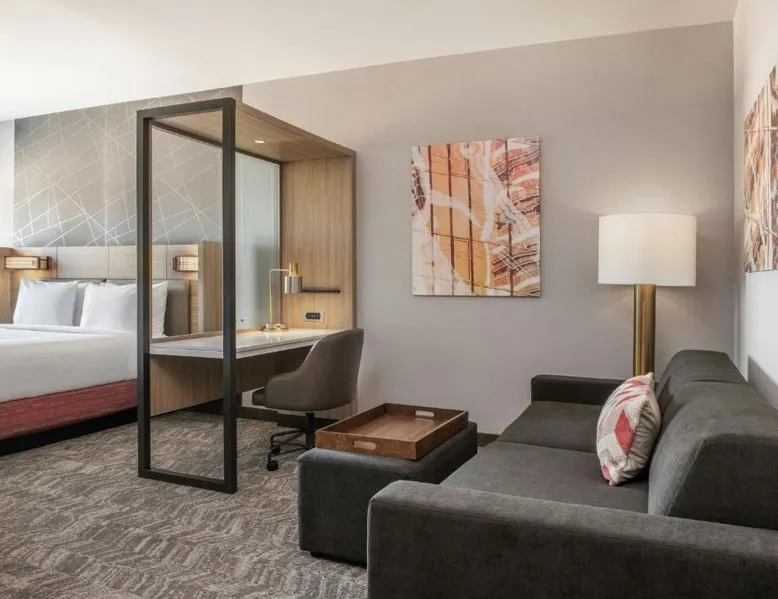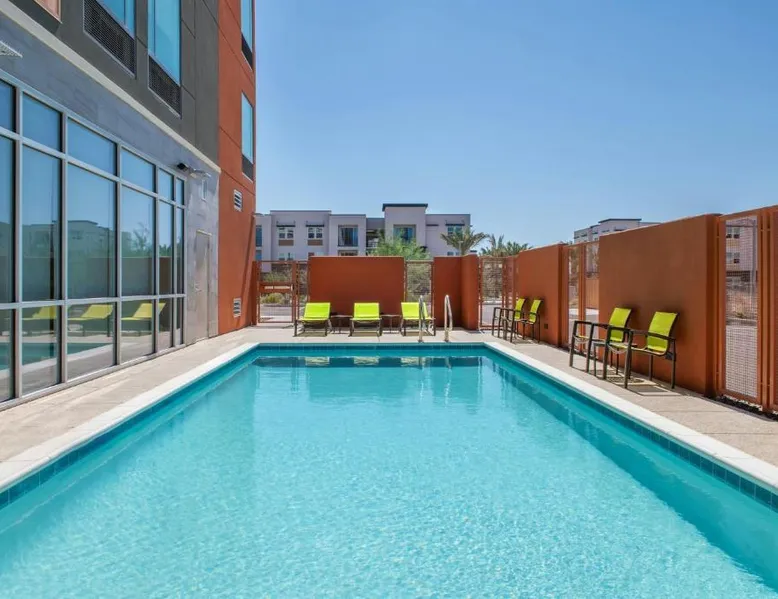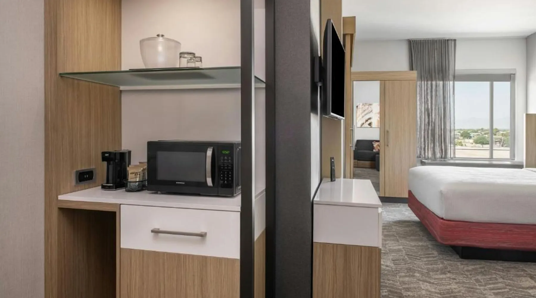 Comfortable Accommodations: SpringHill Suites by Marriott Phenix West/Avondale in Avondale offers air-conditioned rooms with private bathrooms, city views, and modern amenities. Each room includes a work desk, sofa bed, and free WiFi. Exceptional Facilities: Guests can enjoy a fitness center, year-round outdoor swimming pool, and outdoor fireplace. Additional facilities include a lounge, minimarket, and electric vehicle charging station. Delicious Breakfast: A continental buffet breakfast is served daily, featuring fresh pastries, pancakes, juice, cheese, and fruits. Prime Location: Located 16 mi from Phenix Sky Harbor International Airport, the hotel is near attractions such as State Farm Stadium (5 mi) and Ak-Chin Pavilion (3.1 mi). Guests appreciate the convenient location. Guests will have a special experience as the suite features a private pool. The suite provides air conditioning, soundproof walls, as well as a private bathroom featuring a bath and a hairdryer. The suite features carpeted floors, a seating area with a flat-screen TV, a tea and coffee maker, a wardrobe as well as city views.