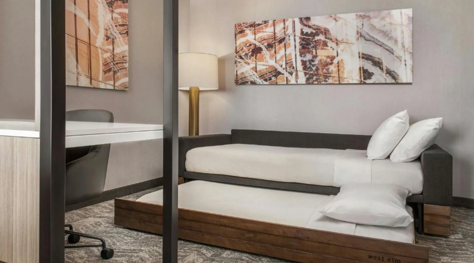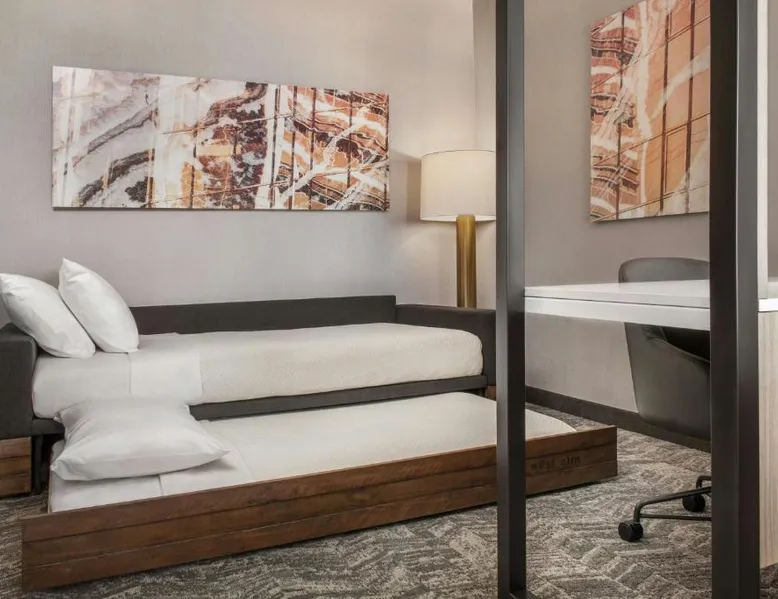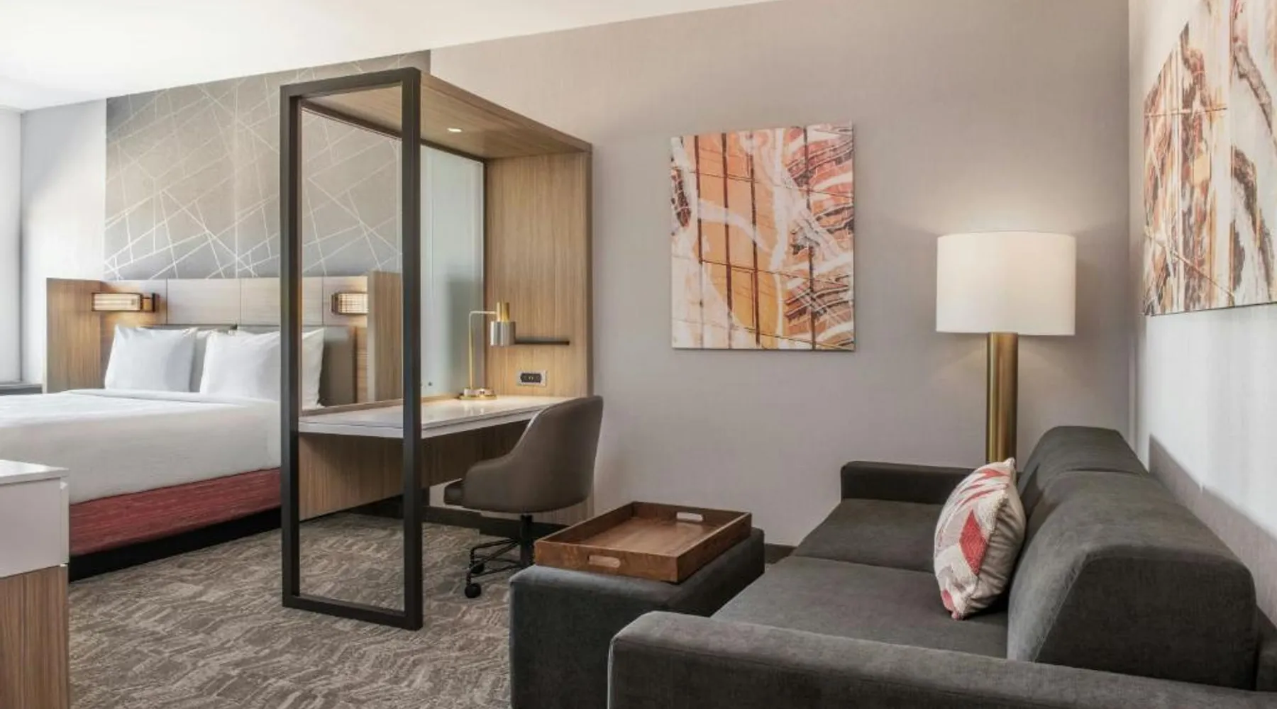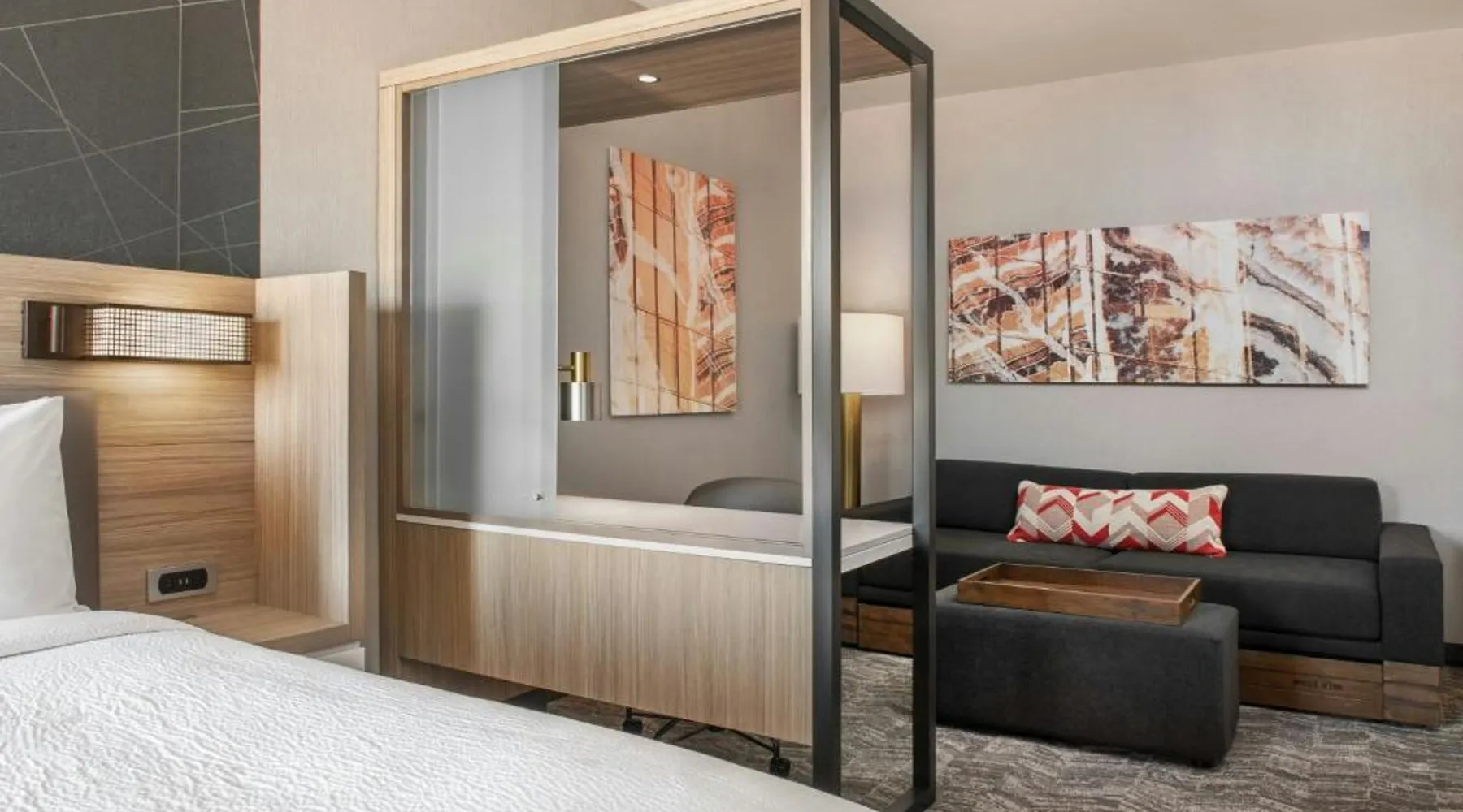 Comfortable Accommodations: SpringHill Suites by Marriott Phenix West/Avondale in Avondale offers air-conditioned rooms with private bathrooms, city views, and modern amenities. Each room includes a work desk, sofa bed, and free WiFi. Exceptional Facilities: Guests can enjoy a fitness center, year-round outdoor swimming pool, and outdoor fireplace. Additional facilities include a lounge, minimarket, and electric vehicle charging station. Delicious Breakfast: A continental buffet breakfast is served daily, featuring fresh pastries, pancakes, juice, cheese, and fruits. Prime Location: Located 16 mi from Phenix Sky Harbor International Airport, the hotel is near attractions such as State Farm Stadium (5 mi) and Ak-Chin Pavilion (3.1 mi). Guests appreciate the convenient location. Guests will have a special experience as the suite features a private pool. The suite provides air conditioning, soundproof walls, as well as a private bathroom featuring a bath and a hairdryer. The suite features carpeted floors, a seating area with a flat-screen TV, a tea and coffee maker, a wardrobe as well as city views.