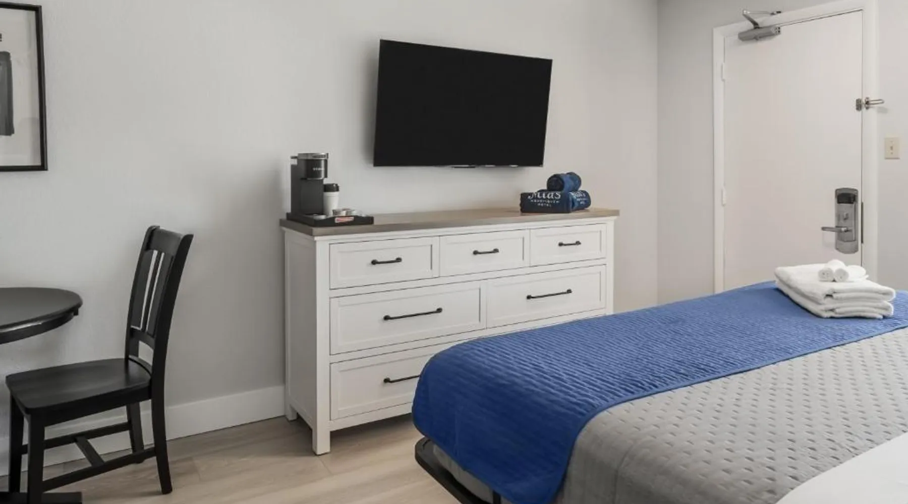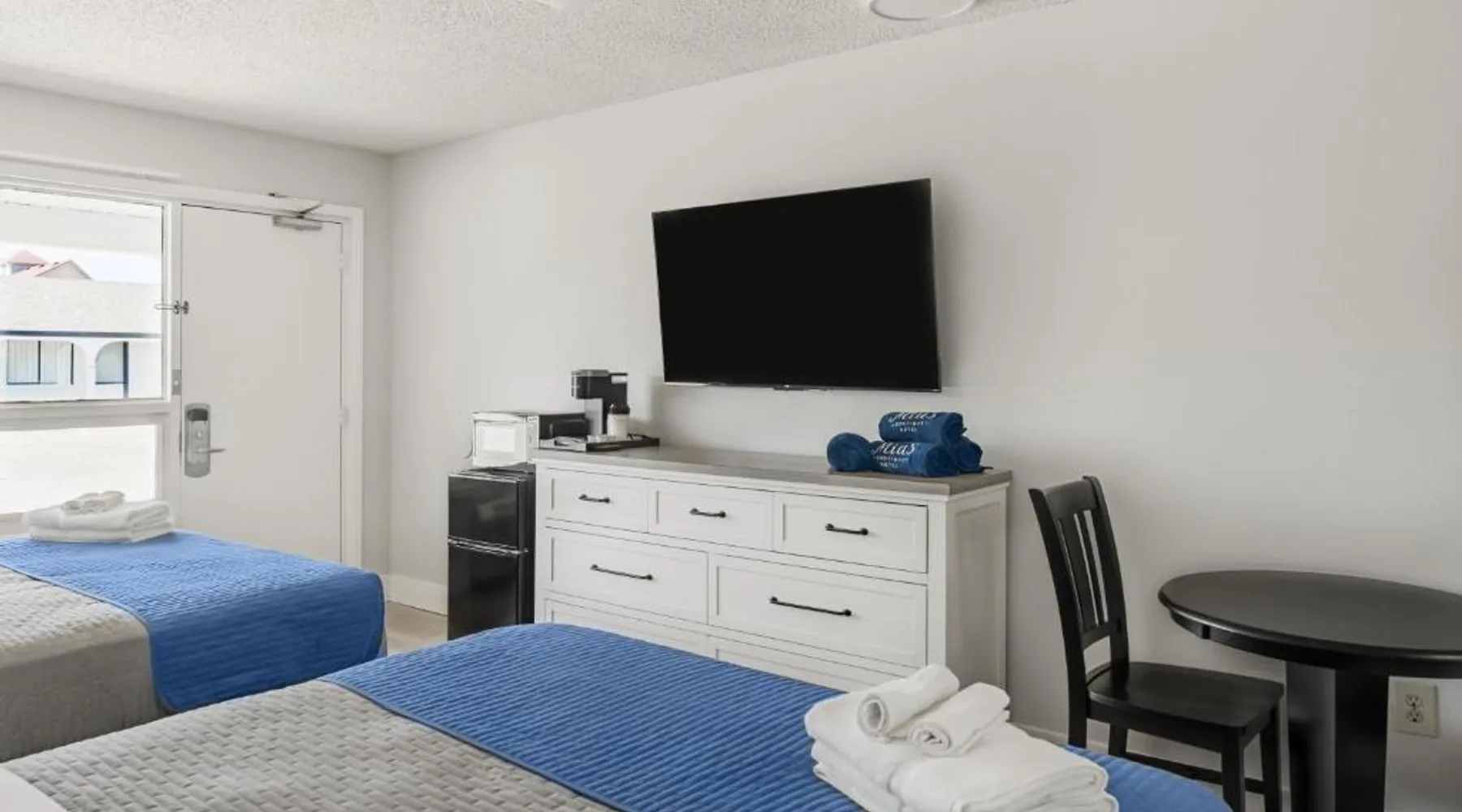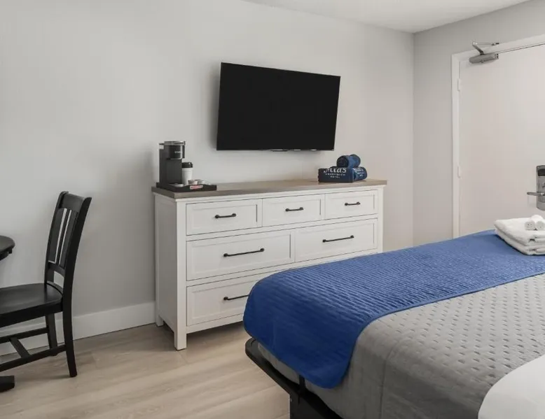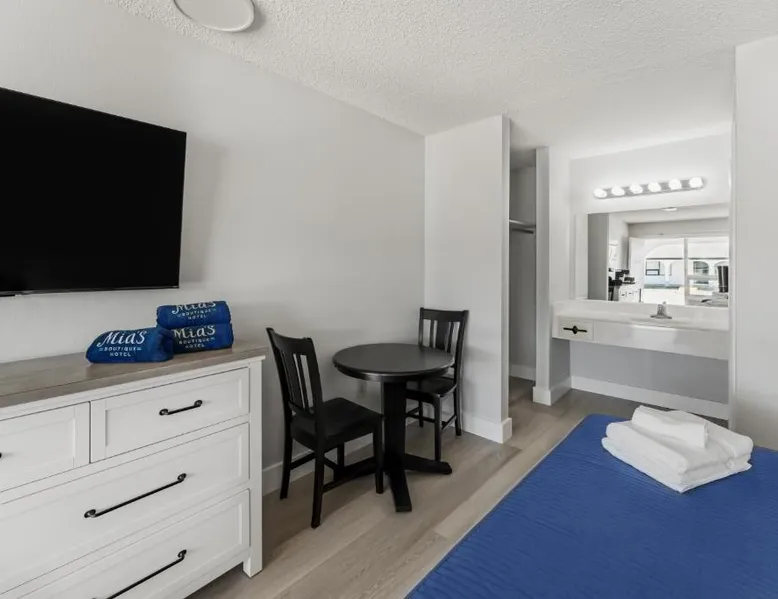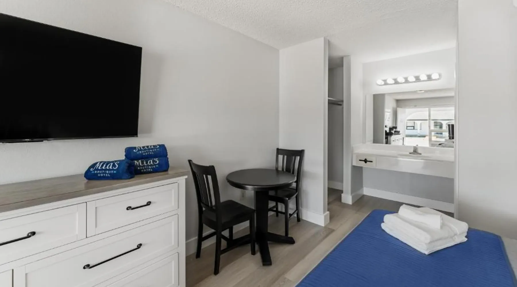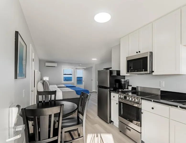 Elegant Accommodations: Mia's Boutique Hotel in Nags Head offers a 5-star experience with a terrace, seasonal outdoor swimming pool, and free WiFi. Guests enjoy sea views, air-conditioning, and private balconies. Comfortable Amenities: Each room features a kitchenette, private bathroom with walk-in shower, and modern amenities such as a coffee machine, dishwasher, and streaming services. Free on-site private parking is available. Prime Location: Located a few steps from Nags Head Beach, the hotel is 88 mi from Norfolk International Airport. Guests appreciate the convenient location, beach access, and room cleanliness. This apartment includes 1 living room, 1 separate bedroom and 1 bathroom with a walk-in shower and free toiletries. In the fully equipped kitchen, guests will find a stovetop, a refrigerator, kitchenware and a microwave. This apartment is air-conditioned and has a flat-screen TV with streaming services, a tea and coffee maker, a dining area and a wardrobe. The unit has 1 bed.