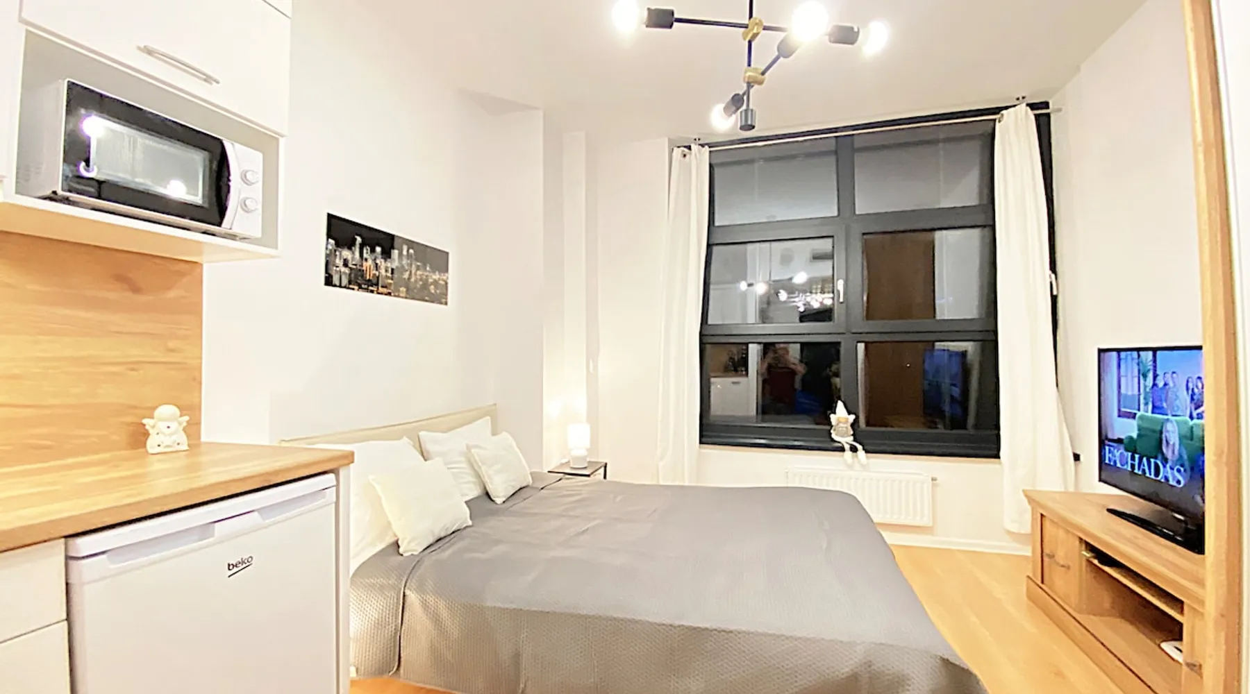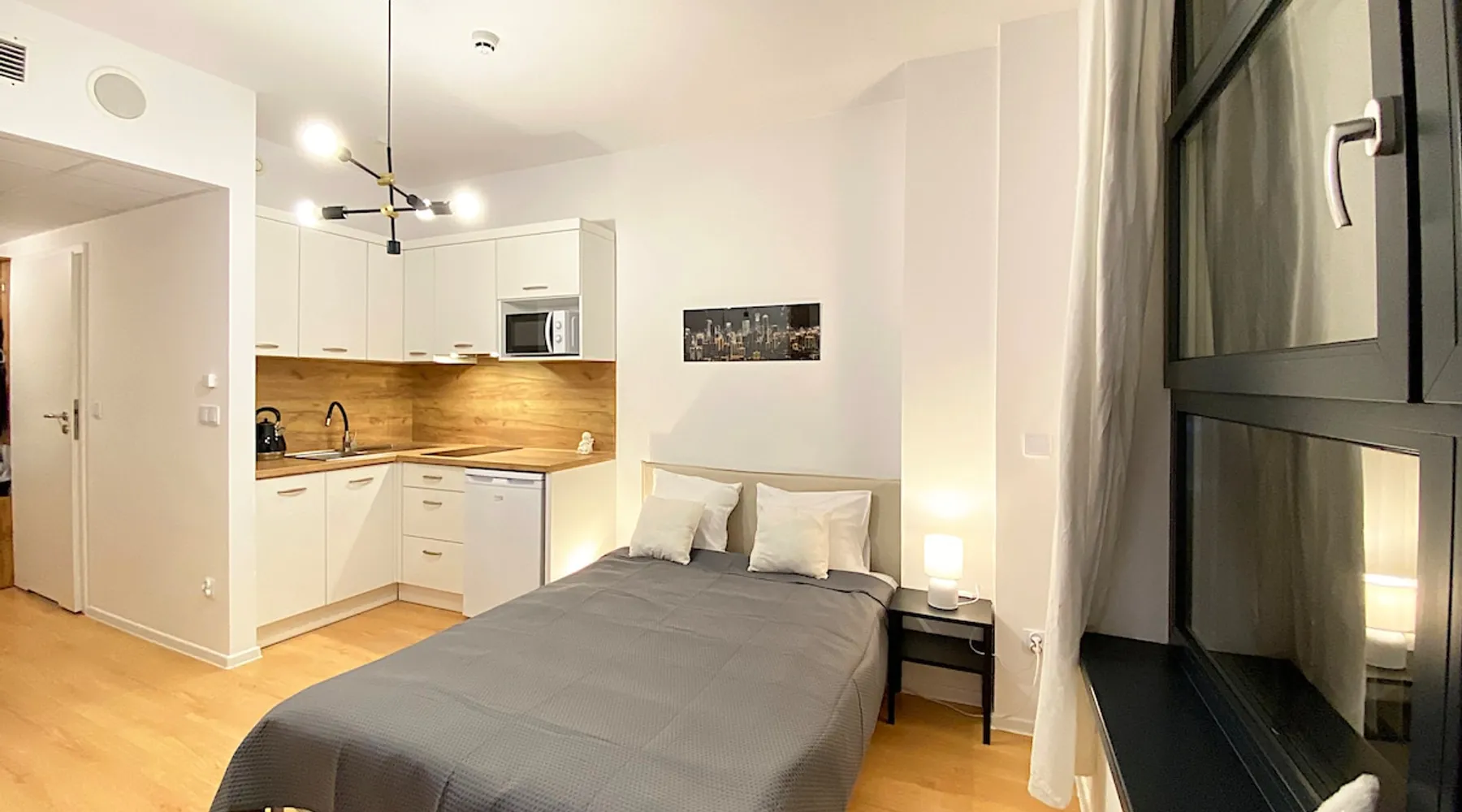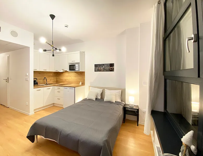 This unique place has its own style. The space Apartimento Hydral Tesori is a studio located in an apartment building in Wrocław's Business Park. Self check-in at any time with a code. Fully equipped kitchenette, dining area, living room, bathroom.