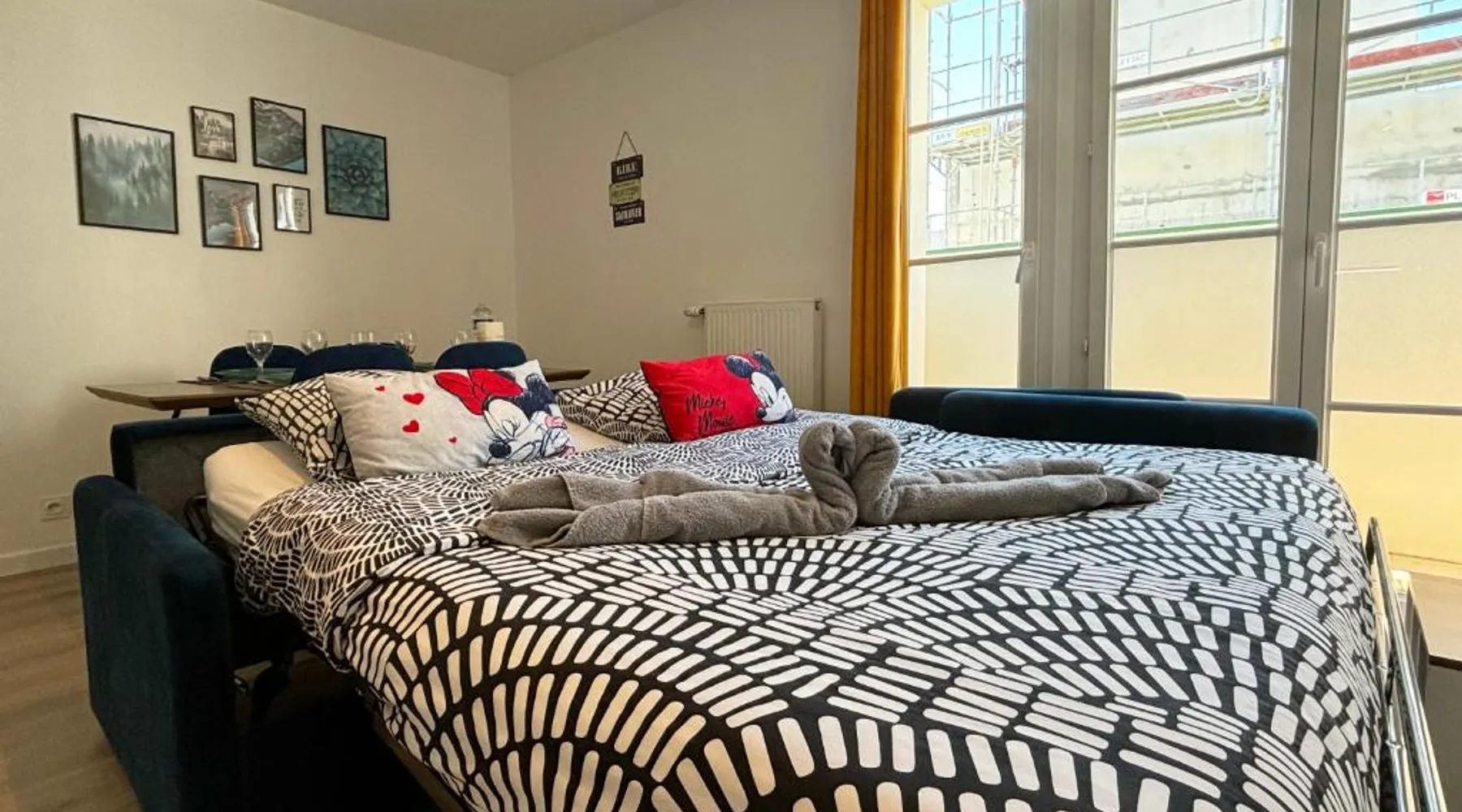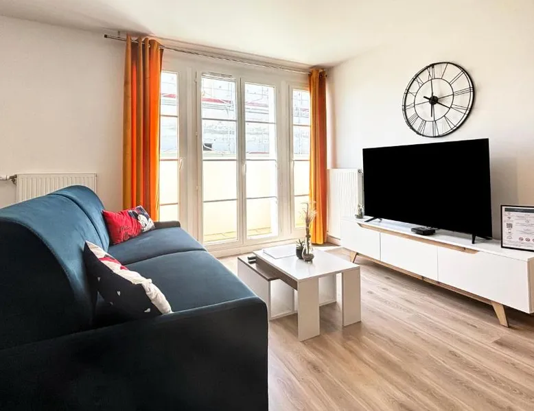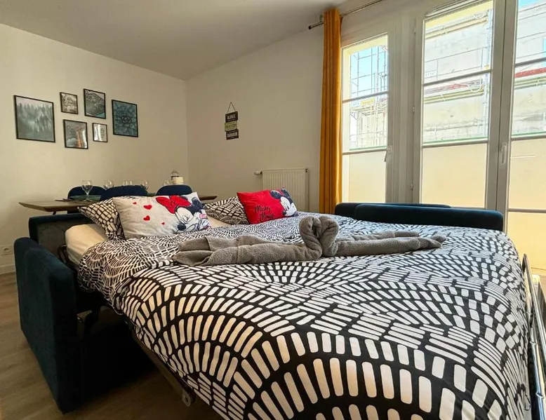Comfortable Living Space: Cartier Disney 7min Train 6min Paris parking in Serris offers a one-bedroom apartment with a living room. The property includes a washing machine, kitchen, bath, and free WiFi. Convenient Facilities: Guests benefit from free on-site private parking, a paid shuttle service, and a elevator. The apartment features a dining area, sofa bed, and a seating area. Prime Location: Located 17 mi from Paris Charles de Gaulle Airport, the apartment is 1.1 mi from Val d'Europe RER Station and 2.3 mi from Disneyland Paris. Nearby attractions include Noter Dame Cathedral and Pompidou Center. Activities and Surroundings: Guests can enjoy walking tours, rafting, and other activities in the surrounding area. The property is highly rated by guests for its excellent facilities and location. Featuring a private entrance, this apartment consists of 1 living room, 1 separate bedroom and 1 bathroom with a bath and a hairdryer. In the kitchen, guests will find a stovetop, a refrigerator, kitchenware and an oven. The apartment provides a washing machine, a tea and coffee maker, a seating area, a dining area and a flat-screen TV with cable channels. The unit offers 2 beds.