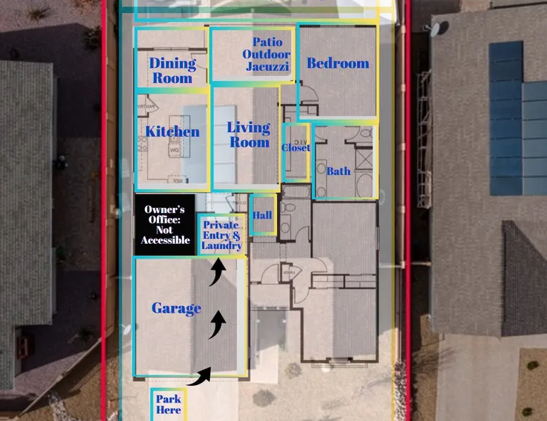 Gorgeous rental located just miles between some of Arizona’s🌵finest food eats 🥘and destinations.🛣️ Located 20 miles to Sedona, 4 miles to Jerome & 3 miles to Cottonwood. Many options to experience. Guests have a private entrance from the garage into the home. Please only park on the left side of the driveway for this unit. The 20 ft steep driveway may not be suitable for all. If you think this may be an issue, this may not be the rental for you. The space This is a spacious 1 bedroom with a private full kitchen, private living room & private yard with Jacuzzi. Guest access There are 2 Airbnbs in this home. Both have their own private entrances. This unit enters the back portion of the home from the garage. The entire back yard, kitchen, dining room, living room & jacuzzi are exclusive to this unit. Other things to note Thermostat is preset, but guests can adjust temperature +/- 3 degrees. Any further adjustments can be requested and host will adjust remotely.