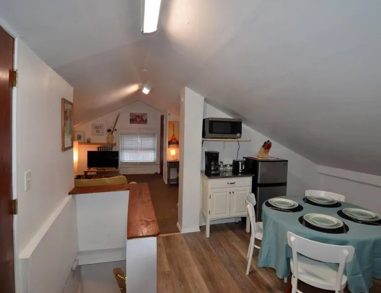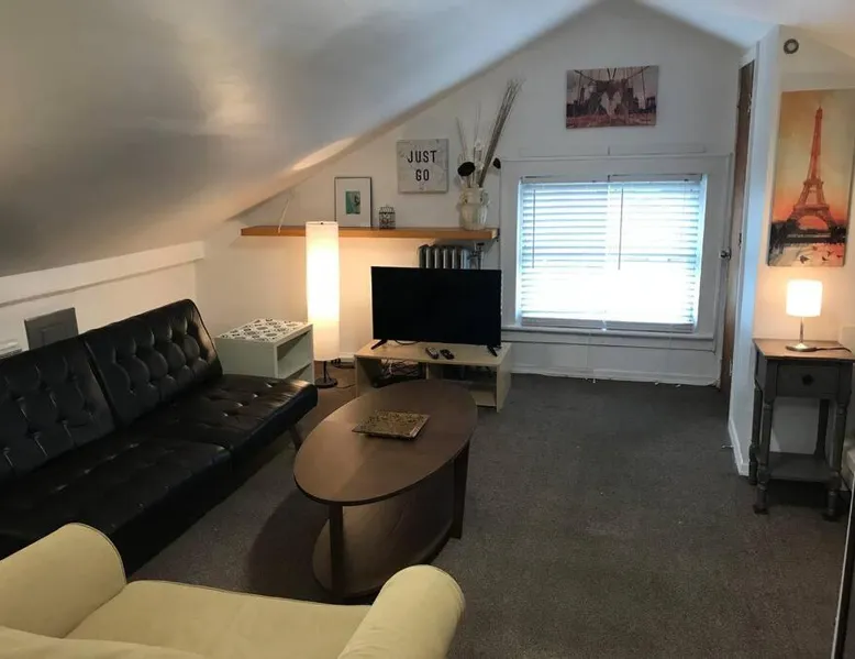 Comfortable Living Space: Cozy Alcove Studio Apt w Outdoor deck w NYC Views in Jersey City offers a one-bedroom apartment with a terrace and free WiFi. The living room includes a sofa bed and a dining area with a table. Modern Amenities: The apartment features air-conditioning, a balcony, streaming services, a fully equipped kitchen with a coffee machine, and a washing machine. Additional amenities include a hairdryer, microwave, and TV. Prime Location: Located 8.1 mi from Newark Liberty International Airport, the property is close to Ellis Island (1.9 mi), Statue of Liberty (2.5 mi), and other attractions. An ice-skating rink is also nearby. Guests can make meals in the kitchen that features a stovetop, a refrigerator, kitchenware and an oven. This air-conditioned apartment comes with a dining area, a flat-screen TV with streaming services a tea and coffee maker and a terrace. The unit has 2 beds.
