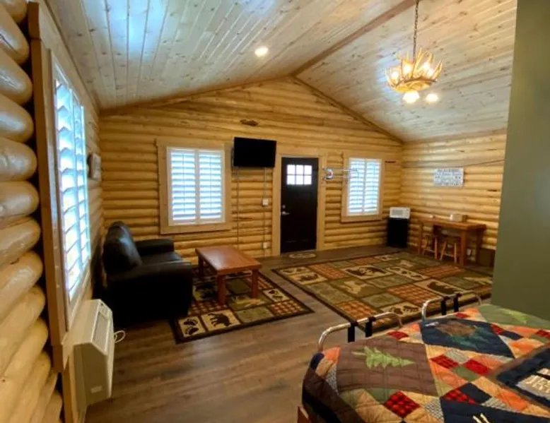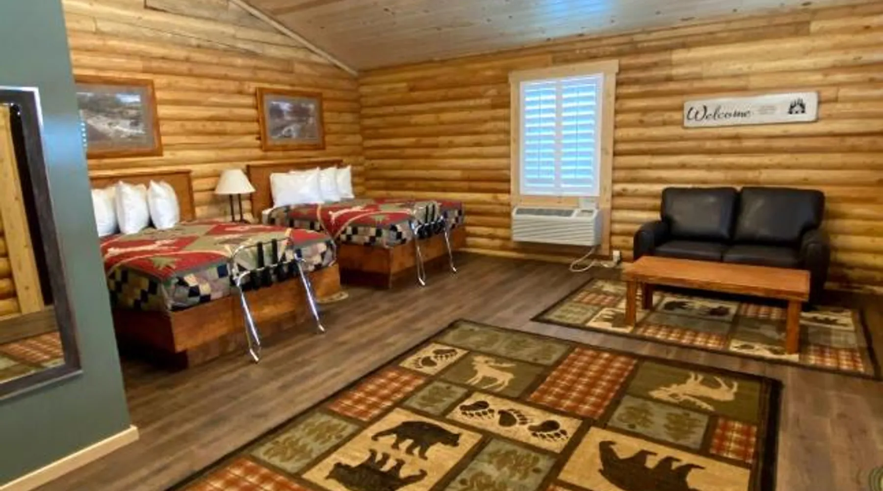 Comfortable Accommodations: Cabin Village in Island Park offers clean and comfortable rooms with air-conditioning, private bathrooms, and parquet floors. Each room includes a refrigerator, microwave, TV, and sofa, ensuring a pleasant stay. Modern Amenities: Guests enjoy free WiFi, streaming services, and free toiletries. Additional facilities include a walk-in shower, hairdryer, and free on-site private parking. The lodge provides an outdoor play area, seating, picnic, and barbecue facilities. Convenient Location: Located 20 mi from Yellowstone National Park, the property is near attractions such as the National Geographic Imax Theater (22 mi) and Yellowstone Historic Center Museum (22 mi). Yellowstone West Entrance is 22 mi away. Activities and Surroundings: Guests can enjoy skiing, hiking, and cycling. The surrounding area offers scenic views and opportunities for outdoor activities. The spacious double room features air conditioning, a sofa, as well as a private bathroom boasting a walk-in shower and a hairdryer. The unit has 1 bed.