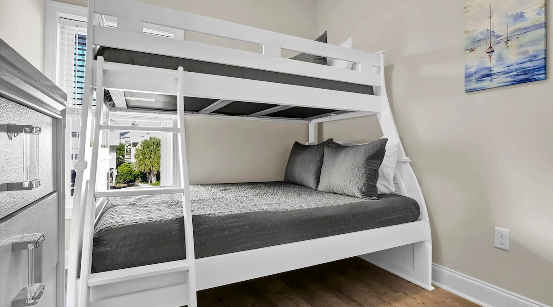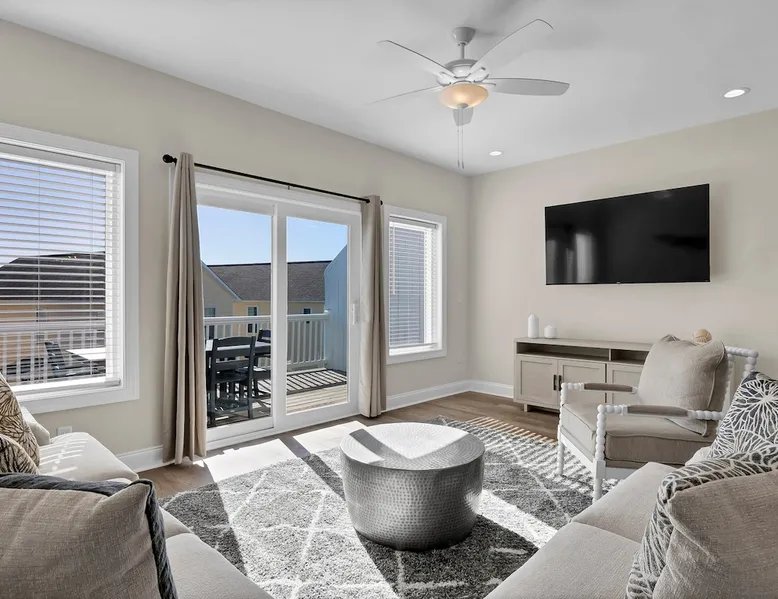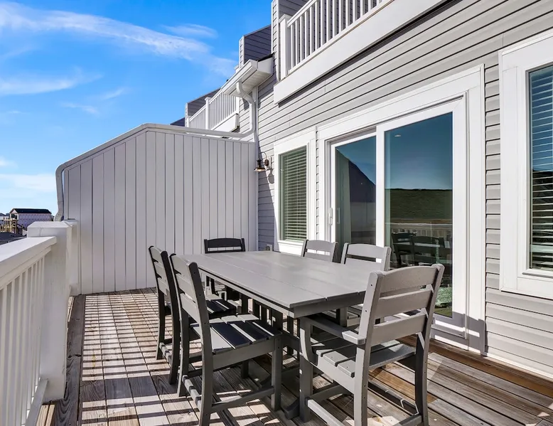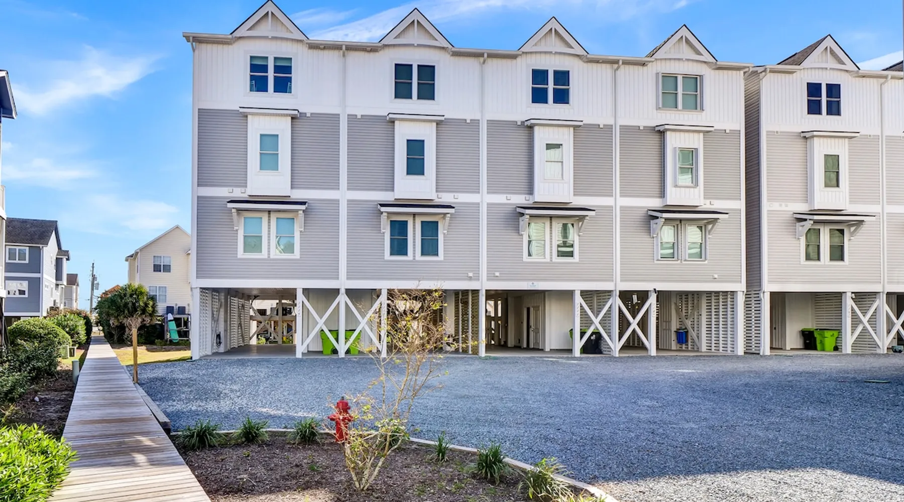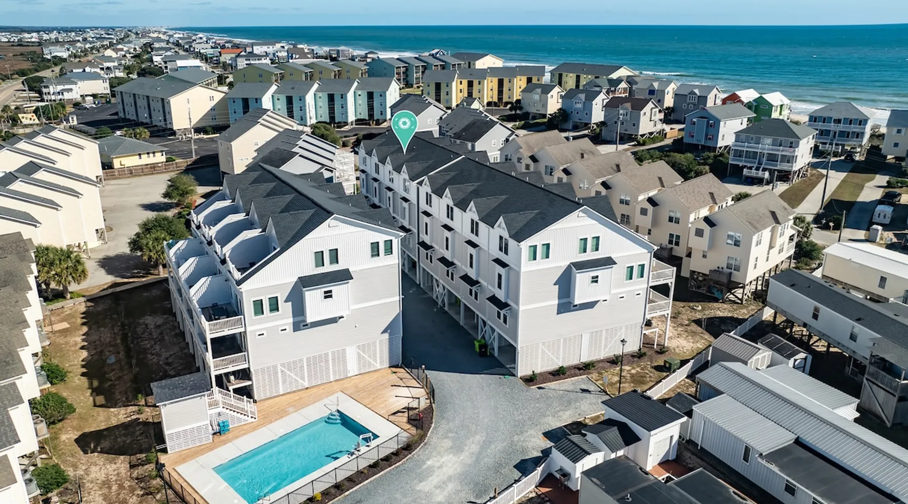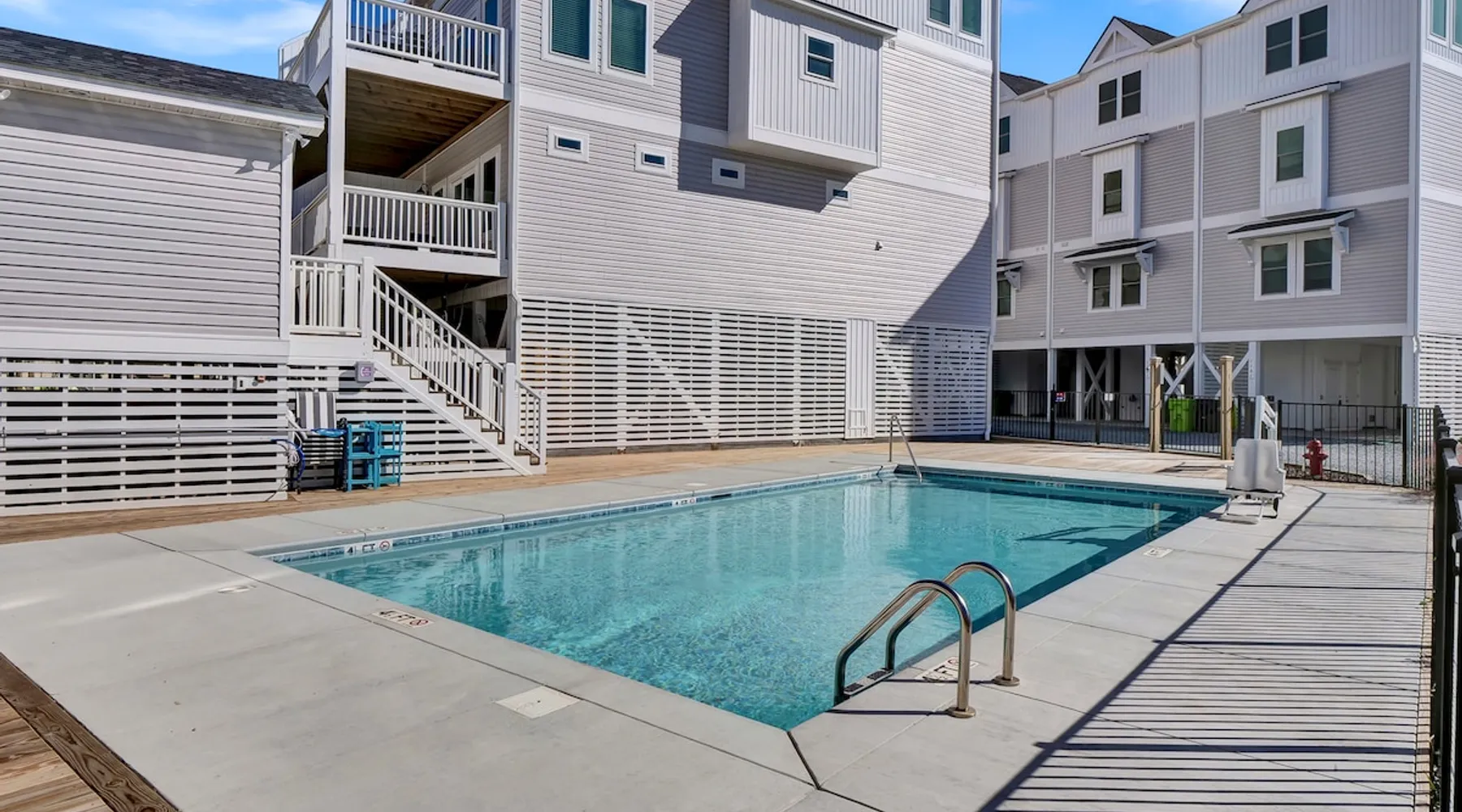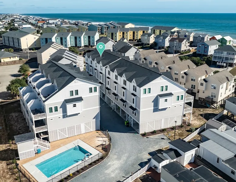 Experience coastal luxury and modern comfort at “Coastal Calm” in Surf City, NC. This brand-new construction townhome offers a prime location just steps from public beach access, providing the perfect blend of relaxation and style. Guests enjoy upscale amenities, spacious living areas, and a serene atmosphere for an unforgettable getaway. Dive into the community pool, perfect for cooling off after a day at the beach, or lounge by the water with a good book. Every detail invites you to unwind Other things to note Welcome to "Coastal Calm," your luxury retreat in Surf City, NC! This stunning, newly built boutique townhome with community pool perfectly blends modern comfort and coastal elegance. As you enter, you find a spacious living area beautifully furnished to create a relaxing atmosphere. The fully stocked kitchen is ready for you to prepare delightful meals, while the expansive deck invites you to enjoy mesmerizing ocean views—ideal for sipping morning coffee or unwinding with evening cocktails. This updated property features 5 bedrooms and 4.5 bathrooms, providing ample space for families and groups seeking a serene getaway. On the first floor, cozy bunk bedrooms are perfect for kids, along with a convenient laundry room. A king bedroom with an attached private bathroom boasts a private deck, offering a tranquil space to enjoy the morning sun. Head up to the second level, where the main living room awaits, complete with comfortable seating and an inviting atmosphere. The adjoining queen bedroom with an attached private bathroom adds extra privacy. The living room deck features a dining table, perfect for enjoying meals outdoors while taking in stunning views. The top floor is a true sanctuary, featuring a luxurious master suite with an attached private bath, a private deck, a bonus living area, and a table for six—ideal for family meals or game nights. A selection of family board games makes your evenings even more enjoyable. Picture yourself unwinding here after a day at the beach, listening to the waves and feeling the ocean breeze. Convenience abounds with an elevator for easy access and an outdoor shower to rinse off after a fun-filled day on the sand. The property also includes access to a community pool, where you can relax, swim, and soak up the sun—perfect for cooling off after a day of beach adventures. Fresh sheets and towels are provided with each stay, ensuring your comfort is our priority. Located just minutes from local shops, restaurants, and vibrant nightlife, "Coastal Calm" places you at the heart of Surf City. Indulge in local favorites like Shaka Taco for delicious bites or Daddy Mac's Beach Grille for a relaxed dining experience. For a quick treat, grab coffee or ice cream at The Daily Grind, Sea Blue, or Sweet Island. As the sun sets, enjoy cocktails and live music at Unwined, EvenTide, or The Peak Taphouse. Whether you're seeking a boutique family getaway, a relaxing reunion with friends, or a peaceful coastal retreat, "Coastal Calm" is your perfect destination. Book your stay today and experience the ultimate in coastal luxury and comfort. Your dream beach vacation is just a click away! **The community pool is only open from May 1-October 31. Depending on weather, the pool could close earlier than October 31st. INCLUDED: WIFI, fully stocked kitchen, paper goods, and ALL linens, including all bedding + bath + beach towels to save you the hassle/cost of renting them separately ($200-300+ value)! When you arrive, beds will be made with crisp, fresh linens and complete sets of fluffy towels will be available. You must be 25 years or older to rent this property. Please notify our office if you're planning to bring a pet as the following pet policy will apply: A maximum of 2 pets are permitted. ONLY DOGS ARE ALLOWED. The pet fee is $250 plus tax for each pet. A pet fee will be added after booking. No dogs are allowed without prior approval and payment of a non-refundable pet fee, per pet. Undisclosed dogs will incur a minimum $300 fine plus tax. Violation of our 2-pet maximum policy will incur a minimum of $300 plus tax charge, per pet, plus the tenant will be in material breach of the lease, and grounds for eviction will apply. The pet must be removed from the premises immediately, and your reservation may be canceled with no refund given. **Please note: All service animals and emotional support animals must be disclosed at the time of booking to allow the agent to collect records and documentation to support the request in accordance with all state and federal laws. A pet fee will NOT be charged for true Service Animals.** All reservations are required to have a signed rental agreement on file that will be emailed to you after booking. Once you've booked your stay, you will have 48 hrs. to complete the rental agreement to confirm your stay. We reserve the right to cancel your booking if the rental agreement is not completed within 48hrs. Booking a vacation rental can be stressful! Our goal is to make the process as easy as possible for our guests and to provide excellent customer service every time. Please contact us with specific requests, and we'll do our best to help!
