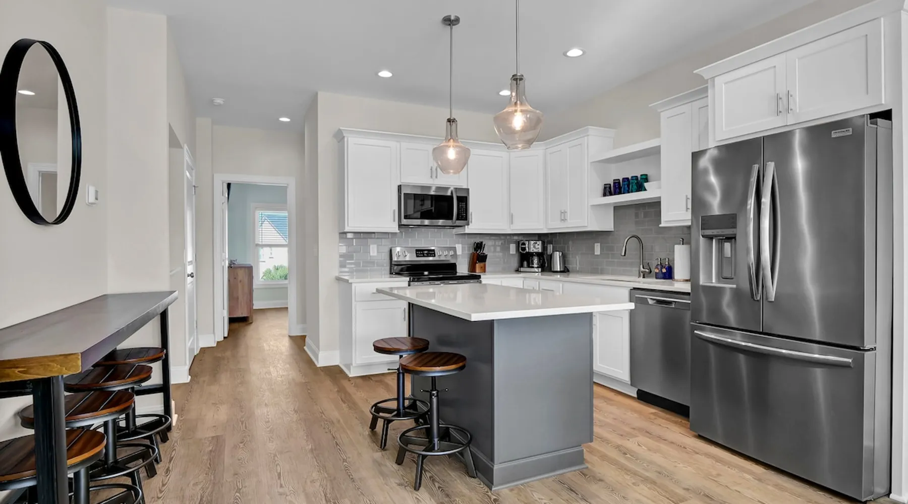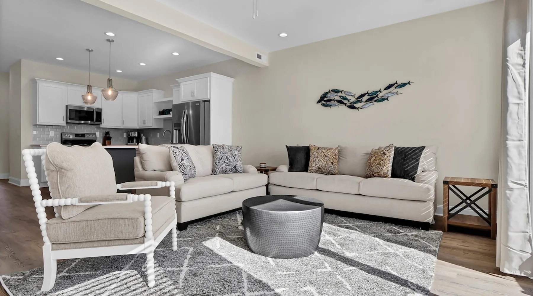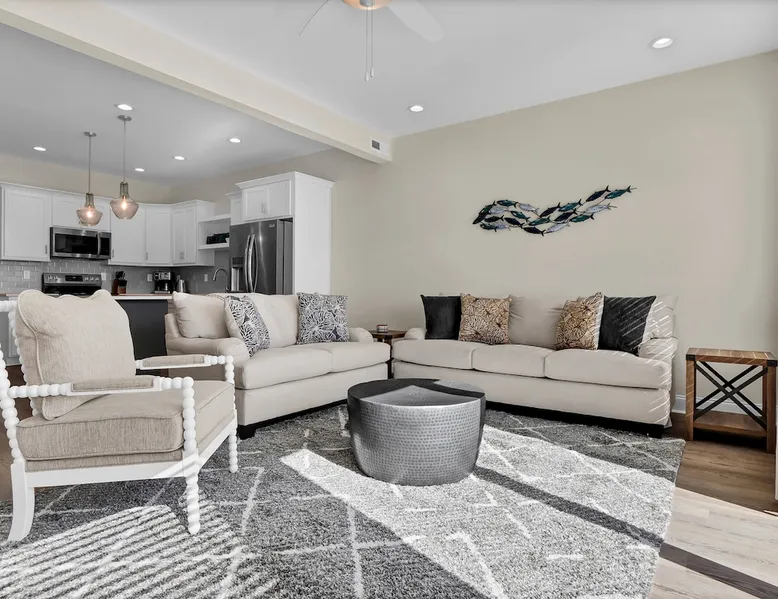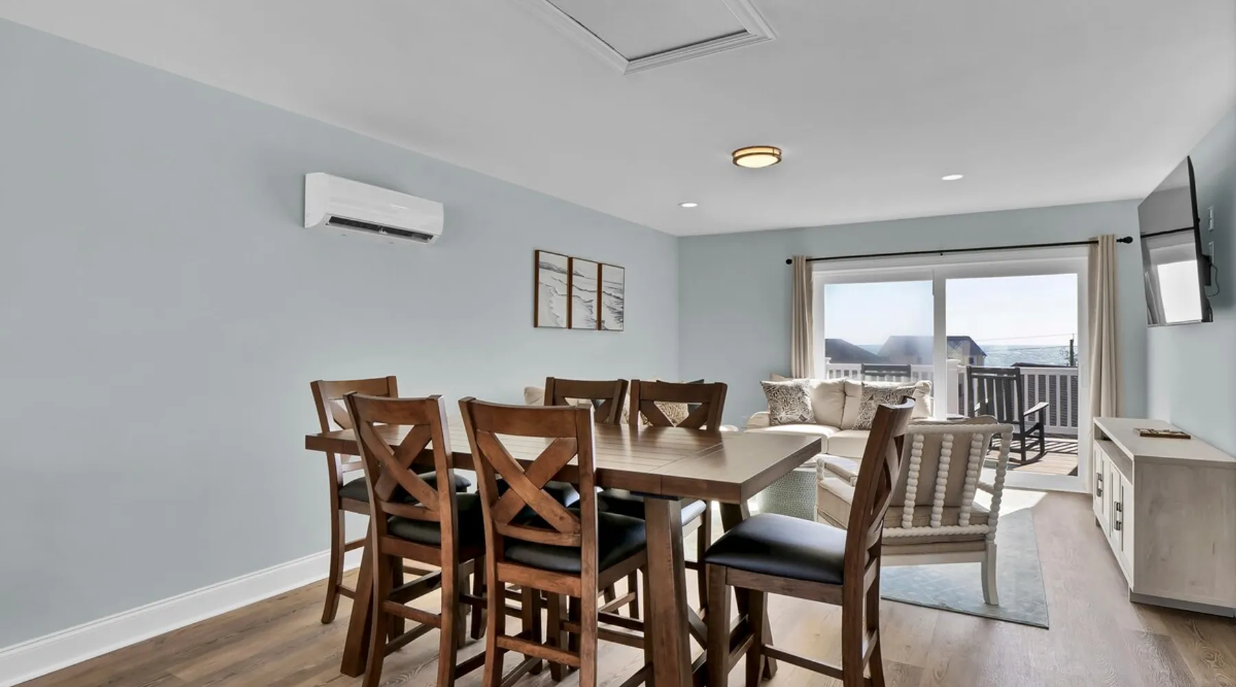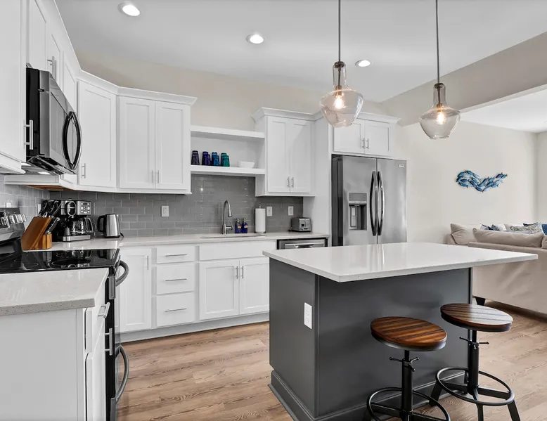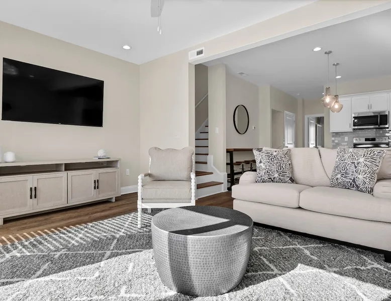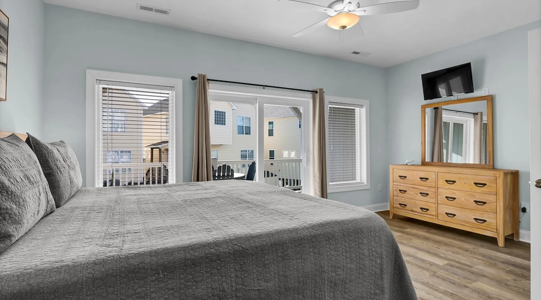 Experience coastal luxury and modern comfort at “Coastal Calm” in Surf City, NC. This brand-new construction townhome offers a prime location just steps from public beach access, providing the perfect blend of relaxation and style. Guests enjoy upscale amenities, spacious living areas, and a serene atmosphere for an unforgettable getaway. Dive into the community pool, perfect for cooling off after a day at the beach, or lounge by the water with a good book. Every detail invites you to unwind Other things to note Welcome to "Coastal Calm," your luxury retreat in Surf City, NC! This stunning, newly built boutique townhome with community pool perfectly blends modern comfort and coastal elegance. As you enter, you find a spacious living area beautifully furnished to create a relaxing atmosphere. The fully stocked kitchen is ready for you to prepare delightful meals, while the expansive deck invites you to enjoy mesmerizing ocean views—ideal for sipping morning coffee or unwinding with evening cocktails. This updated property features 5 bedrooms and 4.5 bathrooms, providing ample space for families and groups seeking a serene getaway. On the first floor, cozy bunk bedrooms are perfect for kids, along with a convenient laundry room. A king bedroom with an attached private bathroom boasts a private deck, offering a tranquil space to enjoy the morning sun. Head up to the second level, where the main living room awaits, complete with comfortable seating and an inviting atmosphere. The adjoining queen bedroom with an attached private bathroom adds extra privacy. The living room deck features a dining table, perfect for enjoying meals outdoors while taking in stunning views. The top floor is a true sanctuary, featuring a luxurious master suite with an attached private bath, a private deck, a bonus living area, and a table for six—ideal for family meals or game nights. A selection of family board games makes your evenings even more enjoyable. Picture yourself unwinding here after a day at the beach, listening to the waves and feeling the ocean breeze. Convenience abounds with an elevator for easy access and an outdoor shower to rinse off after a fun-filled day on the sand. The property also includes access to a community pool, where you can relax, swim, and soak up the sun—perfect for cooling off after a day of beach adventures. Fresh sheets and towels are provided with each stay, ensuring your comfort is our priority. Located just minutes from local shops, restaurants, and vibrant nightlife, "Coastal Calm" places you at the heart of Surf City. Indulge in local favorites like Shaka Taco for delicious bites or Daddy Mac's Beach Grille for a relaxed dining experience. For a quick treat, grab coffee or ice cream at The Daily Grind, Sea Blue, or Sweet Island. As the sun sets, enjoy cocktails and live music at Unwined, EvenTide, or The Peak Taphouse. Whether you're seeking a boutique family getaway, a relaxing reunion with friends, or a peaceful coastal retreat, "Coastal Calm" is your perfect destination. Book your stay today and experience the ultimate in coastal luxury and comfort. Your dream beach vacation is just a click away! **The community pool is only open from May 1-October 31. Depending on weather, the pool could close earlier than October 31st. INCLUDED: WIFI, fully stocked kitchen, paper goods, and ALL linens, including all bedding + bath + beach towels to save you the hassle/cost of renting them separately ($200-300+ value)! When you arrive, beds will be made with crisp, fresh linens and complete sets of fluffy towels will be available. You must be 25 years or older to rent this property. Please notify our office if you're planning to bring a pet as the following pet policy will apply: A maximum of 2 pets are permitted. ONLY DOGS ARE ALLOWED. The pet fee is $250 plus tax for each pet. A pet fee will be added after booking. No dogs are allowed without prior approval and payment of a non-refundable pet fee, per pet. Undisclosed dogs will incur a minimum $300 fine plus tax. Violation of our 2-pet maximum policy will incur a minimum of $300 plus tax charge, per pet, plus the tenant will be in material breach of the lease, and grounds for eviction will apply. The pet must be removed from the premises immediately, and your reservation may be canceled with no refund given. **Please note: All service animals and emotional support animals must be disclosed at the time of booking to allow the agent to collect records and documentation to support the request in accordance with all state and federal laws. A pet fee will NOT be charged for true Service Animals.** All reservations are required to have a signed rental agreement on file that will be emailed to you after booking. Once you've booked your stay, you will have 48 hrs. to complete the rental agreement to confirm your stay. We reserve the right to cancel your booking if the rental agreement is not completed within 48hrs. Booking a vacation rental can be stressful! Our goal is to make the process as easy as possible for our guests and to provide excellent customer service every time. Please contact us with specific requests, and we'll do our best to help!