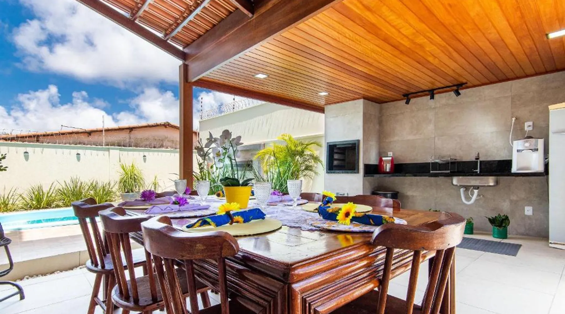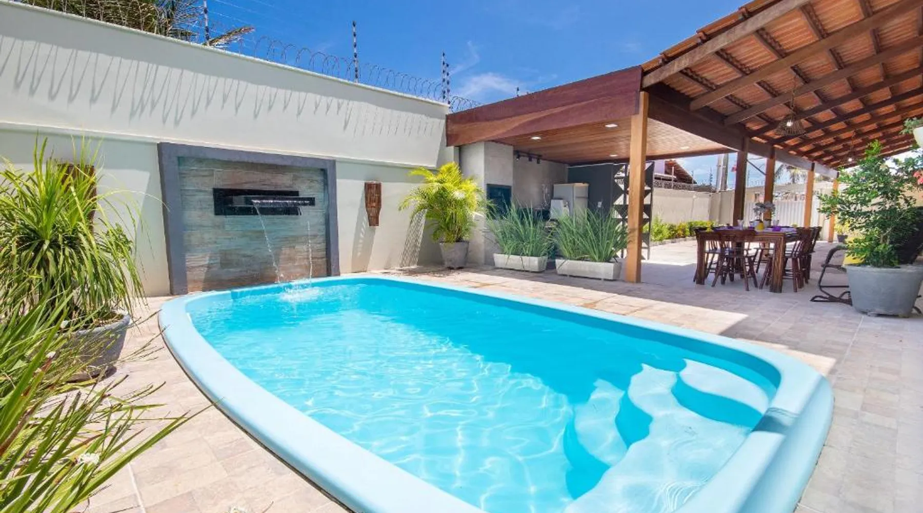 Elegant Holiday Home in Nisia Floresta: Incrível casa na praia de Camurupim por Carpediem offers a serene holiday home experience in Nisia Floresta, Brazil. Guests enjoy a beautiful garden, an outdoor swimming pool, and free WiFi throughout the property. Comfortable Living Spaces: The holiday home features four bedrooms and four bathrooms, a spacious living room, and a fully equipped kitchen. Additional amenities include air-conditioning, a balcony with sea views, a washing machine, and free on-site parking. Convenient Location: Praia de Camurupim is just a few steps away, providing easy beach access. São Gonçalo do Amarante International Airport is located 37 mi from the property. Nearby attractions include the Giant Cashew Tree (8.7 mi) and Arena das Dunas (23 mi). Highly Rated by Guests: Guests appreciate the excellent facilities, comfortable accommodations, and proximity to local attractions, earning high ratings for their stay. Guests will have a special experience as the villa provides a private pool. Meals can be prepared in the well-fitted kitchen, which has a stovetop, a refrigerator, kitchenware and an oven. The air-conditioned villa features a TV, a washing machine, a seating area, a barbecue as well as sea views. The unit has 8 beds.