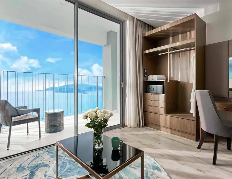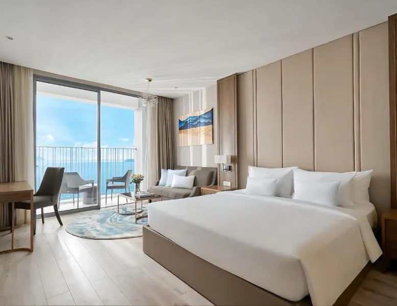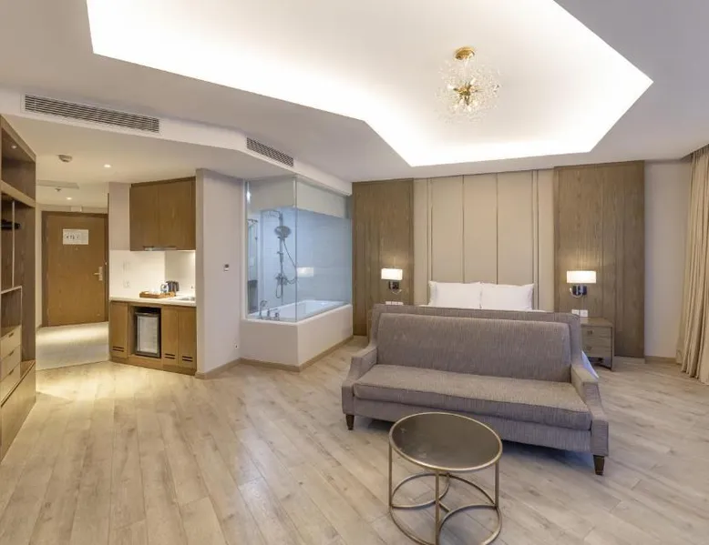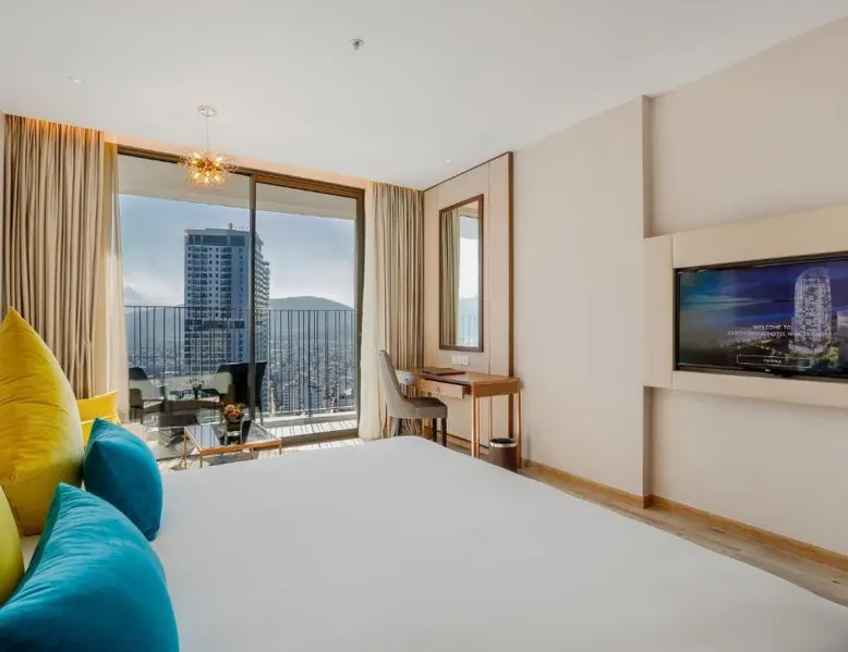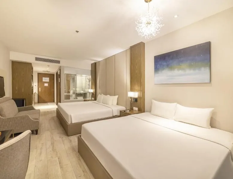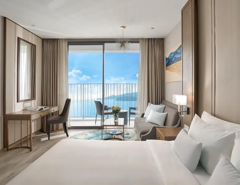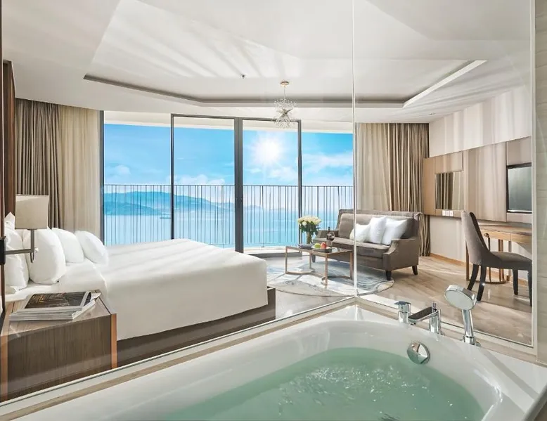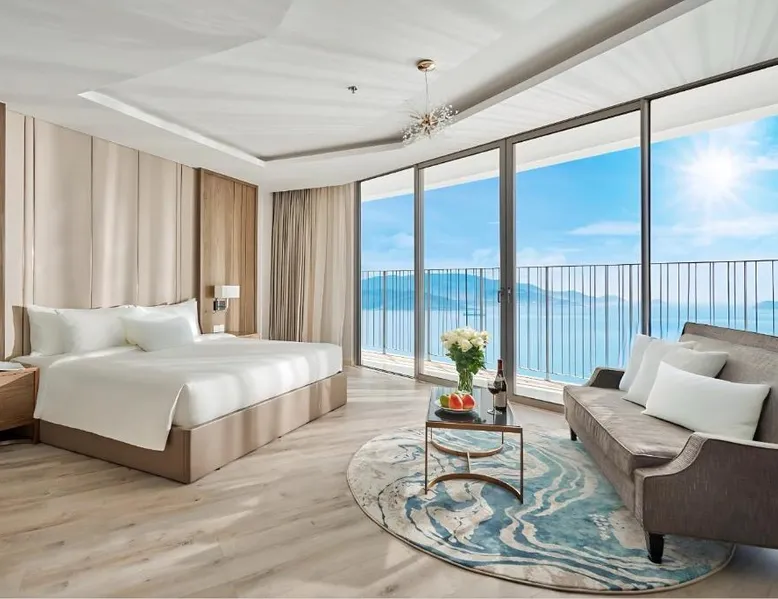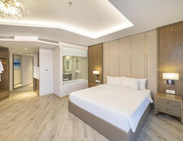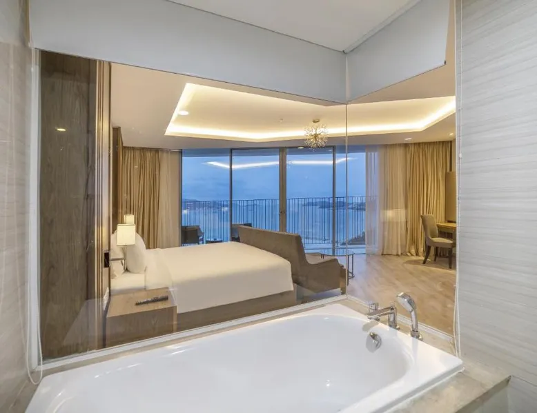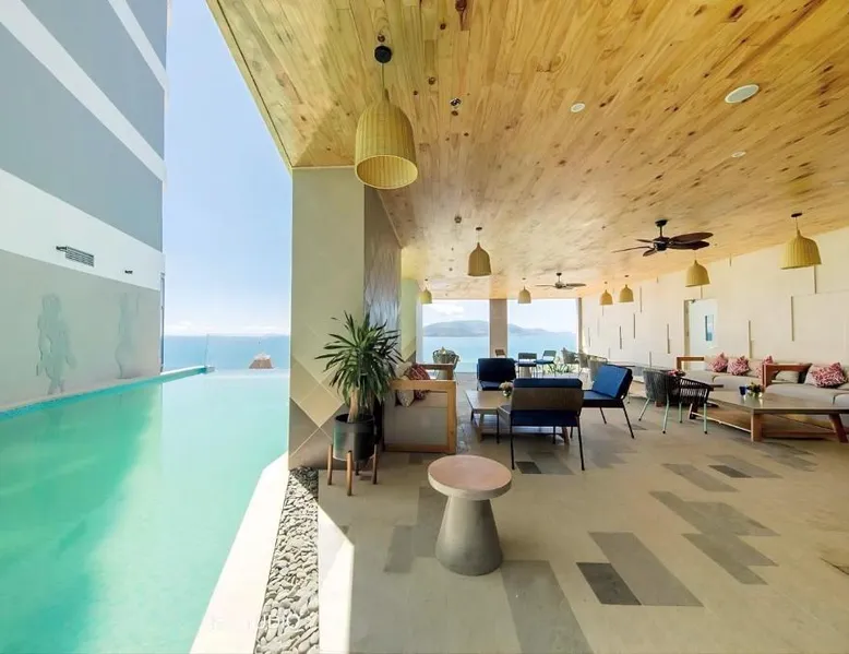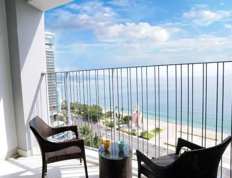 Elegant Accommodations: Panorama Beachfront Nha Trang by LYN Condotel in Nha Trang offers a swimming pool with a view, sun terrace, restaurant, and indoor pool. Guests enjoy free WiFi, ensuring a comfortable stay. Comfortable Amenities: The apartment features air-conditioning, a kitchenette, balcony, and private bathroom. Additional amenities include a fitness room, lounge, and 24-hour front desk. Prime Location: Located less than 0.6 mi from Nha Trang Beach and near attractions such as Tram Huong Tower and Nha Trang Center Shopping Mall. Cam Ranh International Airport is 22 mi away. Guest Favorites: Guests appreciate the scenic views, room cleanliness, and attentive staff. The pool with a view is the standout feature of this studio. The well-fitted kitchenette has a refrigerator, kitchenware, a microwave and an electric kettle. This air-conditioned studio is consisted of of a flat-screen TV with streaming services, a private bathroom as well as a balcony with sea views. The unit has 2 beds.