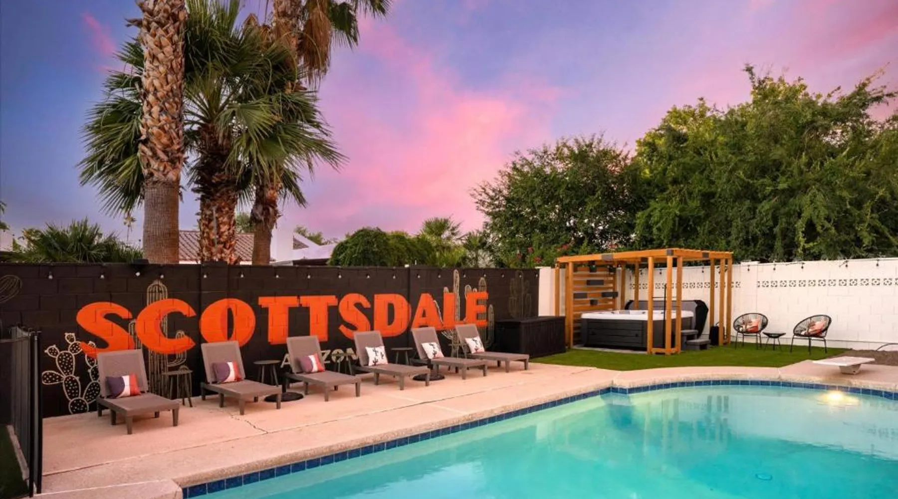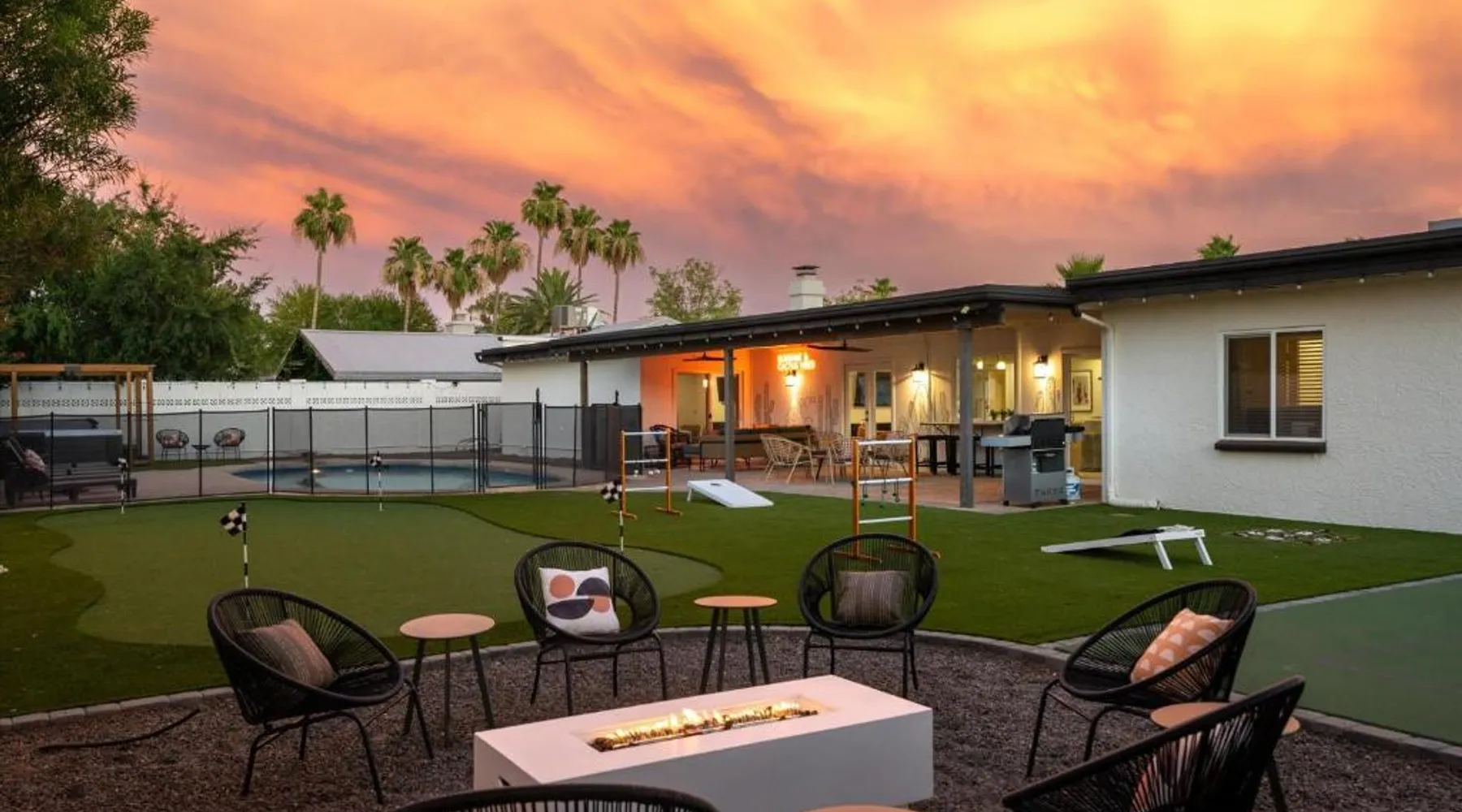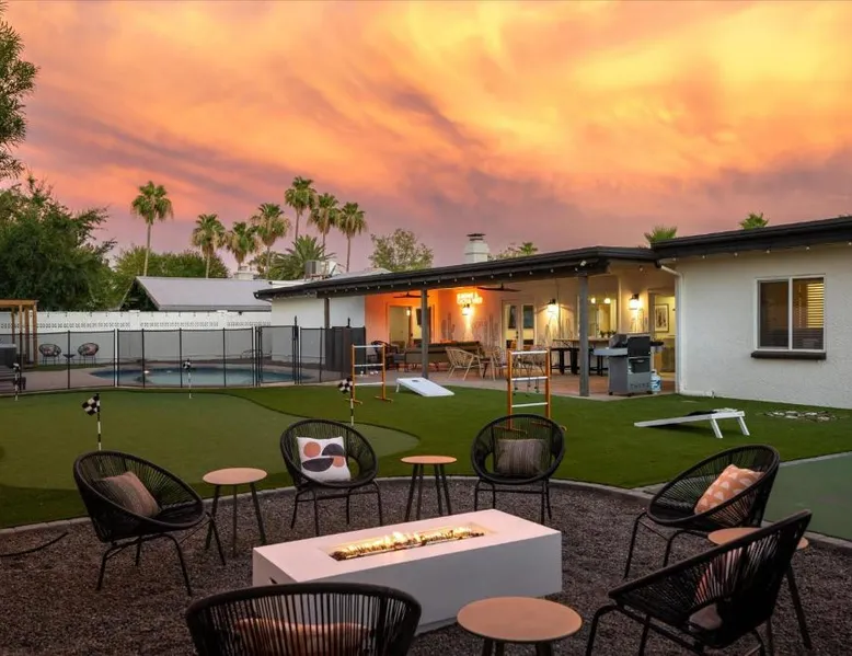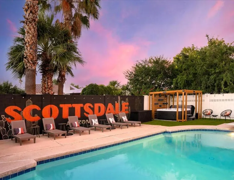 Spacious Holiday Home in Phenix: Pickleball Court~ Hot Tub & Pool~ Mini Golf~Games offers a spacious holiday home in Phenix. The property features five bedrooms and three bathrooms, ensuring ample space for all guests. Exceptional Facilities: Guests can enjoy a spa and wellness center, a beautiful garden, an outdoor swimming pool, and free WiFi. Additional amenities include a casino, waterpark, and games room, providing entertainment for all ages. Comfortable Living Spaces: The holiday home is equipped with air-conditioning, a hot tub, washing machine, patio, kitchen, and private pool. Other amenities include a fireplace, barbecue, and free on-site parking. Nearby Attractions: Located 3.1 mi from Scottsdale Airport, the property is close to attractions such as Musical Instrument Museum (6.2 mi) and Phenix Convention Center (17 mi). Cycling enthusiasts can explore the surrounding area. This holiday home's standout features are the private pool, hot tub and fireplace. Boasting a private entrance, this spacious holiday home also includes 5 separate bedrooms and 3 bathrooms with a bath and a hairdryer. Guests will find a stovetop, a refrigerator, a dishwasher and kitchenware in the well-fitted kitchen. The holiday home also features a barbecue. Featuring a patio, this holiday home also offers air conditioning, a washing machine and a TV. The unit has 6 beds.