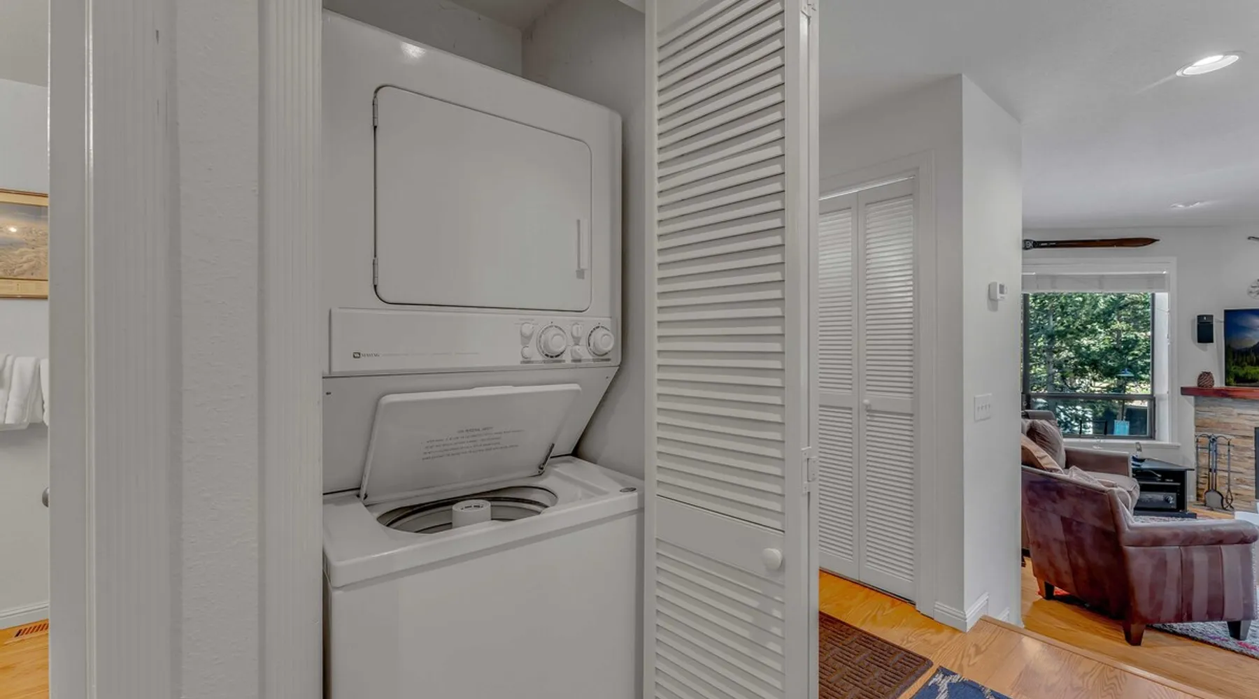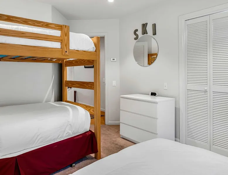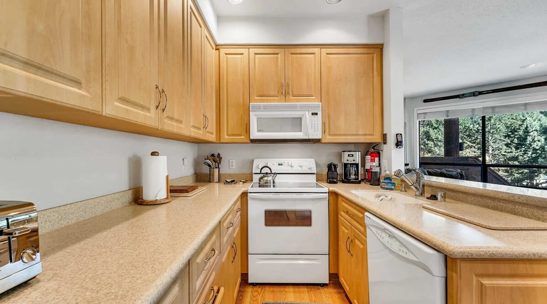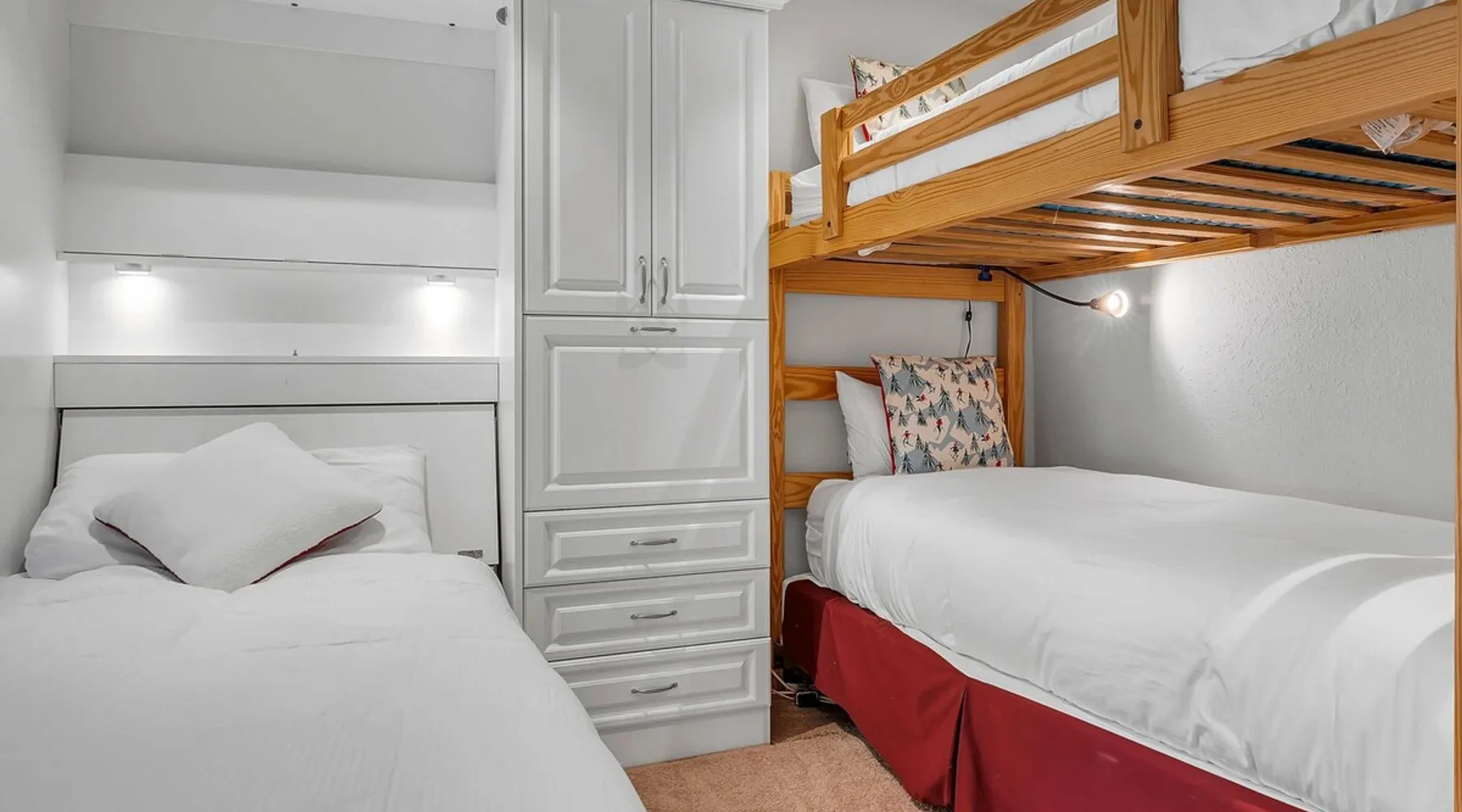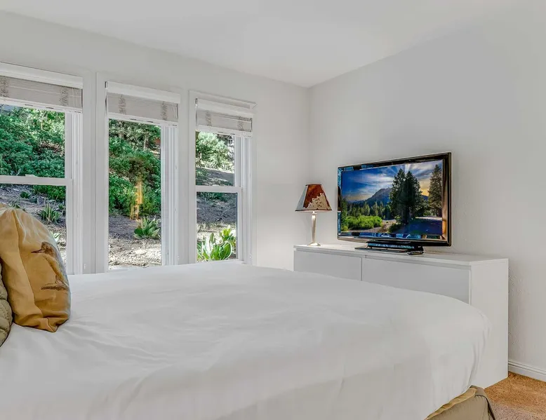 The ultimate Palisades Tahoe vacation rental! This bright 2-bedroom condo places you within walking distance of both the slopes and shops of Palisades Tahoe. Catch a ride on the FREE shuttle, the Mountaineer, which stops just outside your door and be at the Village & lifts within 1 to 2 minutes. After a day of adventure, relax in the plush living room, warm up by the gas fireplace, and enjoy the views through large windows that frame beautiful mountain scenery. The space Location perks: 700 yards to ski lift, The Village at Palisades Tahoe (0.4 miles), Olympic Valley Park (1.9 miles), Alpine Meadows (5.5 miles), Tahoe City (7.1 miles), Commons Beach (7.3 miles) Interior: - Well-equipped kitchen (drip coffee maker, Nespresso, waffle maker) - 5-person dining table - Gas fireplace - Boot dryers - Washer and dryer - Central heating, no A/C Exterior: - Step-out balcony - View of Palisades Tahoe - 700yards to ski lift! Main Level: Living room, kitchen, 2 bedrooms, 1 en suite bath, 1 full bath This inviting Palisades retreat is the perfect home base for year-round fun in Tahoe! Situated in a stunning setting, nature enthusiasts will love the surroundings, and your entire group will appreciate the convenience of being within walking distance of the ski lifts and bustling village at Palisades Tahoe. As you step inside, you will be greeted by a spacious entryway, complete with a large closet featuring a boot dryer, making it easy to unload your outdoor gear before settling in. The bright shared living space is filled with natural light from large windows that frame impressive views of Palisades Tahoe. This area seamlessly blends the living room, dining room, and kitchen into an open layout perfect for groups to stay connected. The living room features breathtaking mountain views, 2 couches, a 46” TV, and a gas fireplace. This space can also serve as an additional sleeping area with a full Murphy bed. From the living room, step out onto the balcony to enjoy the fresh mountain air, or head into the well-equipped kitchen where you will find everything needed to prepare home-cooked meals to share at the 5-person dining table. Down the hallway from the living area, you will find 2 bedrooms, providing a great separation of space for added privacy. The master bedroom is an inviting space with a king-size bed, dresser, closet, a 42” TV, and an en-suite bath featuring a double-sink vanity and a bathtub/shower combo. Adjacent to the master is the guest bedroom, perfect for sharing, with 3 twin beds including a twin-over-twin bunk bed and a twin Murphy bed. Down the hallway, you'll find a laundry closet with a stacked washer and dryer and a shared bathroom with a spacious single-sink vanity and a step-in shower. STR License Number: STR24-8930 Max Occupancy: 6 Parking Info: There are 2 parking spaces available. 1 in the assigned carport and 1 in the shared parking lot. Guest access Guests have access to the entire home and to 2 parking spaces, 1 in the assigned carport and 1 in the shared parking lot. Other things to note Please note that like most homes in the area, this home does not have A/C. Please keep in mind that if you plan to ski, you are responsible for verifying the ski resorts' opening and closing dates. Registration Details STR24-8930