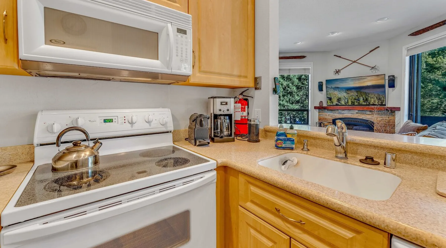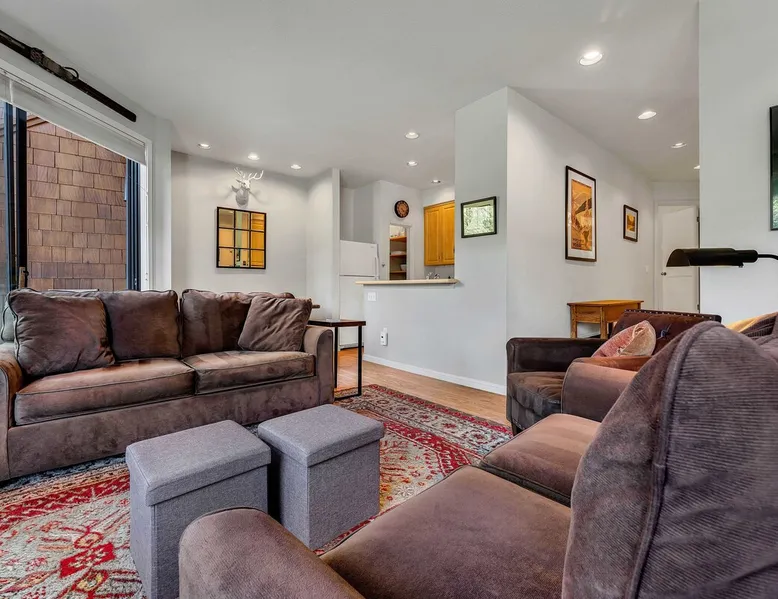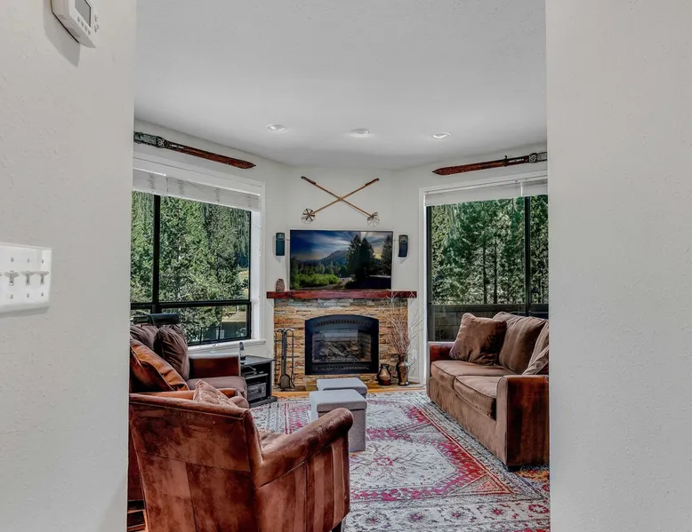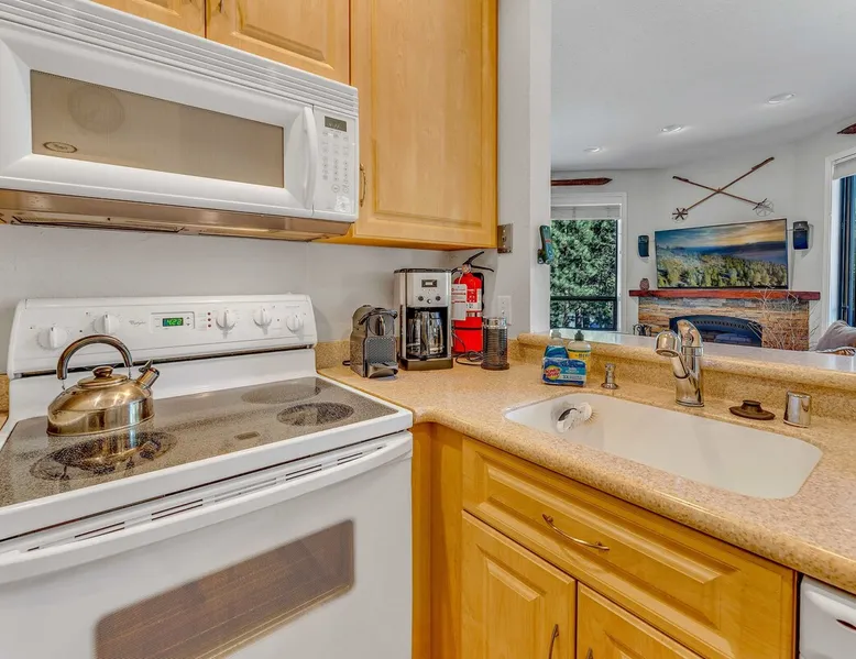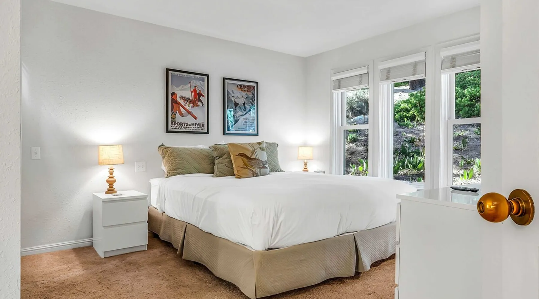 The ultimate Palisades Tahoe vacation rental! This bright 2-bedroom condo places you within walking distance of both the slopes and shops of Palisades Tahoe. Catch a ride on the FREE shuttle, the Mountaineer, which stops just outside your door and be at the Village & lifts within 1 to 2 minutes. After a day of adventure, relax in the plush living room, warm up by the gas fireplace, and enjoy the views through large windows that frame beautiful mountain scenery. The space Location perks: 700 yards to ski lift, The Village at Palisades Tahoe (0.4 miles), Olympic Valley Park (1.9 miles), Alpine Meadows (5.5 miles), Tahoe City (7.1 miles), Commons Beach (7.3 miles) Interior: - Well-equipped kitchen (drip coffee maker, Nespresso, waffle maker) - 5-person dining table - Gas fireplace - Boot dryers - Washer and dryer - Central heating, no A/C Exterior: - Step-out balcony - View of Palisades Tahoe - 700yards to ski lift! Main Level: Living room, kitchen, 2 bedrooms, 1 en suite bath, 1 full bath This inviting Palisades retreat is the perfect home base for year-round fun in Tahoe! Situated in a stunning setting, nature enthusiasts will love the surroundings, and your entire group will appreciate the convenience of being within walking distance of the ski lifts and bustling village at Palisades Tahoe. As you step inside, you will be greeted by a spacious entryway, complete with a large closet featuring a boot dryer, making it easy to unload your outdoor gear before settling in. The bright shared living space is filled with natural light from large windows that frame impressive views of Palisades Tahoe. This area seamlessly blends the living room, dining room, and kitchen into an open layout perfect for groups to stay connected. The living room features breathtaking mountain views, 2 couches, a 46” TV, and a gas fireplace. This space can also serve as an additional sleeping area with a full Murphy bed. From the living room, step out onto the balcony to enjoy the fresh mountain air, or head into the well-equipped kitchen where you will find everything needed to prepare home-cooked meals to share at the 5-person dining table. Down the hallway from the living area, you will find 2 bedrooms, providing a great separation of space for added privacy. The master bedroom is an inviting space with a king-size bed, dresser, closet, a 42” TV, and an en-suite bath featuring a double-sink vanity and a bathtub/shower combo. Adjacent to the master is the guest bedroom, perfect for sharing, with 3 twin beds including a twin-over-twin bunk bed and a twin Murphy bed. Down the hallway, you'll find a laundry closet with a stacked washer and dryer and a shared bathroom with a spacious single-sink vanity and a step-in shower. STR License Number: STR24-8930 Max Occupancy: 6 Parking Info: There are 2 parking spaces available. 1 in the assigned carport and 1 in the shared parking lot. Guest access Guests have access to the entire home and to 2 parking spaces, 1 in the assigned carport and 1 in the shared parking lot. Other things to note Please note that like most homes in the area, this home does not have A/C. Please keep in mind that if you plan to ski, you are responsible for verifying the ski resorts' opening and closing dates. Registration Details STR24-8930