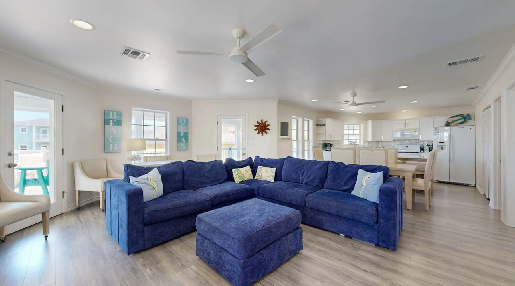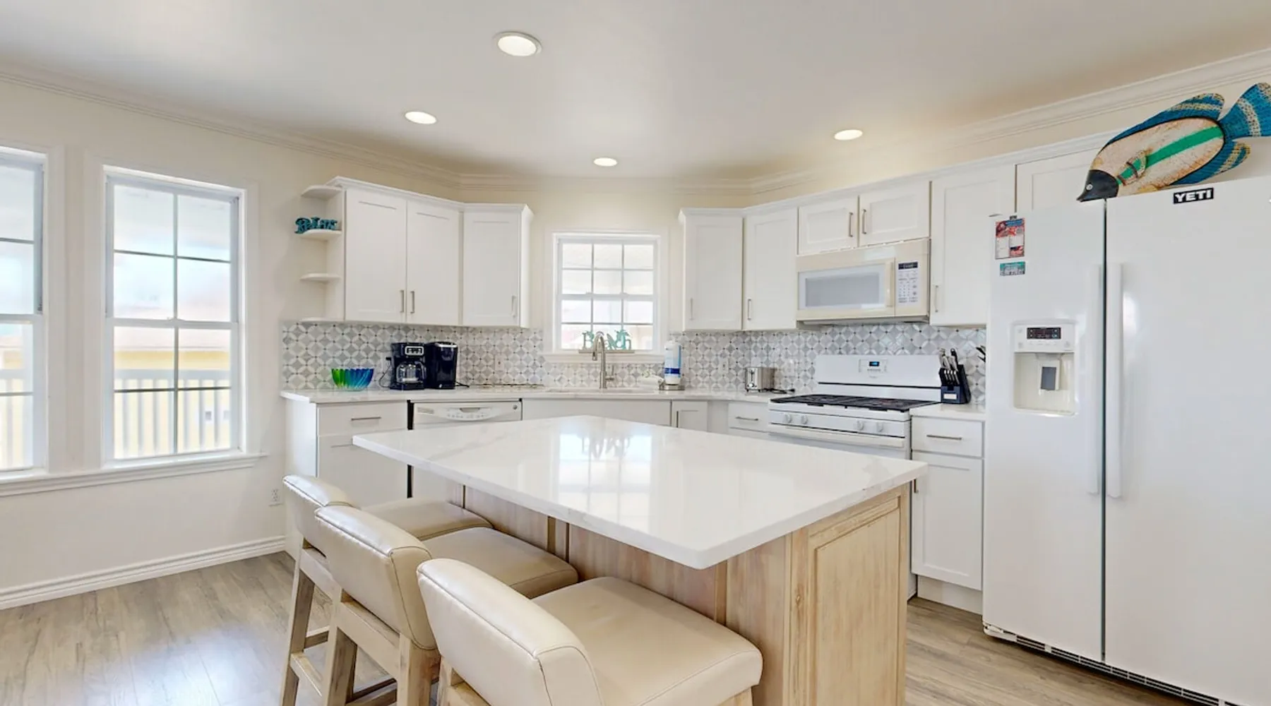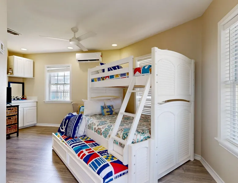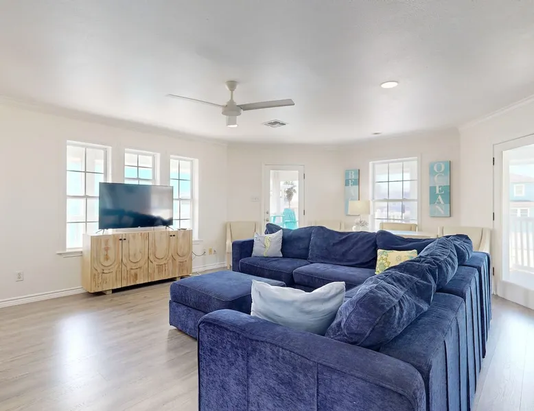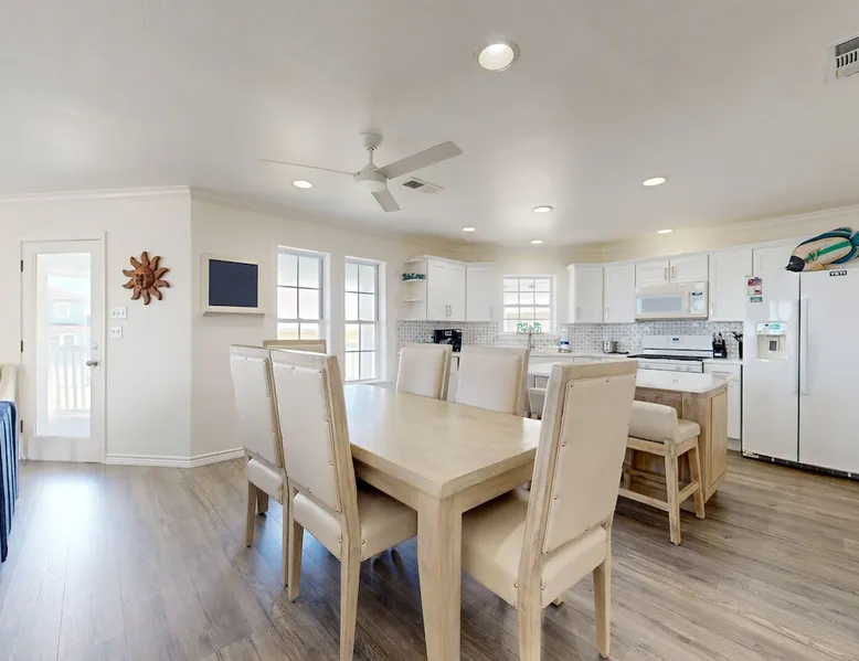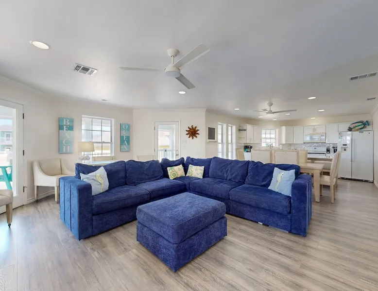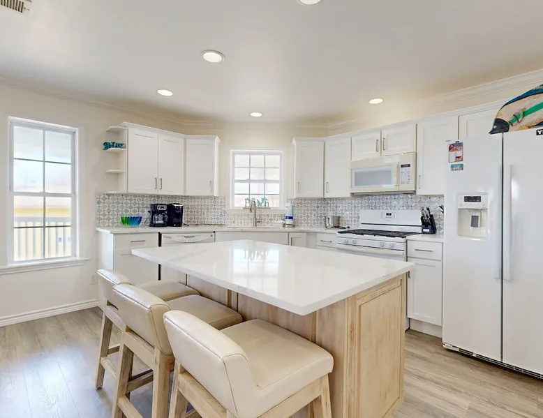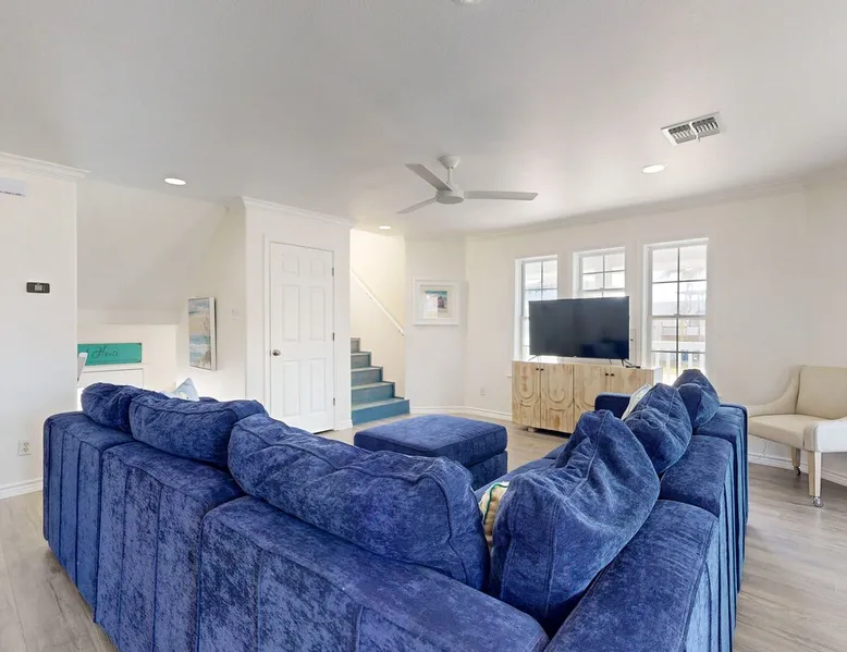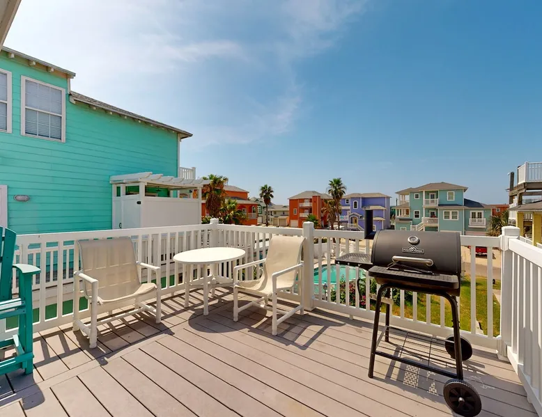 AS658: Holiday Beach House 3BD, 3BA, Shared Pool, Golf Cart Included, Pet Friendly, Parking for 5, Garage Access Welcome to the enchanting Holiday Beach House, your perfect coastal getaway located on picturesque Anchor Street, just off 11th Street. This charming beach house offers the ideal blend of comfort and convenience, situated only minutes away from shopping, dining, and the sun-kissed shores of the beach. To enhance your beach experience, a 6-passenger golf cart is included. The space AS658: Holiday Beach House 3BD, 3BA, Golf Cart Included, Shared Pool, Pet Friendly, Parking for 5, Garage Access Welcome to the enchanting Holiday Beach House, your perfect coastal getaway located on picturesque Anchor Street, just off 11th Street. This charming beach house offers the ideal blend of comfort and convenience, situated only minutes away from shopping, dining, and the sun-kissed shores of the beach. To enhance your beach experience, a 6-passenger golf cart is included with your stay, making it easy to explore the area! Spread across three inviting levels, this home features a thoughtful layout to accommodate family and friends. The first level welcomes you with a cozy bedroom and a bathroom, providing a private retreat for guests. As you ascend to the second level, you’ll find the heart of the home—a spacious open-concept living area that seamlessly connects the kitchen, dining, and living spaces. The fully stocked kitchen boasts sleek all-white appliances, including a propane stove, making meal preparation a breeze. Gather around the plush sofa in the living area, where a large TV awaits for movie nights or cheering on your favorite team. Step outside onto the decks of this level, where ample seating invites you to bask in the warm Port A sunshine and enjoy the ocean breeze. Venture to the third level, which is designed to maximize comfort with another inviting bedroom and bathroom, along with a bonus sleeping area on the landing that overlooks the living room—perfect for additional guests or children. Don’t miss your chance to experience coastal living at its finest—make your reservations today for the Holiday Beach House, featuring 3 bedrooms and 3 bathrooms, and create unforgettable memories by the sea! Things to know: WIFI Golf Cart Included (6-Seater Golf Cart Included - Subject to a $10 Fuel Charge – Short Term Stay Only) Charcoal Grill (Please provide your own charcoal) Fully Equipped Kitchen (Drip and Keurig coffee maker, please bring coffee, filters, and K-cups Washer/Dryer (No laundry soap provided) Pet Friendly ($95 Pet Fee per pet, limit two) Parking for 5 vehicles Garage Access Must be 25 years old to book one of our units. Strictly enforced, ID verified upon check-in. Life in Paradise rental agreement required upon booking $95 pet fee per pet, limit 2 pets. Fee requests will be sent separately after booking. We provide WIFI to enhance your stay and keep you connected. While Port A is typically reliable, you may experience occasional outages beyond our control. Thank you for your understanding. Construction is a constant in Port Aransas. While we strive to ensure your visit is peaceful, you may encounter sights and sounds of building projects or community improvements during your stay. We appreciate your understanding as we work towards making our community better for everyone. Bedrooms and bathrooms: First Level BR1 Bunk bed Full over Queen w/ Twin trundle, TV, Small Chest, ensuite bath w/ walk-in shower, single vanity Second Level BR2 King, TV, Closet, Door to patio, ensuite bath w/ tub/shower combo, single vanity Living Room - Queen Sleeper Sofa Third Level BD3 Queen, TV, Closet, ensuite bath w/ tub/shower combo, single vanity Landing Area - Bunk Bed Full over Queen