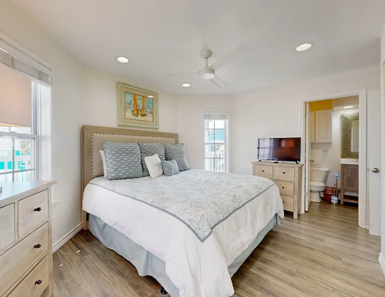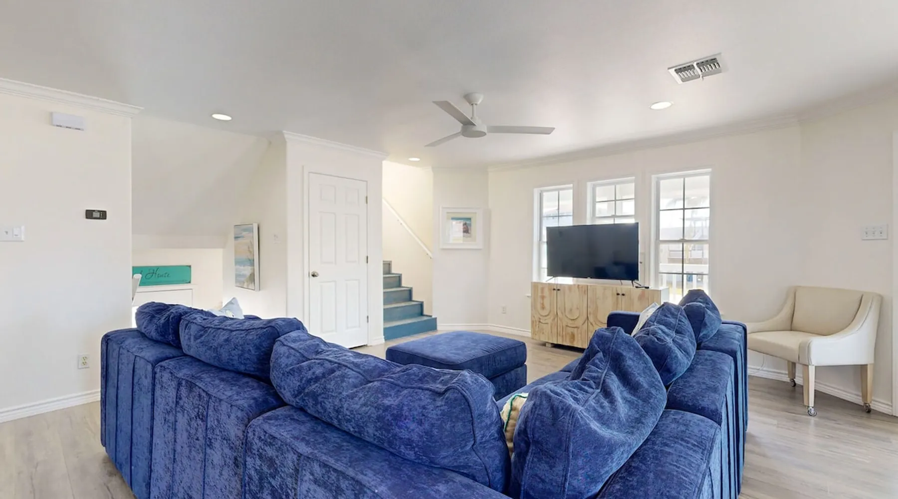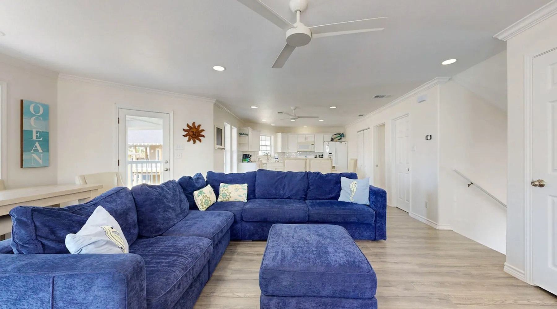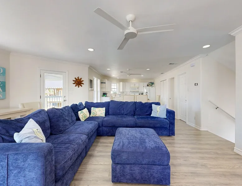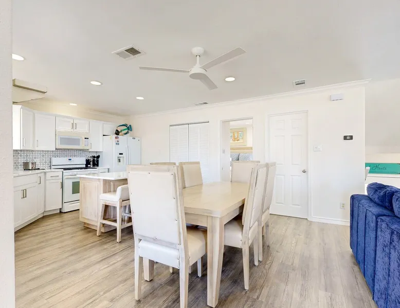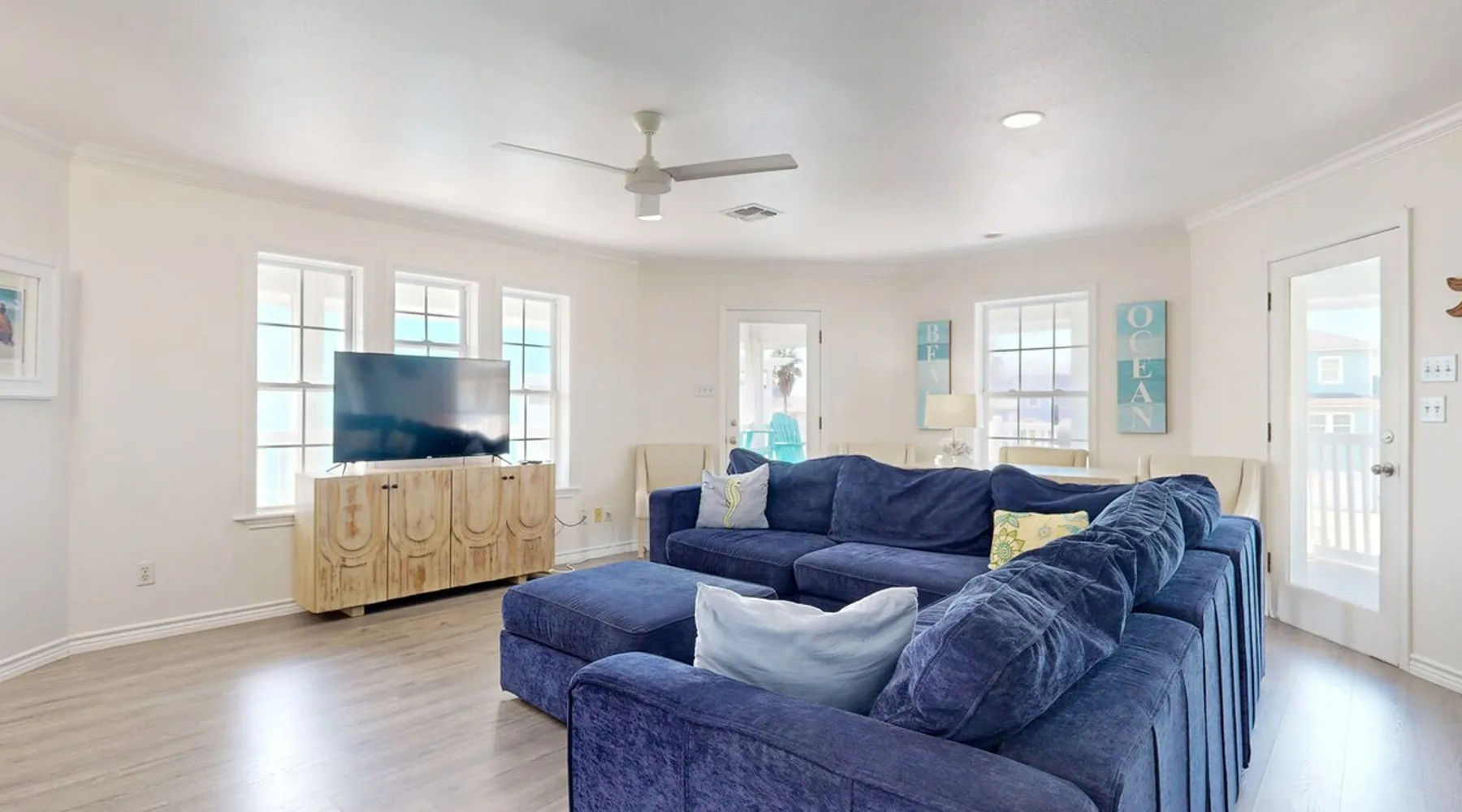 AS658: Holiday Beach House 3BD, 3BA, Shared Pool, Golf Cart Included, Pet Friendly, Parking for 5, Garage Access Welcome to the enchanting Holiday Beach House, your perfect coastal getaway located on picturesque Anchor Street, just off 11th Street. This charming beach house offers the ideal blend of comfort and convenience, situated only minutes away from shopping, dining, and the sun-kissed shores of the beach. To enhance your beach experience, a 6-passenger golf cart is included. The space AS658: Holiday Beach House 3BD, 3BA, Golf Cart Included, Shared Pool, Pet Friendly, Parking for 5, Garage Access Welcome to the enchanting Holiday Beach House, your perfect coastal getaway located on picturesque Anchor Street, just off 11th Street. This charming beach house offers the ideal blend of comfort and convenience, situated only minutes away from shopping, dining, and the sun-kissed shores of the beach. To enhance your beach experience, a 6-passenger golf cart is included with your stay, making it easy to explore the area! Spread across three inviting levels, this home features a thoughtful layout to accommodate family and friends. The first level welcomes you with a cozy bedroom and a bathroom, providing a private retreat for guests. As you ascend to the second level, you’ll find the heart of the home—a spacious open-concept living area that seamlessly connects the kitchen, dining, and living spaces. The fully stocked kitchen boasts sleek all-white appliances, including a propane stove, making meal preparation a breeze. Gather around the plush sofa in the living area, where a large TV awaits for movie nights or cheering on your favorite team. Step outside onto the decks of this level, where ample seating invites you to bask in the warm Port A sunshine and enjoy the ocean breeze. Venture to the third level, which is designed to maximize comfort with another inviting bedroom and bathroom, along with a bonus sleeping area on the landing that overlooks the living room—perfect for additional guests or children. Don’t miss your chance to experience coastal living at its finest—make your reservations today for the Holiday Beach House, featuring 3 bedrooms and 3 bathrooms, and create unforgettable memories by the sea! Things to know: WIFI Golf Cart Included (6-Seater Golf Cart Included - Subject to a $10 Fuel Charge – Short Term Stay Only) Charcoal Grill (Please provide your own charcoal) Fully Equipped Kitchen (Drip and Keurig coffee maker, please bring coffee, filters, and K-cups Washer/Dryer (No laundry soap provided) Pet Friendly ($95 Pet Fee per pet, limit two) Parking for 5 vehicles Garage Access Must be 25 years old to book one of our units. Strictly enforced, ID verified upon check-in. Life in Paradise rental agreement required upon booking $95 pet fee per pet, limit 2 pets. Fee requests will be sent separately after booking. We provide WIFI to enhance your stay and keep you connected. While Port A is typically reliable, you may experience occasional outages beyond our control. Thank you for your understanding. Construction is a constant in Port Aransas. While we strive to ensure your visit is peaceful, you may encounter sights and sounds of building projects or community improvements during your stay. We appreciate your understanding as we work towards making our community better for everyone. Bedrooms and bathrooms: First Level BR1 Bunk bed Full over Queen w/ Twin trundle, TV, Small Chest, ensuite bath w/ walk-in shower, single vanity Second Level BR2 King, TV, Closet, Door to patio, ensuite bath w/ tub/shower combo, single vanity Living Room - Queen Sleeper Sofa Third Level BD3 Queen, TV, Closet, ensuite bath w/ tub/shower combo, single vanity Landing Area - Bunk Bed Full over Queen