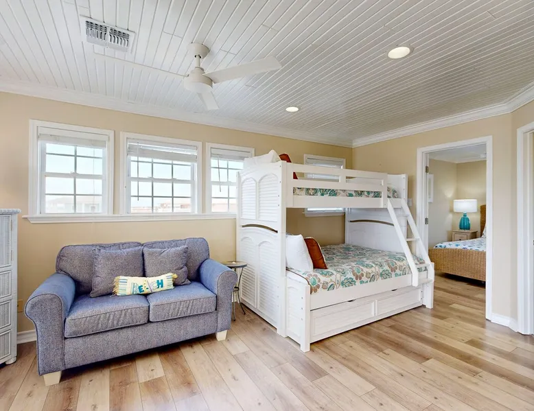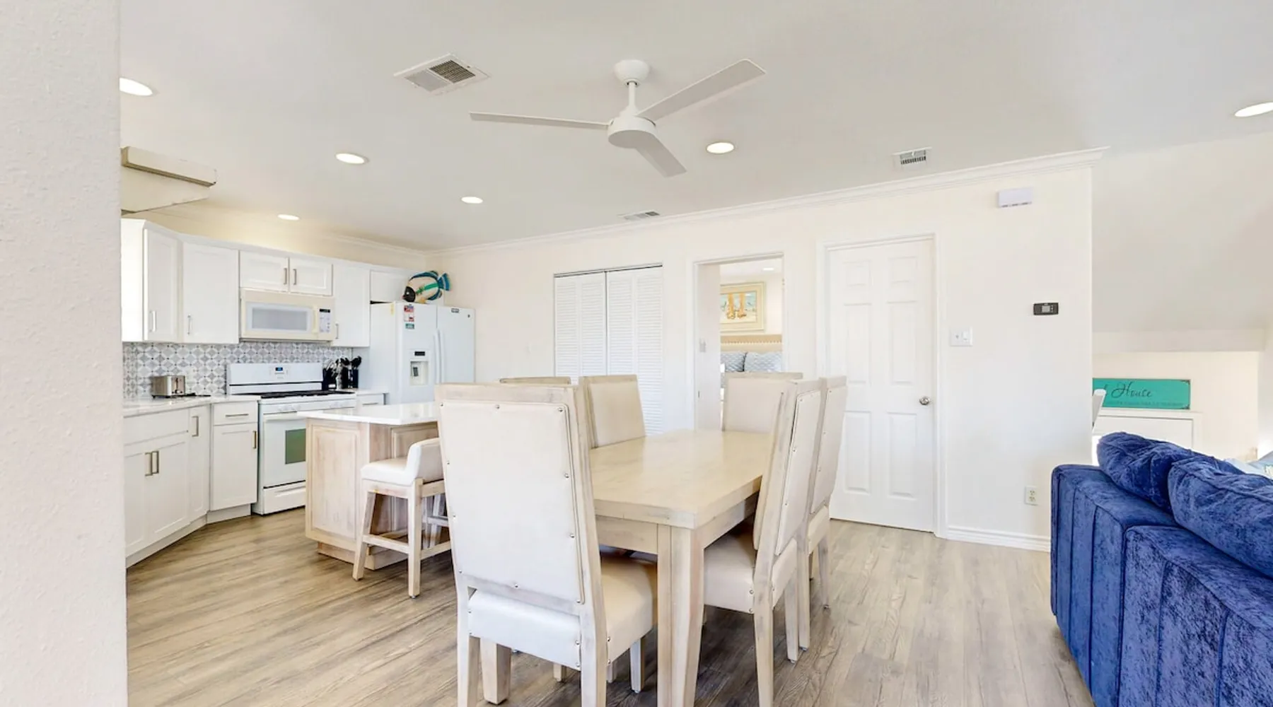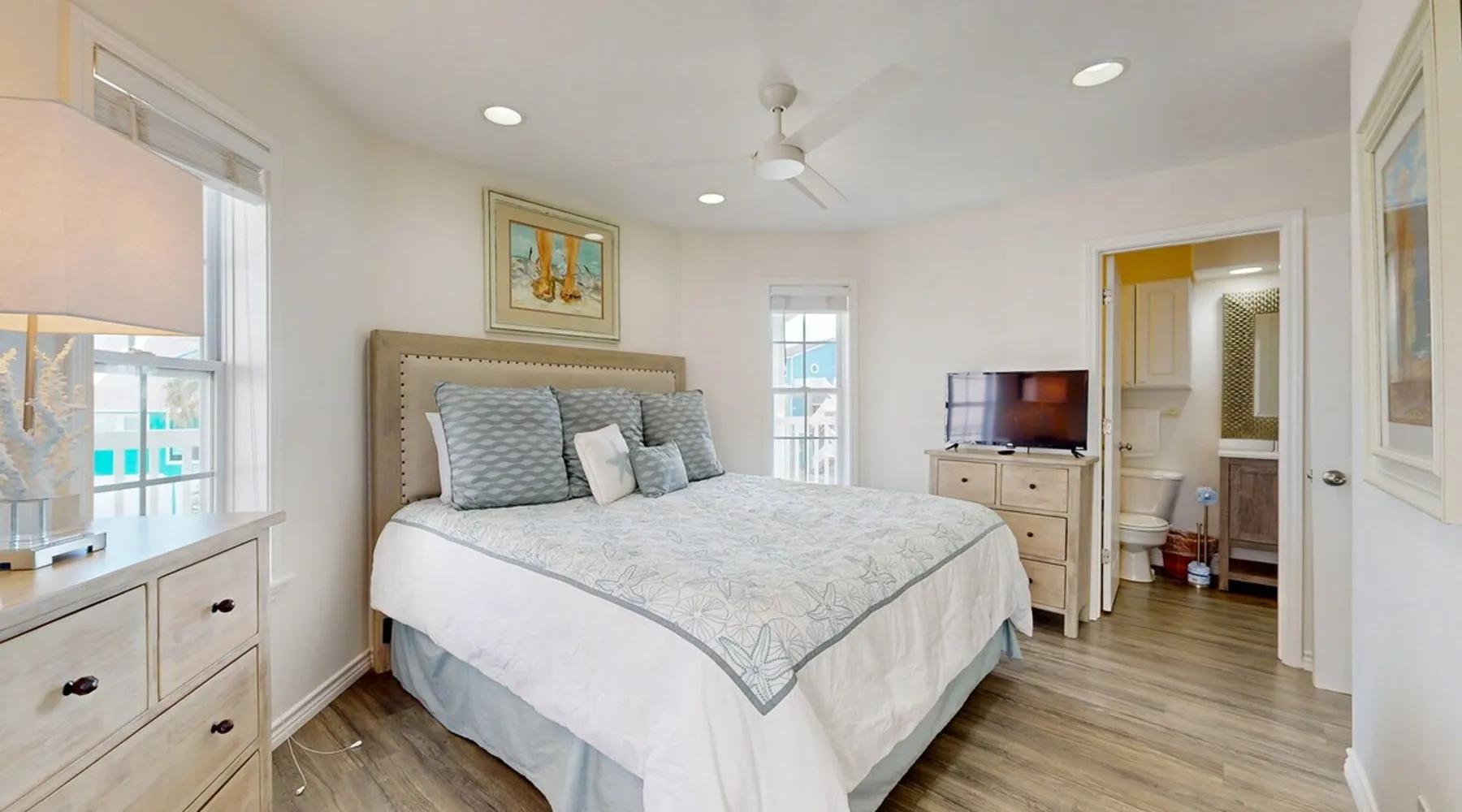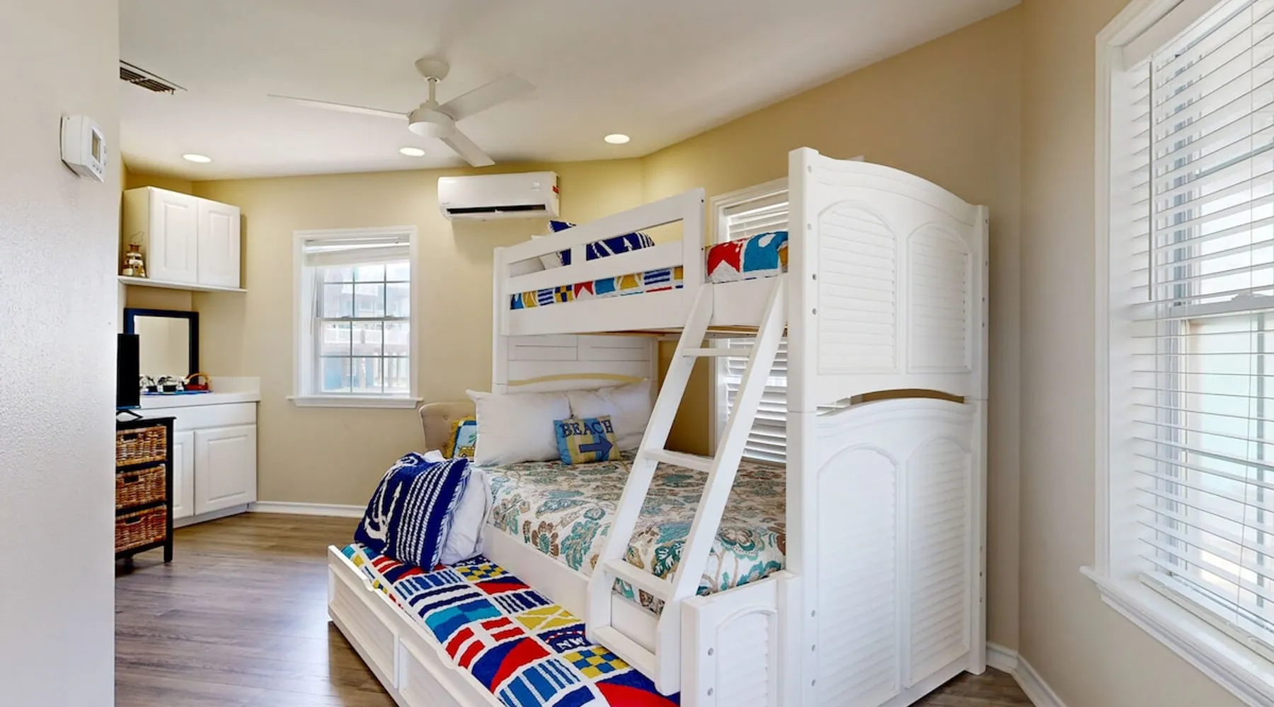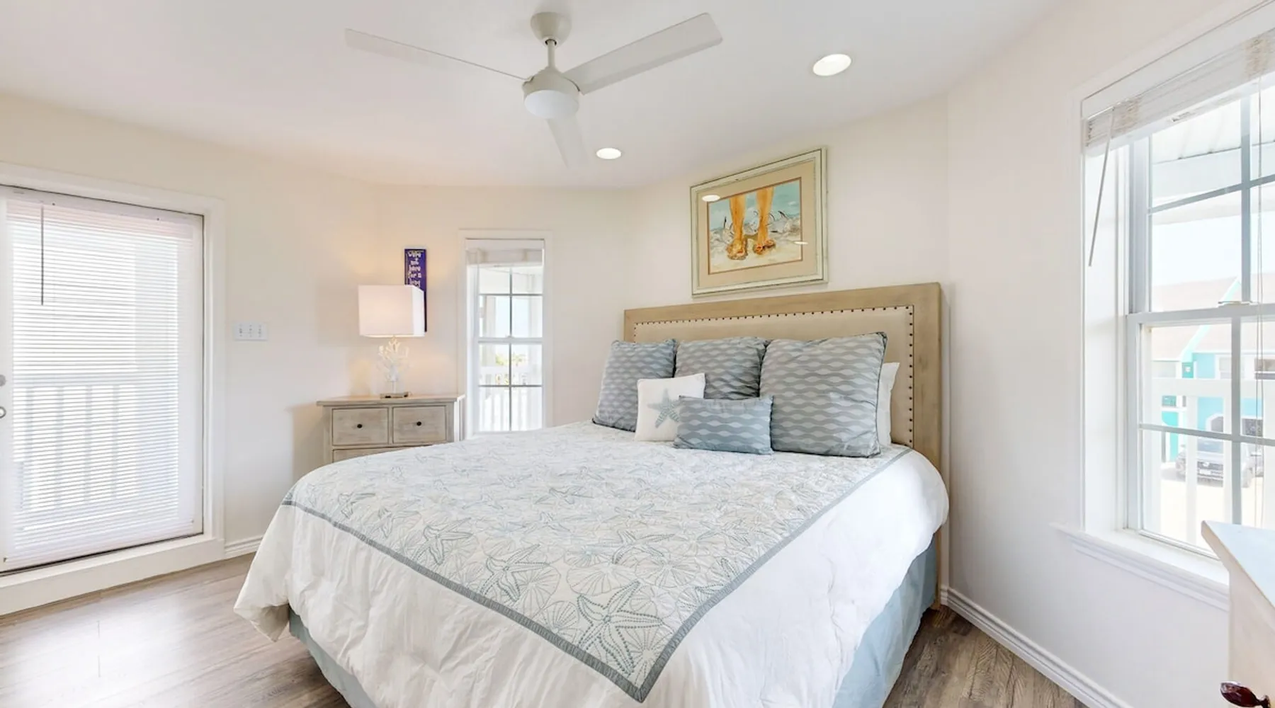 AS658: Holiday Beach House 3BD, 3BA, Shared Pool, Golf Cart Included, Pet Friendly, Parking for 5, Garage Access Welcome to the enchanting Holiday Beach House, your perfect coastal getaway located on picturesque Anchor Street, just off 11th Street. This charming beach house offers the ideal blend of comfort and convenience, situated only minutes away from shopping, dining, and the sun-kissed shores of the beach. To enhance your beach experience, a 6-passenger golf cart is included. The space AS658: Holiday Beach House 3BD, 3BA, Golf Cart Included, Shared Pool, Pet Friendly, Parking for 5, Garage Access Welcome to the enchanting Holiday Beach House, your perfect coastal getaway located on picturesque Anchor Street, just off 11th Street. This charming beach house offers the ideal blend of comfort and convenience, situated only minutes away from shopping, dining, and the sun-kissed shores of the beach. To enhance your beach experience, a 6-passenger golf cart is included with your stay, making it easy to explore the area! Spread across three inviting levels, this home features a thoughtful layout to accommodate family and friends. The first level welcomes you with a cozy bedroom and a bathroom, providing a private retreat for guests. As you ascend to the second level, you’ll find the heart of the home—a spacious open-concept living area that seamlessly connects the kitchen, dining, and living spaces. The fully stocked kitchen boasts sleek all-white appliances, including a propane stove, making meal preparation a breeze. Gather around the plush sofa in the living area, where a large TV awaits for movie nights or cheering on your favorite team. Step outside onto the decks of this level, where ample seating invites you to bask in the warm Port A sunshine and enjoy the ocean breeze. Venture to the third level, which is designed to maximize comfort with another inviting bedroom and bathroom, along with a bonus sleeping area on the landing that overlooks the living room—perfect for additional guests or children. Don’t miss your chance to experience coastal living at its finest—make your reservations today for the Holiday Beach House, featuring 3 bedrooms and 3 bathrooms, and create unforgettable memories by the sea! Things to know: WIFI Golf Cart Included (6-Seater Golf Cart Included - Subject to a $10 Fuel Charge – Short Term Stay Only) Charcoal Grill (Please provide your own charcoal) Fully Equipped Kitchen (Drip and Keurig coffee maker, please bring coffee, filters, and K-cups Washer/Dryer (No laundry soap provided) Pet Friendly ($95 Pet Fee per pet, limit two) Parking for 5 vehicles Garage Access Must be 25 years old to book one of our units. Strictly enforced, ID verified upon check-in. Life in Paradise rental agreement required upon booking $95 pet fee per pet, limit 2 pets. Fee requests will be sent separately after booking. We provide WIFI to enhance your stay and keep you connected. While Port A is typically reliable, you may experience occasional outages beyond our control. Thank you for your understanding. Construction is a constant in Port Aransas. While we strive to ensure your visit is peaceful, you may encounter sights and sounds of building projects or community improvements during your stay. We appreciate your understanding as we work towards making our community better for everyone. Bedrooms and bathrooms: First Level BR1 Bunk bed Full over Queen w/ Twin trundle, TV, Small Chest, ensuite bath w/ walk-in shower, single vanity Second Level BR2 King, TV, Closet, Door to patio, ensuite bath w/ tub/shower combo, single vanity Living Room - Queen Sleeper Sofa Third Level BD3 Queen, TV, Closet, ensuite bath w/ tub/shower combo, single vanity Landing Area - Bunk Bed Full over Queen