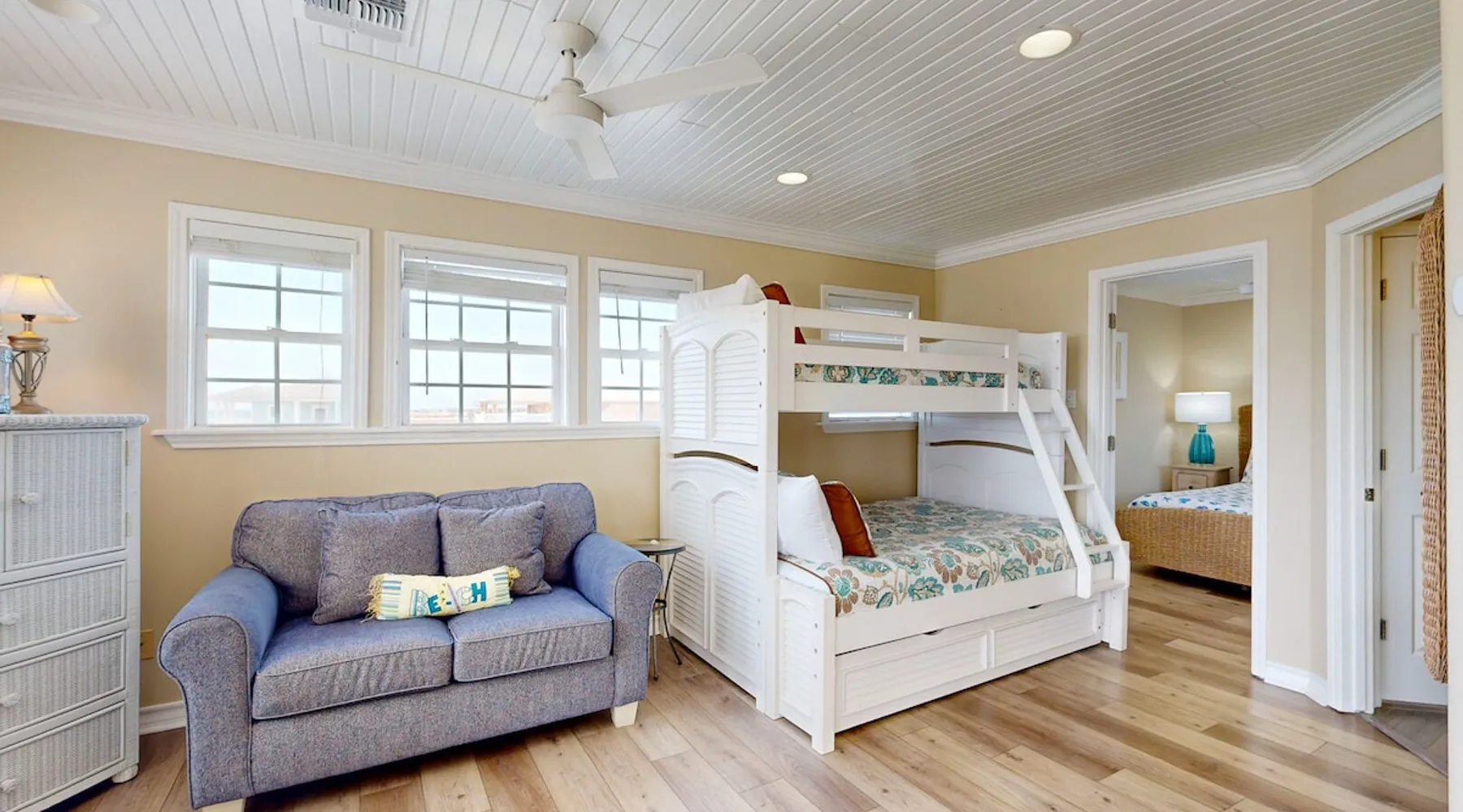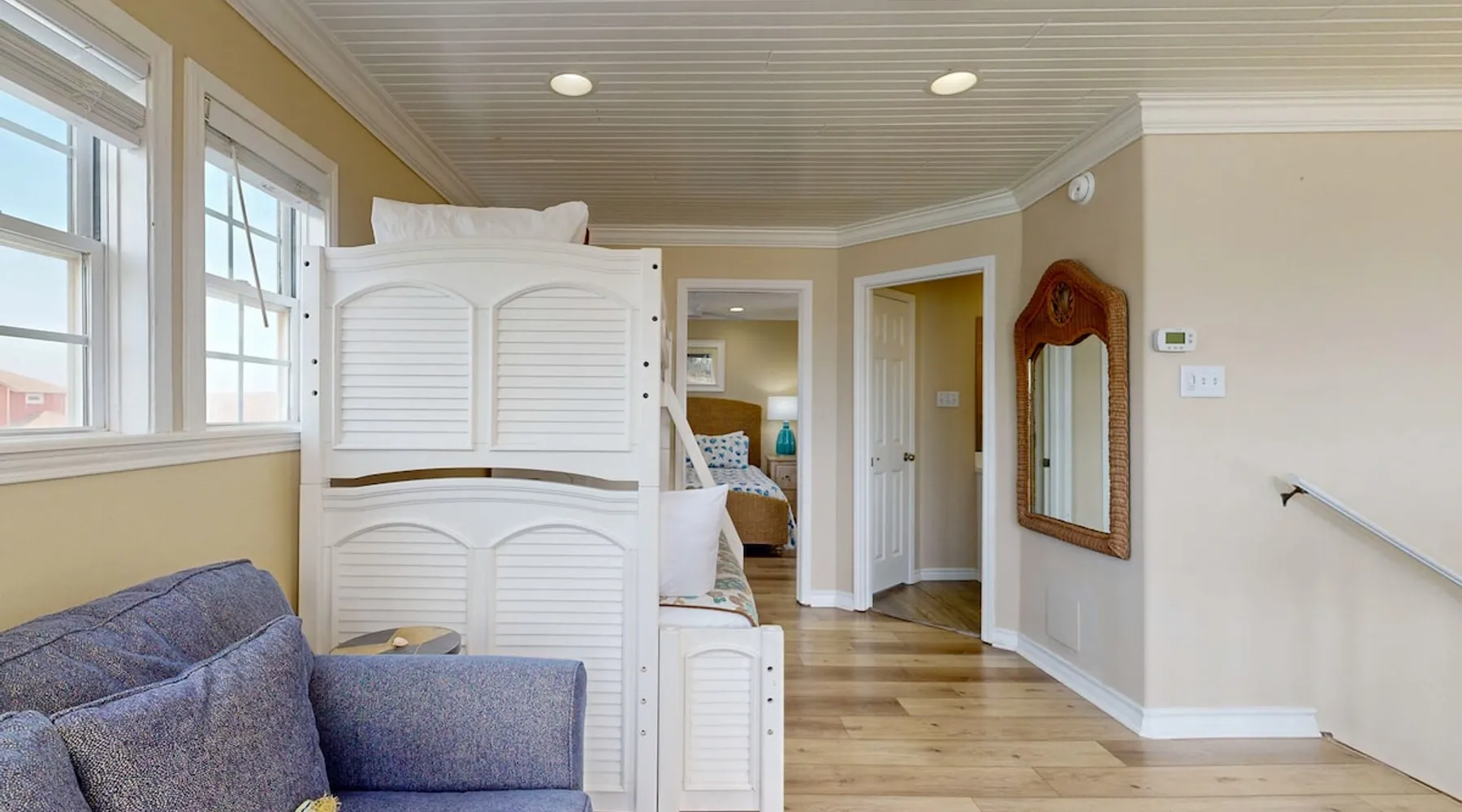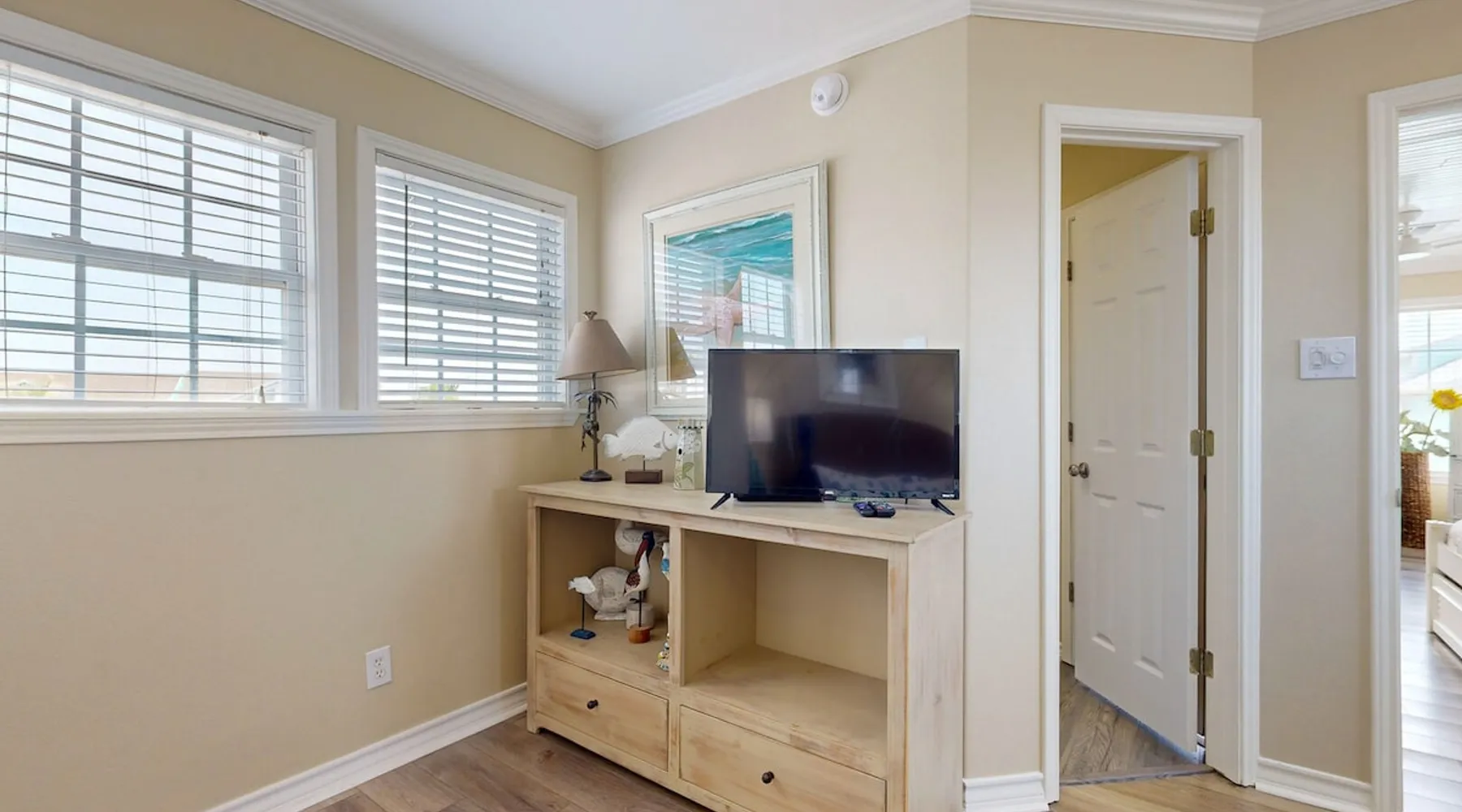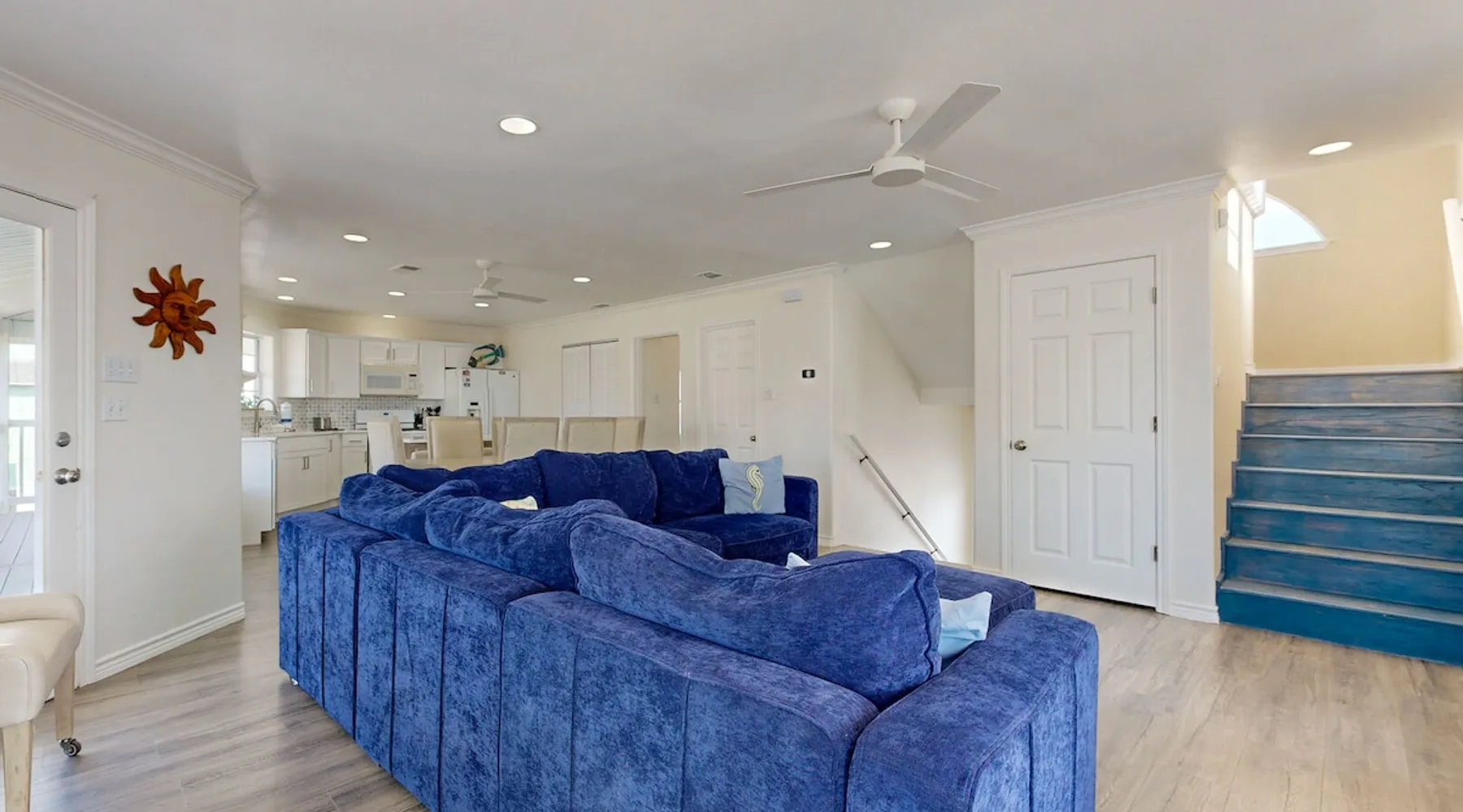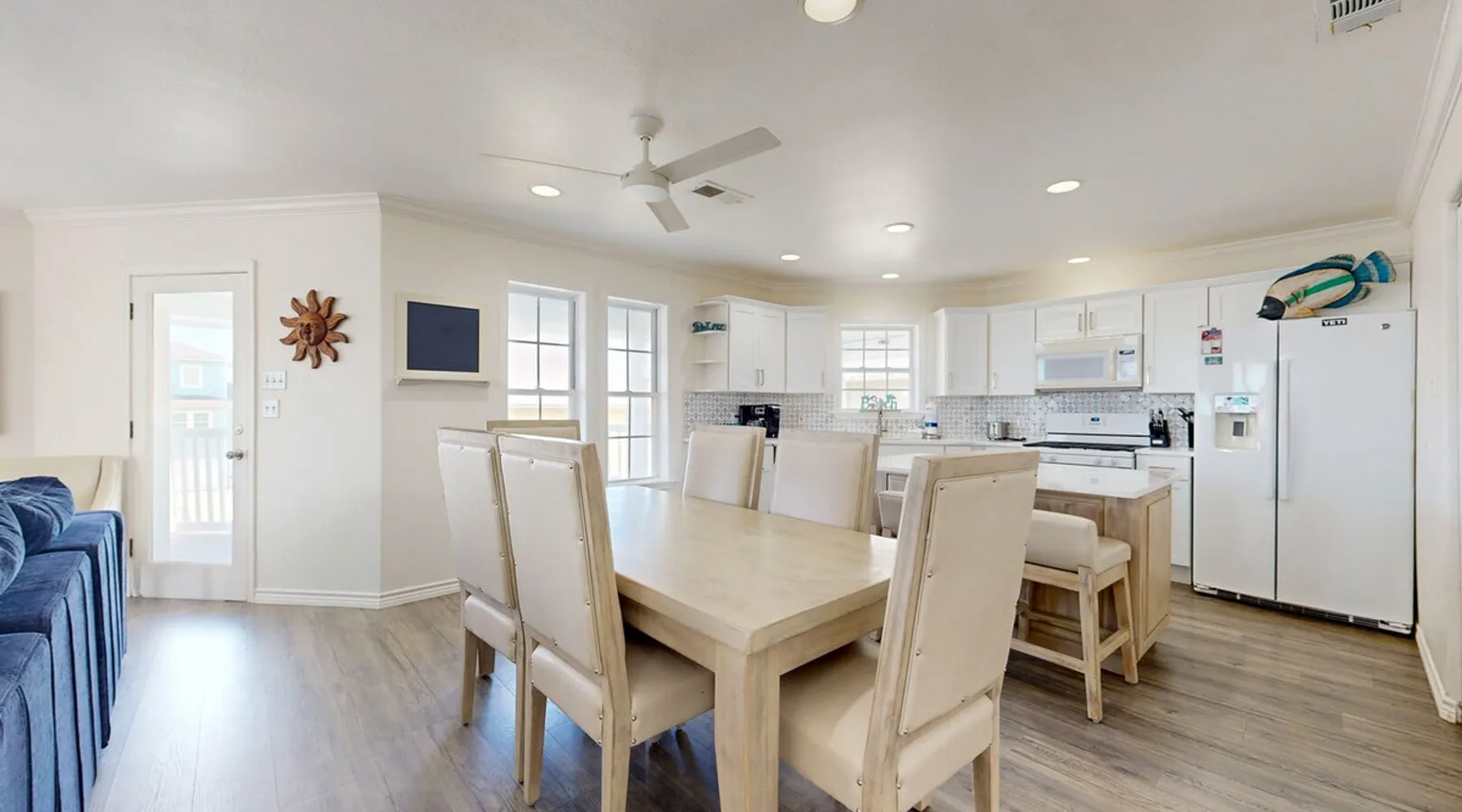 AS658: Holiday Beach House 3BD, 3BA, Shared Pool, Golf Cart Included, Pet Friendly, Parking for 5, Garage Access Welcome to the enchanting Holiday Beach House, your perfect coastal getaway located on picturesque Anchor Street, just off 11th Street. This charming beach house offers the ideal blend of comfort and convenience, situated only minutes away from shopping, dining, and the sun-kissed shores of the beach. To enhance your beach experience, a 6-passenger golf cart is included. The space AS658: Holiday Beach House 3BD, 3BA, Golf Cart Included, Shared Pool, Pet Friendly, Parking for 5, Garage Access Welcome to the enchanting Holiday Beach House, your perfect coastal getaway located on picturesque Anchor Street, just off 11th Street. This charming beach house offers the ideal blend of comfort and convenience, situated only minutes away from shopping, dining, and the sun-kissed shores of the beach. To enhance your beach experience, a 6-passenger golf cart is included with your stay, making it easy to explore the area! Spread across three inviting levels, this home features a thoughtful layout to accommodate family and friends. The first level welcomes you with a cozy bedroom and a bathroom, providing a private retreat for guests. As you ascend to the second level, you’ll find the heart of the home—a spacious open-concept living area that seamlessly connects the kitchen, dining, and living spaces. The fully stocked kitchen boasts sleek all-white appliances, including a propane stove, making meal preparation a breeze. Gather around the plush sofa in the living area, where a large TV awaits for movie nights or cheering on your favorite team. Step outside onto the decks of this level, where ample seating invites you to bask in the warm Port A sunshine and enjoy the ocean breeze. Venture to the third level, which is designed to maximize comfort with another inviting bedroom and bathroom, along with a bonus sleeping area on the landing that overlooks the living room—perfect for additional guests or children. Don’t miss your chance to experience coastal living at its finest—make your reservations today for the Holiday Beach House, featuring 3 bedrooms and 3 bathrooms, and create unforgettable memories by the sea! Things to know: WIFI Golf Cart Included (6-Seater Golf Cart Included - Subject to a $10 Fuel Charge – Short Term Stay Only) Charcoal Grill (Please provide your own charcoal) Fully Equipped Kitchen (Drip and Keurig coffee maker, please bring coffee, filters, and K-cups Washer/Dryer (No laundry soap provided) Pet Friendly ($95 Pet Fee per pet, limit two) Parking for 5 vehicles Garage Access Must be 25 years old to book one of our units. Strictly enforced, ID verified upon check-in. Life in Paradise rental agreement required upon booking $95 pet fee per pet, limit 2 pets. Fee requests will be sent separately after booking. We provide WIFI to enhance your stay and keep you connected. While Port A is typically reliable, you may experience occasional outages beyond our control. Thank you for your understanding. Construction is a constant in Port Aransas. While we strive to ensure your visit is peaceful, you may encounter sights and sounds of building projects or community improvements during your stay. We appreciate your understanding as we work towards making our community better for everyone. Bedrooms and bathrooms: First Level BR1 Bunk bed Full over Queen w/ Twin trundle, TV, Small Chest, ensuite bath w/ walk-in shower, single vanity Second Level BR2 King, TV, Closet, Door to patio, ensuite bath w/ tub/shower combo, single vanity Living Room - Queen Sleeper Sofa Third Level BD3 Queen, TV, Closet, ensuite bath w/ tub/shower combo, single vanity Landing Area - Bunk Bed Full over Queen