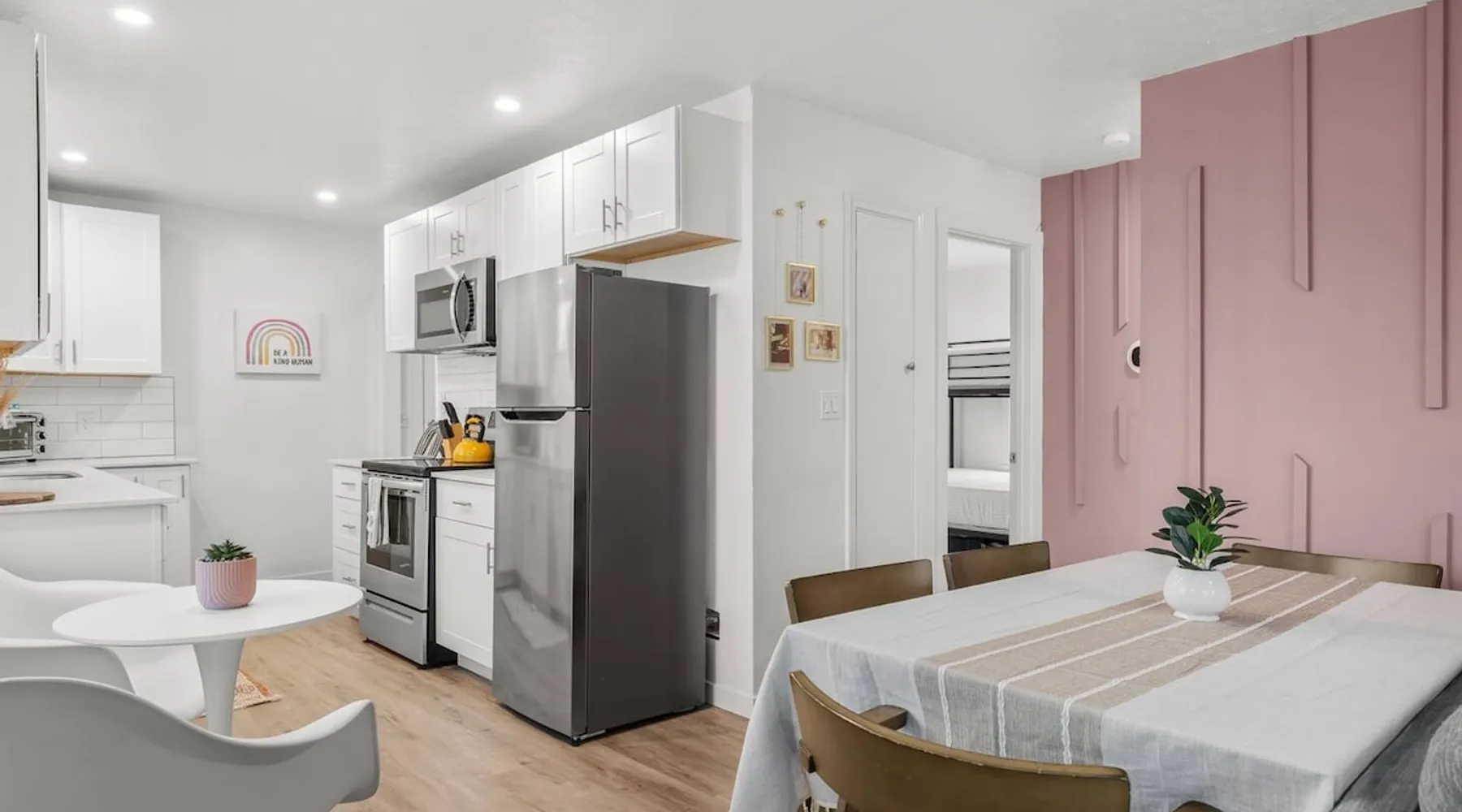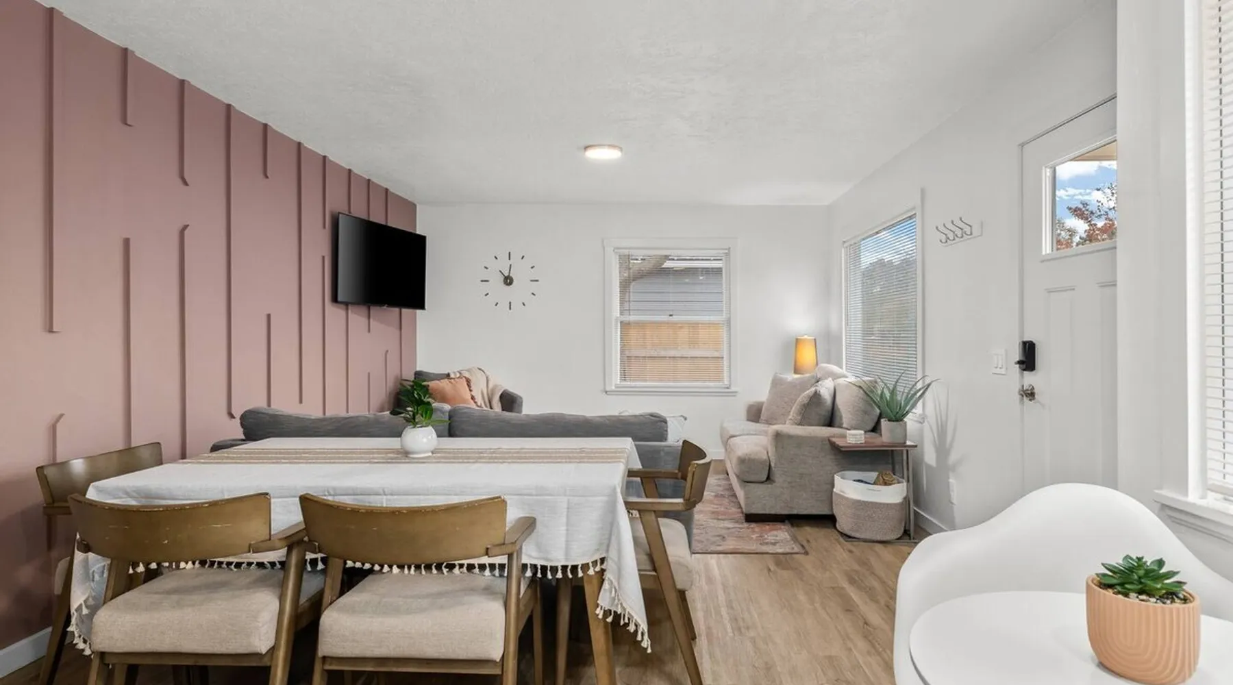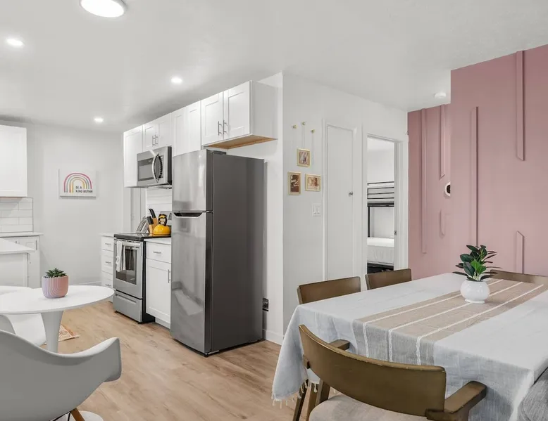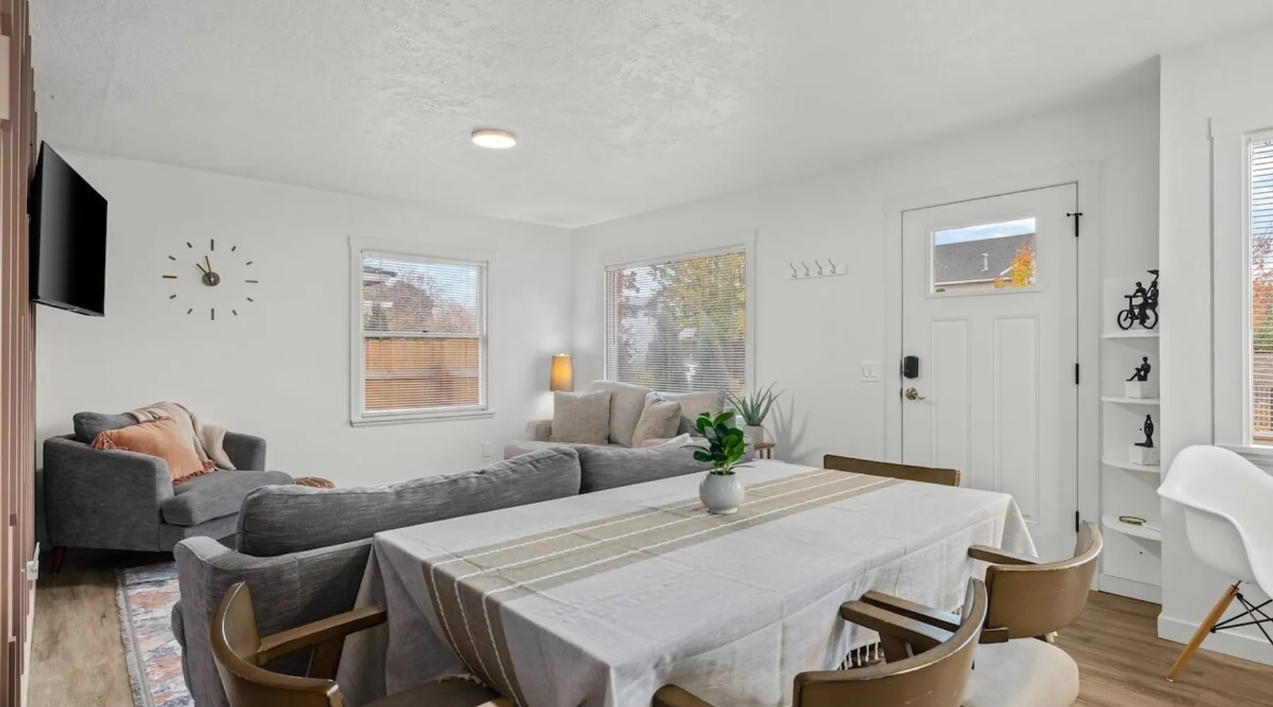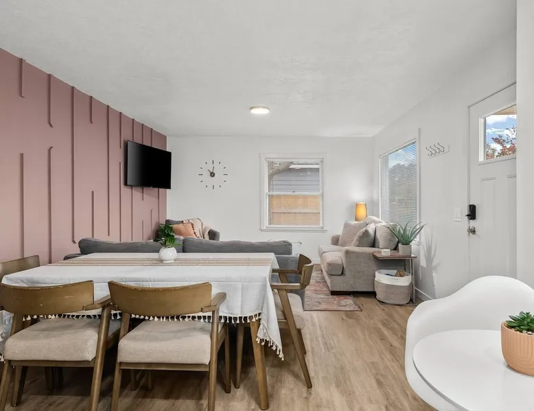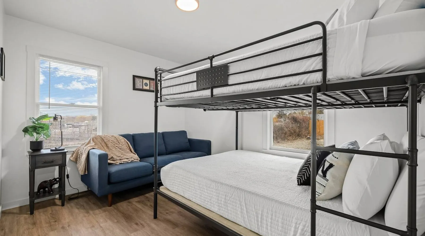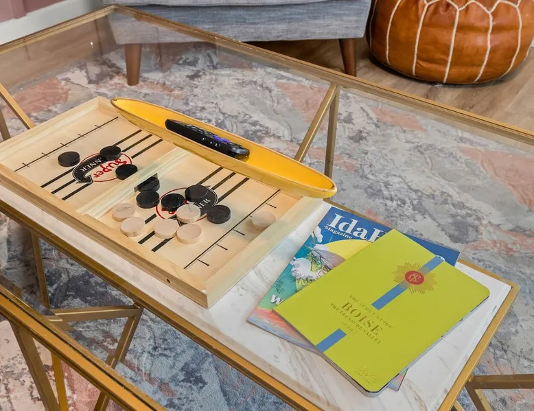 Welcome to your walkable abode! This spacious two-bedroom Airbnb comfortably sleeps up to 6 guests and offers the ideal blend of relaxation and adventure. Nestled within walking distance of Quinn's Pond and the excitement of the Whitewater Park, you'll find plenty of outdoor activities just steps from your door. Whether you're here for the sights, sips, or strolls, this stay has everything you need for a memorable getaway! The space With you in mind, we have packed this house with the essentials for a long and comfortable stay. You will have full access to the home's thermostat for heating and air conditioning to dial in your comfort level. The home is a single level and has two bedrooms. One of the bedrooms has a king sized bed and large smart TV. The second bedroom has a queen over queen bunk bed as well as a comfortable couch for relaxing in. The kitchen has been filled with the amenities allowing for home cooked meals and baking. You will find pots, pans, utensils, cutting boards, baking pans, bowls, cooking spoons and ladles, blender, microwave, coffee maker, spices, first aid kit, cleaning supplies and so much more. The bathroom is situated between the bedrooms has a shower/tub combo. It is fully stocked with toilet paper, shampoo, conditioner, body wash, hair dryers, and make-up towels. The living area has a large smart TV, two couches for seating, and a comfortable chair. Toys and board games are essential in our family and so some have been provided for use at this lovely home as well. The open concept layout makes visiting with family easy! The dining room is equipped with four chairs and there is also a small sitting table with two extra chairs. Whether you are watching TV or making a meal, the whole home is together. In the backyard, you will find a fire pit and several chairs. There is a vintage truck for any photography needs, and horseshoes for fun! There is one parking spot behind the home in the alley, but you are more than welcome to park on the street in front of the home. Guest access The whole home is yours! Other things to note We have a strict quiet hour policy of 10pm to 8am Friday through Sunday and 9pm to 8am Monday through Thursday. Please note that for stays exceeding 29 nights, Idaho law requires that we must obtain a lease from you before hosting your stay. Our company policy also dictates that stays exceeding 29 nights require an extra cleaning every 29 days. This will be billed at the cost of an additional cleaning fee. These extra cleanings help keep our home an enjoyable place for all renters and really help our cleaning crews at the time of checkout. Please keep these policies in mind if booking a long term stay. Any unauthorized pet will be charged $100. A late checkout fee of $30 will be charged after 15 minutes late. An additional $30 will be charged every 30 minute increment after that. There is no cable TV, but there are many apps that can be logged into.